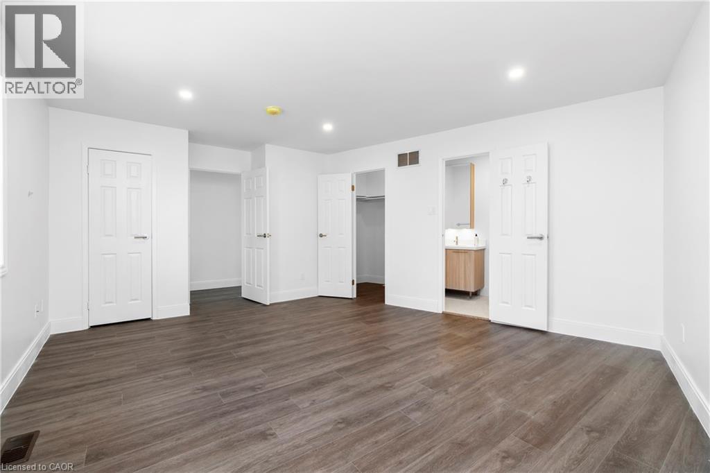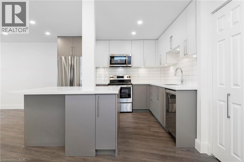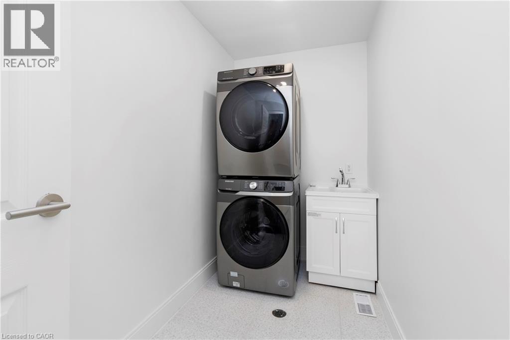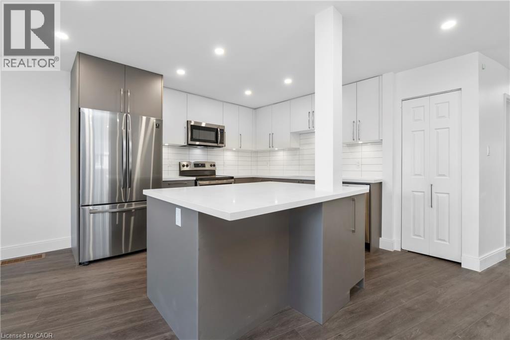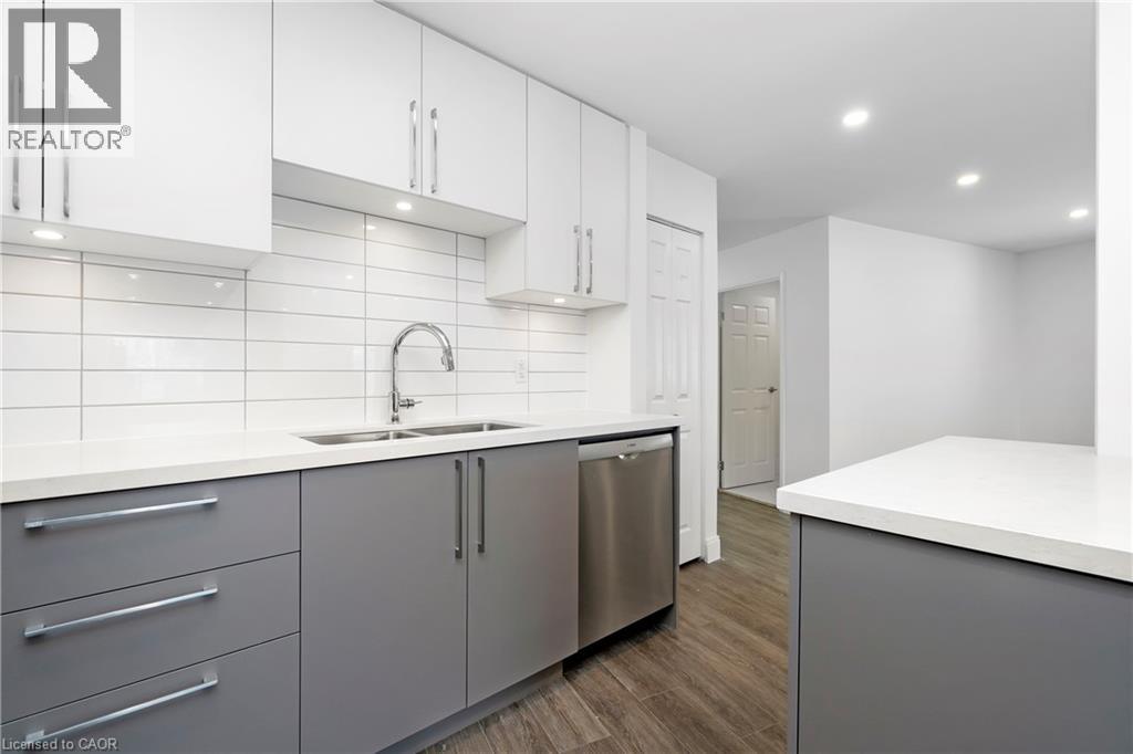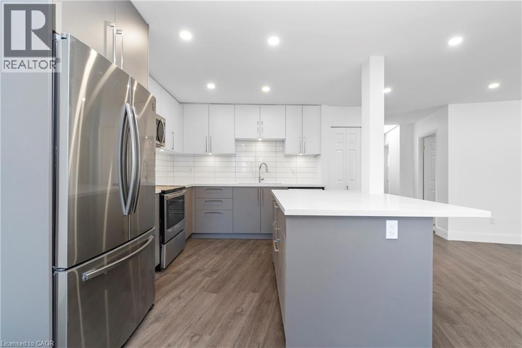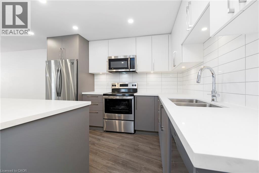 Renovated from top to bottom - this unit boasts 2 large bedrooms and 2 bathrooms, including a primary 3pc en-suite. The open concept kitchen/dining area is filled with natural light and has been updated with brand new modern fixtures, quartz counters and stainless steel appliances. This unit also includes a large laundry room with new washer/dryer and sink. Situated at the end of a court in a quiet neighbourhood in North Burlington, this unit is close to all amenities, schools, parks and has backyard access to the local bike path. Space for 2 small cars or 1 larger car. Landlord will take care of lawn maintenance. Internet Included. Available as of March 1st. (id:64974)