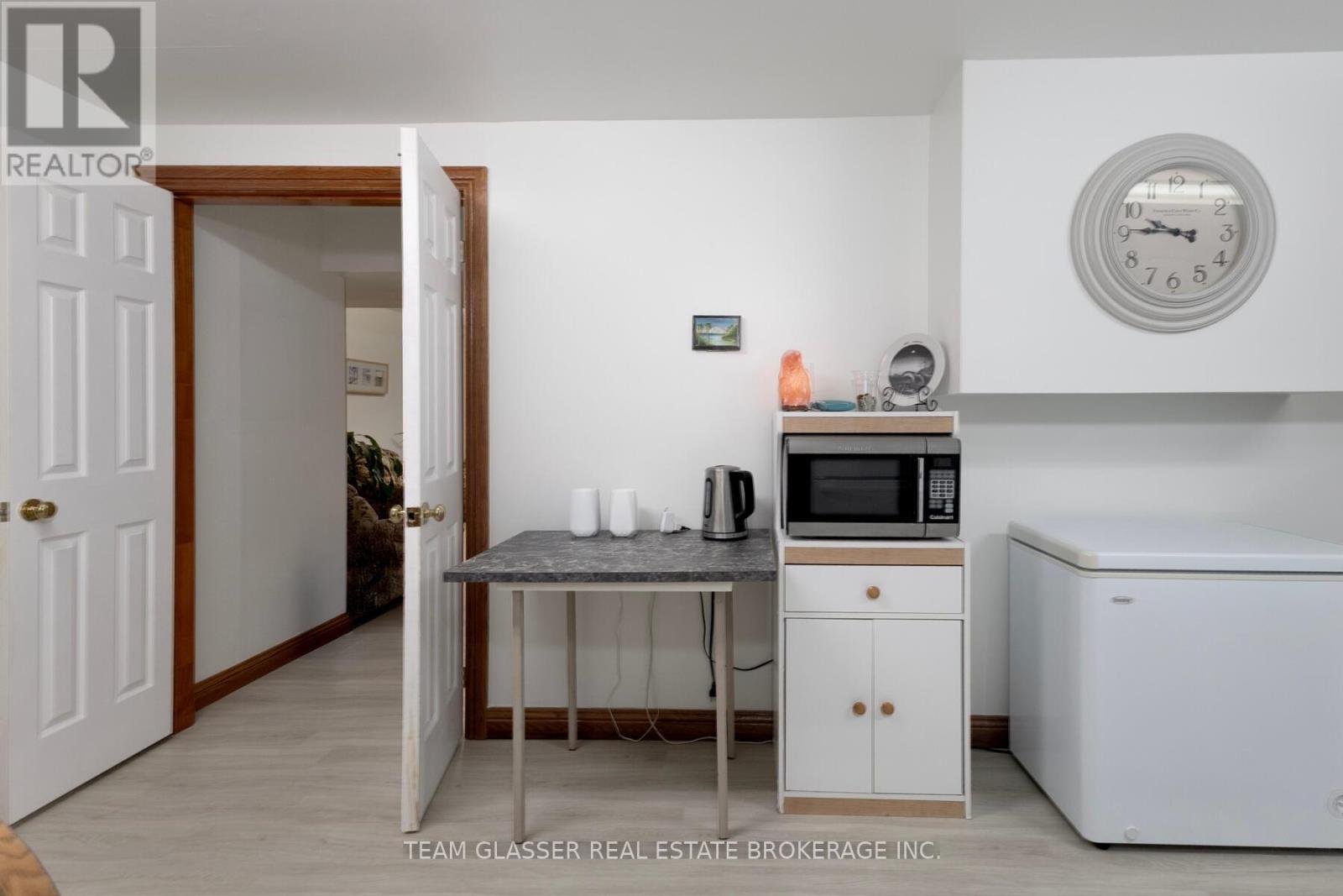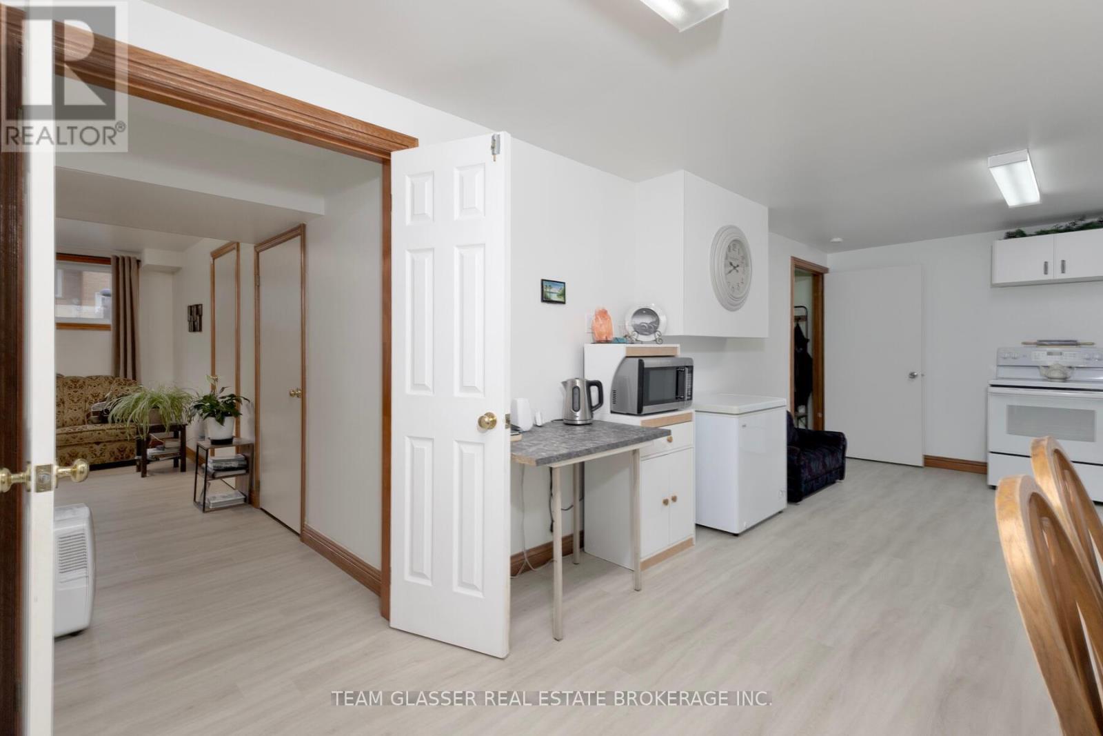 Welcome home! This spotless brick raised ranch condo is truly move-in ready. As the last unit on a quiet dead-end street at the edge of town, it offers both privacy and convenience. The property features a single-car garage with direct access to both the upper and lower levels.The main floor will impress you with its gleaming hardwood floors, a spacious kitchen with ample cupboard space, two bedrooms, and main floor laundry. You can also step out onto a covered, private rear deck that is perfect for family barbecues.The lower level is thoughtfully set up as a granny flat with large windows that provide plenty of natural light. It includes two additional bedrooms, a full kitchen (oven currently not hooked up), and a spare room suitable for an office or playroom. You will be surprised by the sheer amount of space available.Additional highlights include a new steel roof installed in 2025 and maintenance fees that cover lawn care and snow removal.Don't miss this opportunity-come out and have a look! (id:64974)