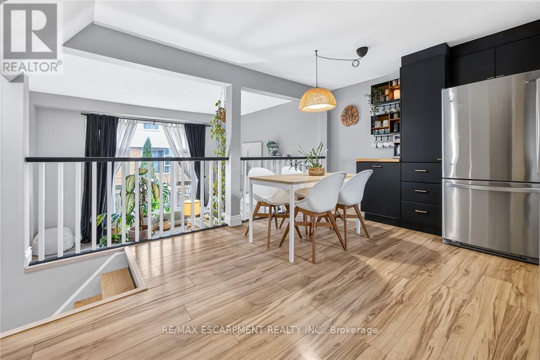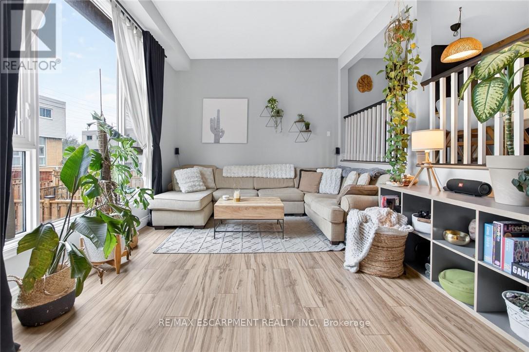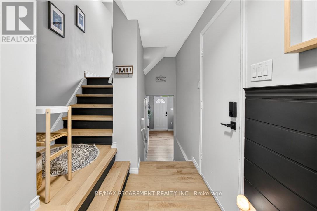 Exceptional value in the Valley! Tucked against the escarpment and just minutes from the vibrant core of Dundas, this spacious fully updated 1,500 sq. ft. townhome offers the perfect balance of natural beauty and everyday convenience. Surrounded by scenic views, you'll love being so close to local shops, dining, and amenities. Bright and airy throughout, the home features large windows that flood the space with natural light, along with soaring ceilings in the open-concept living and dining area that create a stylish, loft-like feel. The interior showcases neutral finishes for a clean, modern look, complemented by a newly updated kitchen and refreshed bathrooms. Main level laundry and inside access to the garage add to the home's practical appeal. The fully finished lower level provides excellent additional living space, complete with a walk-out to the backyard and a convenient powder room. Enjoy exclusive access to a private in-ground pool within the complex for the warm summer days, while the surrounding landscape transforms beautifully in the fall. Set in a family-friendly neighbourhood close to schools, parks, and offering easy access to highways, transit, and major routes. Minutes to McMaster University, Cootes Paradise, and Dundas Driving Park. A fantastic opportunity to own a move-in ready home in a highly sought-after Dundas location. (id:64974)