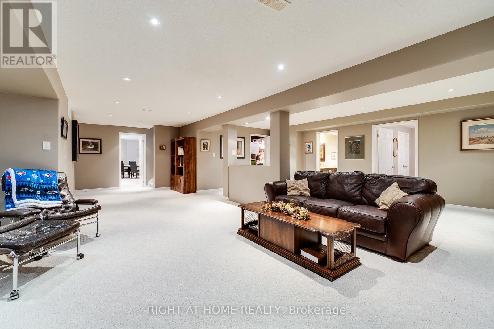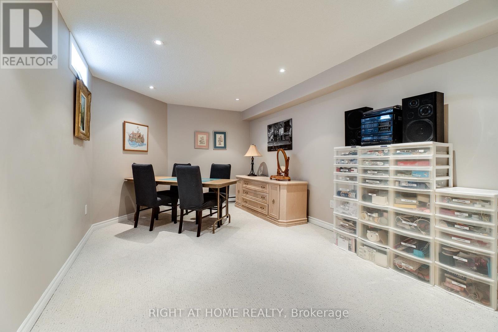 Stunning and exceptionally well laid out end-unit bungaloft in highly sought-after Millcroft community with nearly 3500 sq ft of total living space! Tucked away at the back of a quiet, mature and exclusive community sits this 2200+ sq ft home with 3 + 2 beds and 4 baths which has been meticulously maintained by the original owners. This thoughtfully laid out home features an open concept living and dining area with soaring vaulted ceilings, a cozy gas fireplace, hardwood floors and floor to ceiling windows which flood the home with natural light. The main floor primary suite offers a spacious walk-in closet and a well-appointed ensuite bathroom, while main-level laundry and direct access to the double garage add everyday convenience. The main floor includes a second bedroom (which can function well as a study/office) with access to a full 4-piece bath. The second-floor family room loft provides a versatile space which can be used as a cozy TV area, home office or separate guest area, complete with a large third bedroom with walk-in closet and full ensuite bath. The lower level provides expanded living space with a welcoming rec room with cozy gas fireplace ideal for movie nights, watching sports, entertaining or games. Basement has a walk-in cold cellar/wine cellar (rare original builder upgrade). The lower level also features two additional bedrooms (with plenty of storage and one with a cedar lined closet) which can function as a hobby room, office/study or gym and includes another full bathroom. The large utility room also includes a large workshop. This rarely offered end-unit offers privacy, functionality and flexibility/opportunity for customization in the heart of prestigious Millcroft. (id:64974)