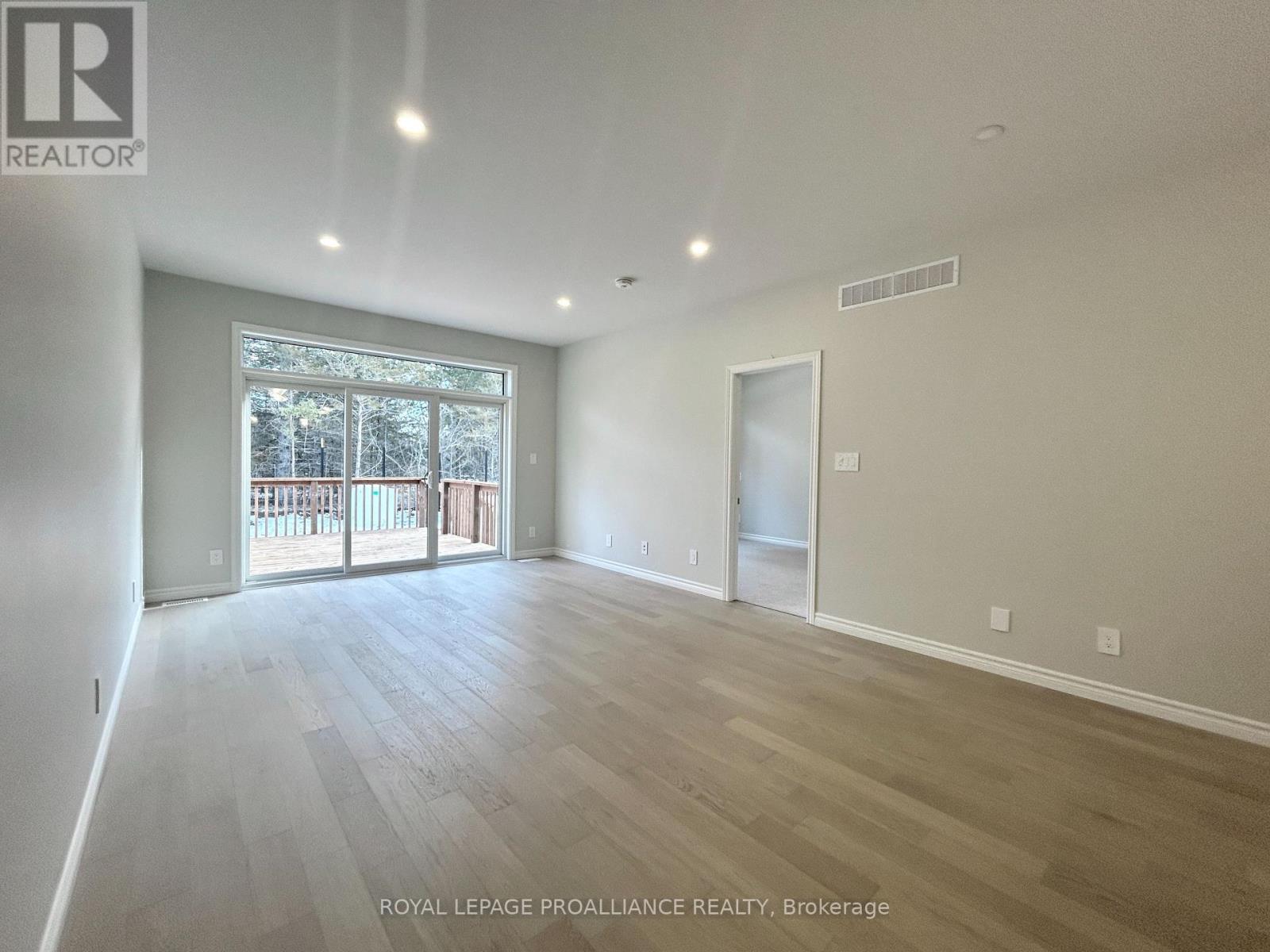 Welcome to Northgate Condominiums, a cozy community of townhome condominium units conveniently located just North of the 401 in Belleville, minutes from the Quinte Mall. This beautiful brand new bungalow townhome is now available. Featuring two bedrooms, two bathrooms and an attached one car garage with inside entry. The main floor is completed with 9ft ceilings and includes a well appointed kitchen with quartz countertops and corner pantry. The great room, located just off the kitchen, looks out to the 12' x 12' pressure treated wood deck. The bright primary bedroom includes a walk in closet as well as a 3-piece en-suite bathroom. The main floor is completed with an additional bedroom, main bathroom and a convenient laundry room. This home also includes a full unspoiled basement with basement bathroom rough in. (id:64974)