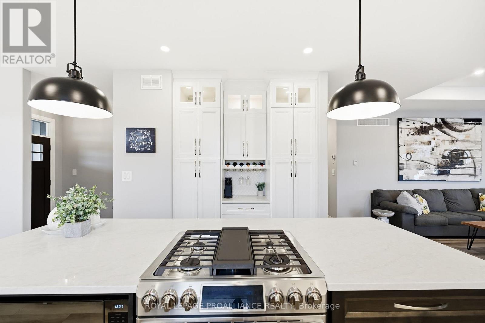 Here it is, the one you have been waiting for! Over 1900 sq. ft PLUS a fully finished lower level on a premium fenced lot next to a pond with no neighbours behind. Five bedrooms, three full bathrooms, 9 foot ceilings on the main floor AND lower level, stunning kitchen with cabinets to the ceiling/crown moulding, under cabinet lighting, soft close doors and drawers, quartz countertops, accent island, upper cabinet lights, coffee station, and gas range. Primary bedroom offers walk-in closet with built-in organizer, private spa-like ensuite with glass & tile shower, soaker tub plus double vanity and quartz counter top. Other popular features include spacious mud room off garage with kitchen quality cabinets & lots of storage, insulated walls between bedrooms, three feature walls, tray ceiling in living room, hardwood stairs and carpet-free through out. Lower level features monstrous rec room with stacked stone natural gas fireplace, wet bar and enough room for two pool tables, 2 inch of sm insulation under the concrete slab to keep floors warm and dry. Also offers 2 additional bedrooms, another full bath, and a gorgeous fully finished laundry room (with cabinets and a sink). Exterior boasts huge west facing covered deck, oversized sliding doors with built-in blinds, fully fenced extra deep rear yard with no neighbours behind or to one side, in-ground sprinkler system, attached double car garage insulated/drywalled & has an epoxy floor with extra depth on one side, covered front porch, interlocking walkway and loads of paved parking. Perfectly situated in Orchard Lane subdivision- no townhouses, no semis & no apt blgs. 5 mins to 401, 10 mins to CFB Trenton, marina, Prince Edward County & YMCA. Best value bar none! Stop reading and make an appt to view! Check out full video walk through. (id:64974)