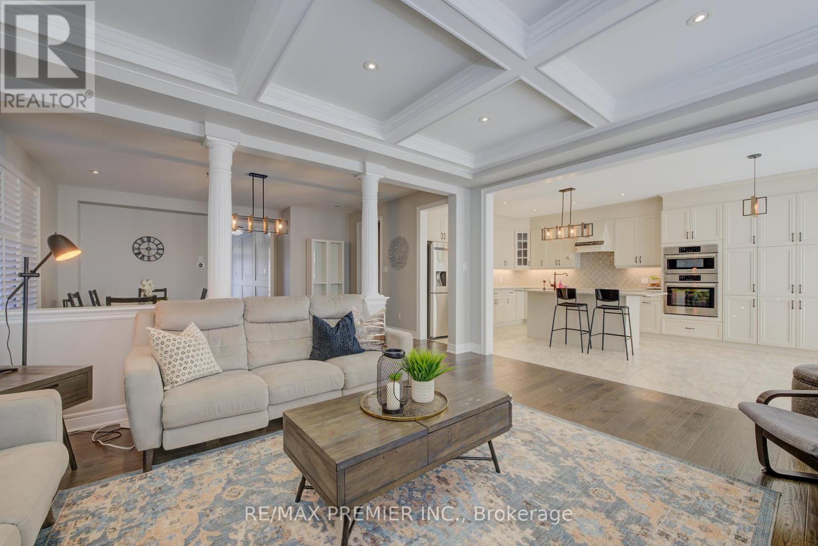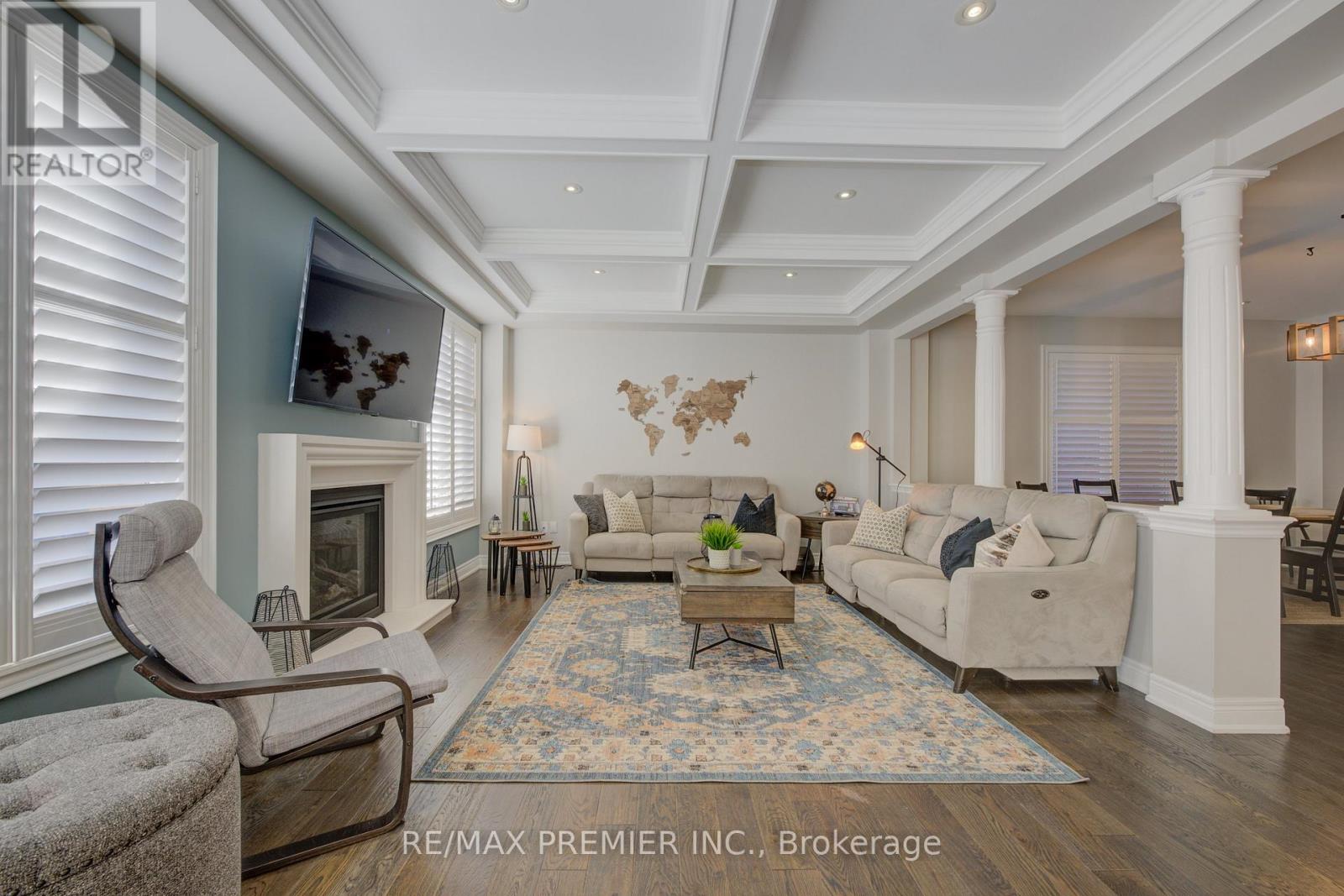 This property is a must-see, offering contemporary style, comfort, and high-end finishes. Boasting 3,996 sq ft of meticulously designed living space, this home is perfect for family living. Inside, discover a carpet-free sanctuary, solid oak staircases, and California shutters for privacy. The main floor offers an open concept layout with custom wainscoting, high ceilings, and a gas fireplace. The family room includes a gas fireplace and an elegant, coffered ceiling. The dream kitchen features Quartz countertops, premium stainless steel appliances, upgraded maple cabinets, and a full-length pantry wall. Upstairs, find four bedrooms, three bathrooms, and a balcony, including a grand master suite with walk-in closets and a spa-like ensuite. The lower level is ideal as an in-law suite with laminate flooring, a wet bar, and a full bathroom. Finished basement with approved permit for separate entrance. Outside, enjoy stamped concrete, landscaped yards, and a low-maintenance backyard with a hot tub. Fully fenced backyard with a barbeque gas line. Custom-built gates, soffit lighting, and a wrought iron glass French front door enhance curb appeal. Make 15 Babcock Street your retreat today! (id:64974)
