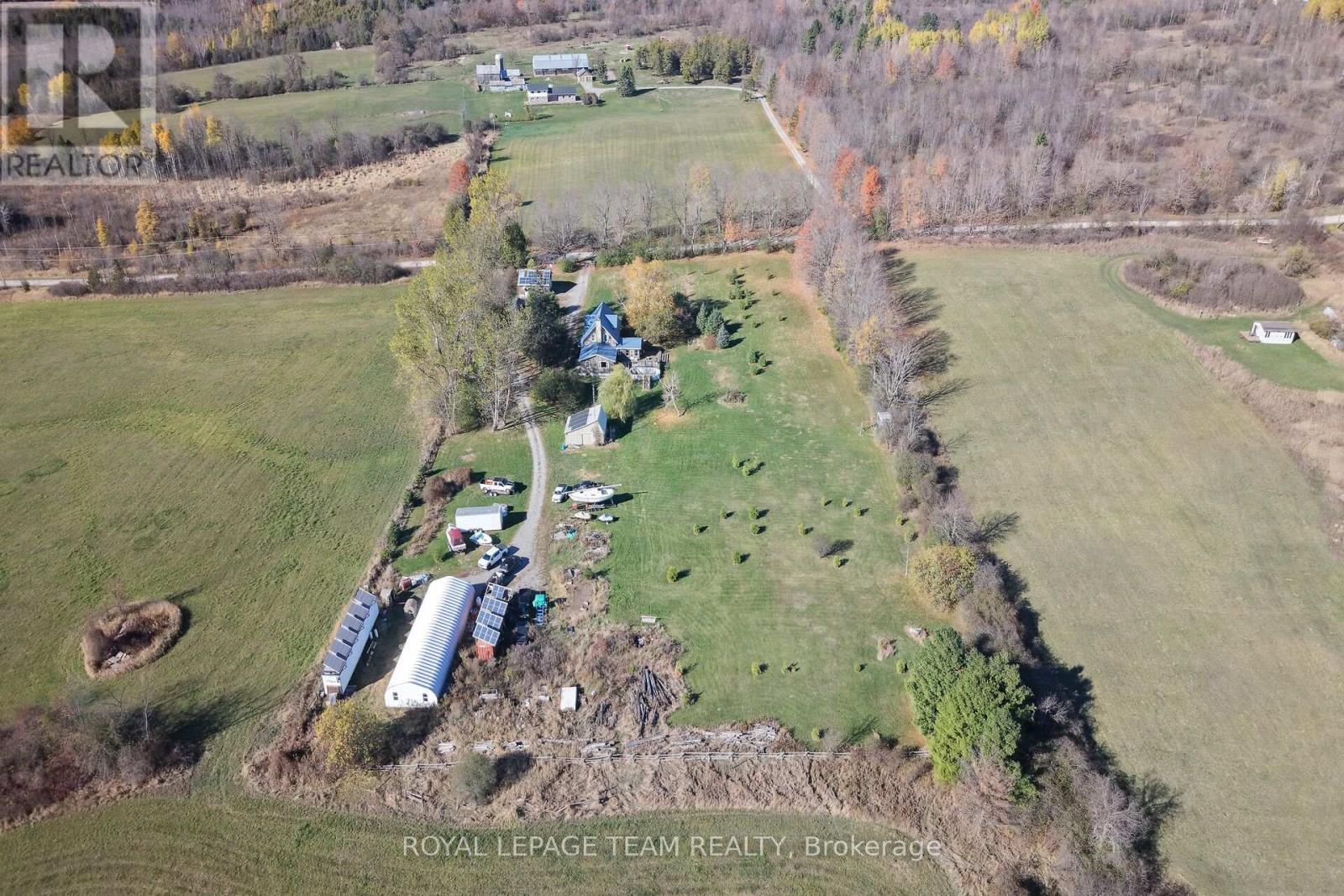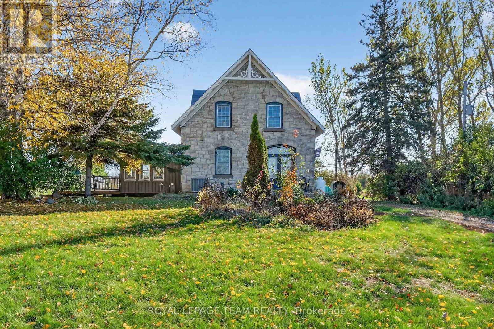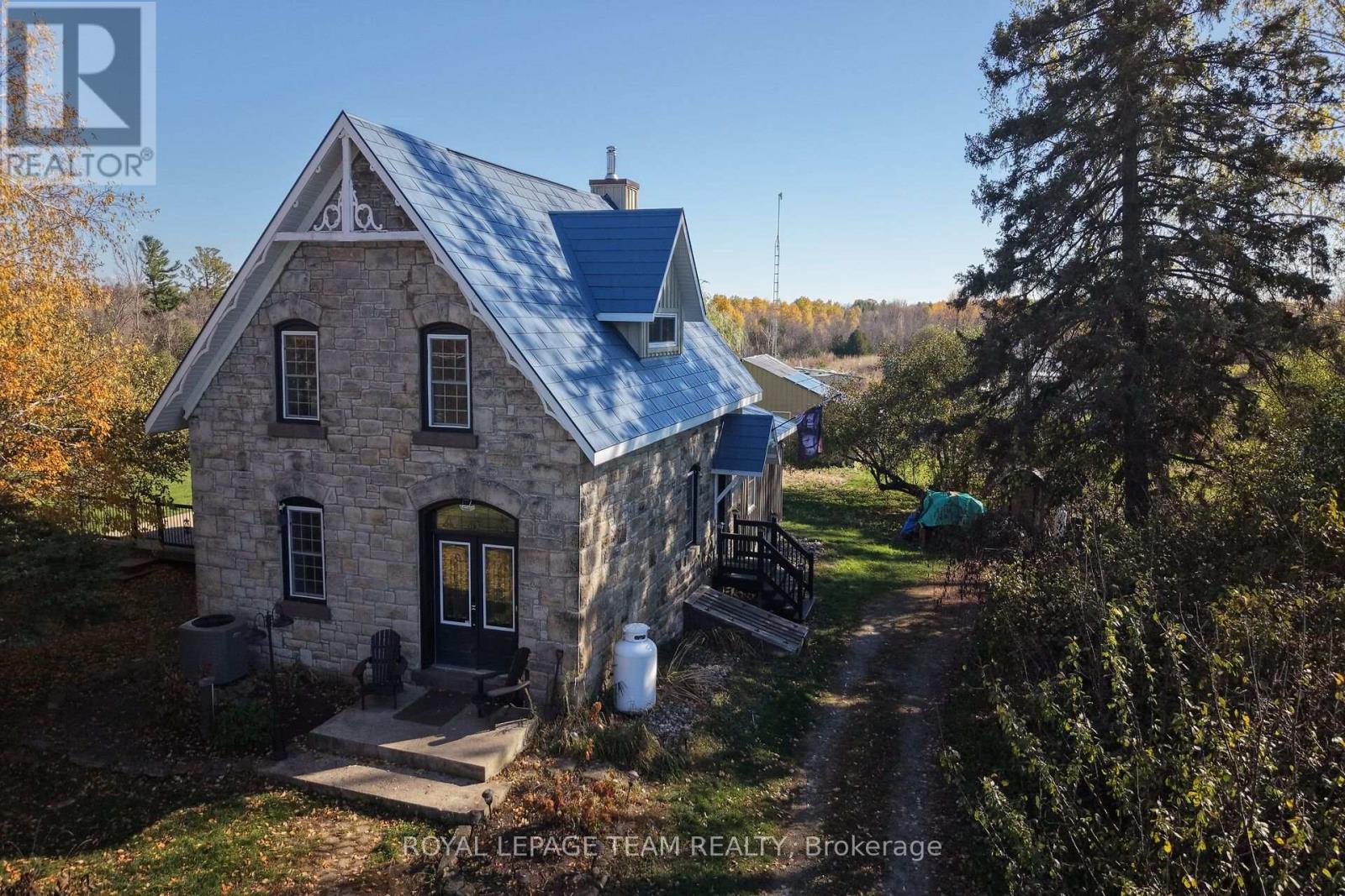 Just south of the growing town of SmithsFalls on a tree lined country road you will find this Century stone farm home. Its perched on the high point of the cedar rail fenced, 4.29 acres of land that it has watched over for 110 plus years! The home is set back from the road on these tranquil acres, is surrounded by mature maples and farm hay fields. Take a moment to think about the horse that likely pulled a bucket to excavate for the homes stone foundation or the craftsmen that toiled to build it with chisels, axes all long before conventional tools were born into our current home builders trades. This home is an exceptional example of homestead that has been loved and improved over the years. You'll appreciate that its stone masonry joints have been repointed, a metal roof has been installed, windows and doors have been replaced while maintaining the interiors deep wall character and period trim. The plumbing and electrical systems have been updated, there is a new furnace and energy efficient heat pump, the country kitchen was rebuilt and this home has been lovingly expanded to suite our modern life style requirements for more family spaces using a board and batten exterior to compliment the stone. Through the ornamental gates there is a separate 2 car garage, an updated septic system ( installed aprox 2012 ), a 24' x 70' insulated, heated hobby quonset building professionally built at the rear of the property for those that dream big with their hobbies. But it's time for a new chapter to be added to its 110 year old story and for that, its now looking for a new family to call it home. Please take the time to explore the many photos for this 3 bedroom 2 bath home, its virtual tour and the attached home plan layout. Book a private showing, walk the grounds, sit on the deck, fall in love and add your chapter into this stone homes story. (id:64974)