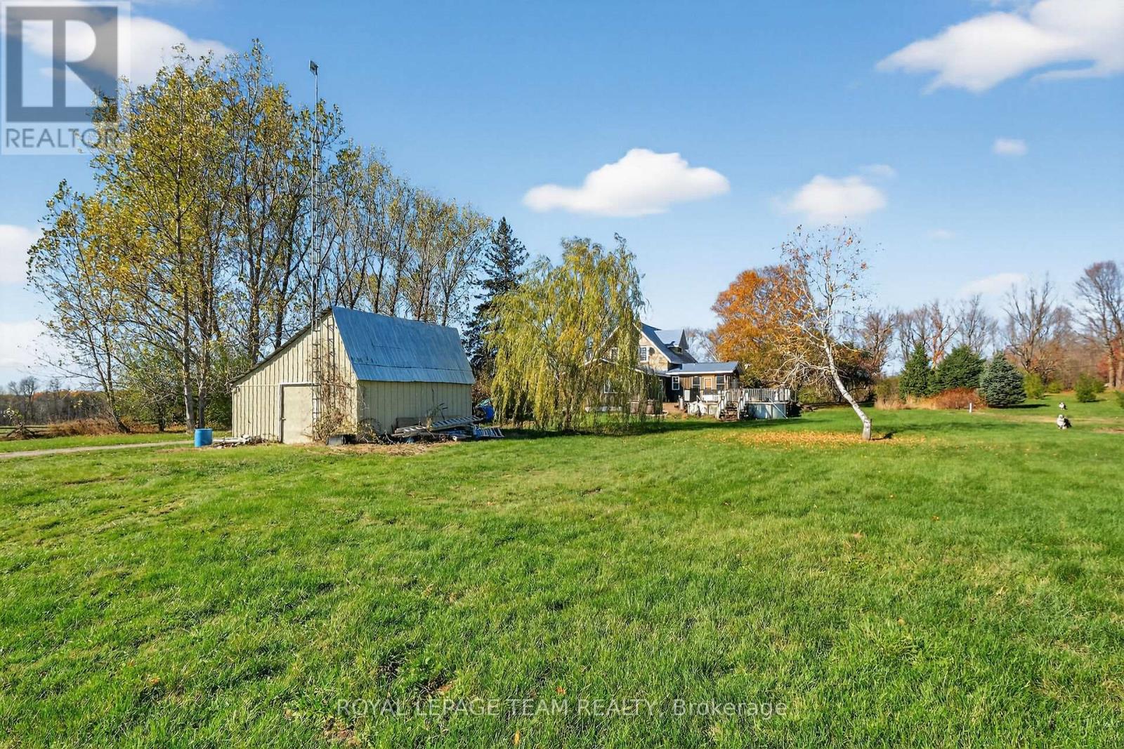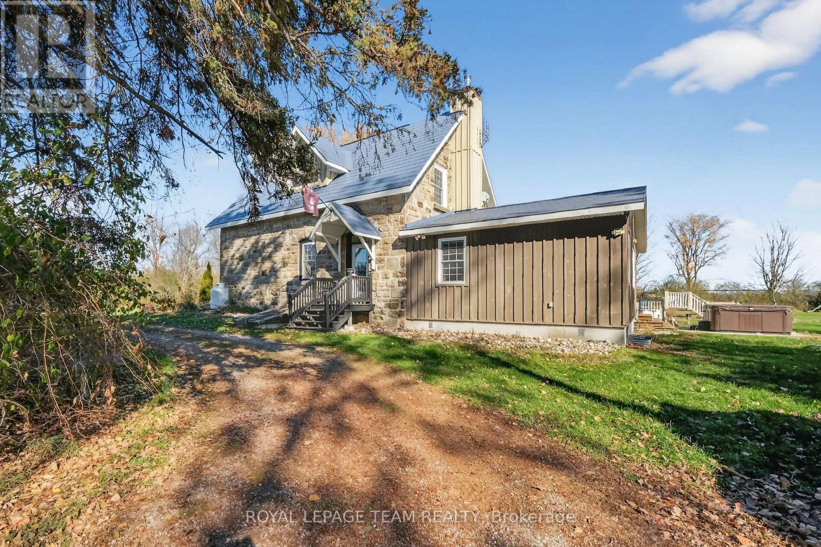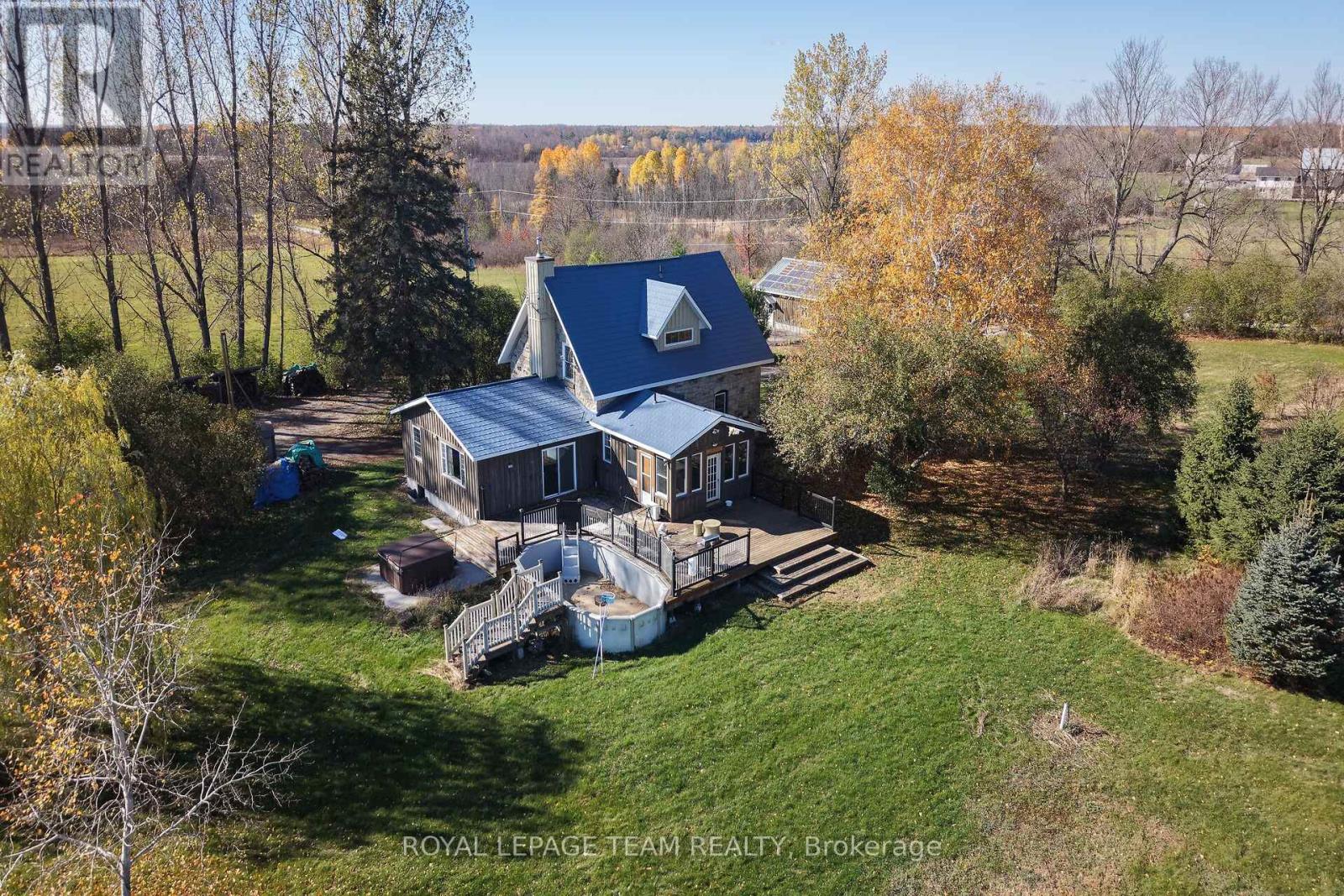Just south of the growing town of SmithsFalls on a tree lined country road you will find this Century stone farm home. Its perched on the high point of the cedar rail fenced, 4.29 acres of land that it has watched over for 110 plus years! The home is set back from the road on these tranquil acres, is surrounded by mature maples and farm hay fields. Take a moment to think about the horse that likely pulled a bucket to excavate for the homes stone foundation or the craftsmen that toiled to build it with chisels, axes all long before conventional tools were born into our current home builders trades. This home is an exceptional example of homestead that has been loved and improved over the years. You'll appreciate that its stone masonry joints have been repointed, a metal roof has been installed, windows and doors have been replaced while maintaining the interiors deep wall character and period trim. The plumbing and electrical systems have been updated, there is a new furnace and energy efficient heat pump, the country kitchen was rebuilt and this home has been lovingly expanded to suite our modern life style requirements for more family spaces using a board and batten exterior to compliment the stone. Through the ornamental gates there is a separate 2 car garage, an updated septic system ( installed aprox 2012 ), a 24' x 70' insulated, heated hobby quonset building professionally built at the rear of the property for those that dream big with their hobbies. But it's time for a new chapter to be added to its 110 year old story and for that, its now looking for a new family to call it home. Please take the time to explore the many photos for this 3 bedroom 2 bath home, its virtual tour and the attached home plan layout. Book a private showing, walk the grounds, sit on the deck, fall in love and add your chapter into this stone homes story. (id:64974)