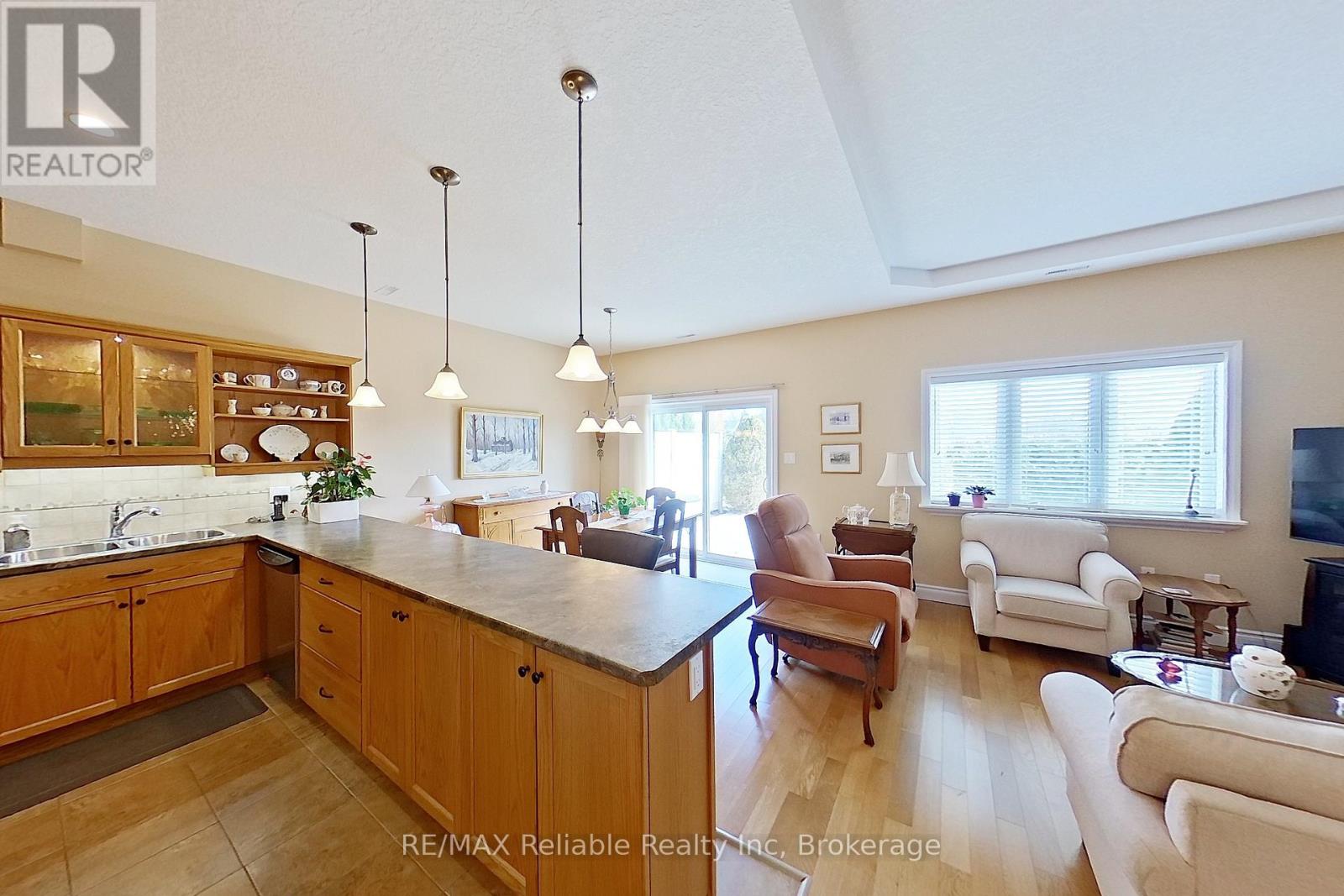 Unit 15 at Bayfield Mews offers easy, low maintenance retirement living on the edge of the charming village of Bayfield. This tastefully designed END UNIT home features 2 bedrooms and 1 bathroom with a bright, open-concept kitchen with peninsula, living room, and dining area. Patio doors lead to an extra large concrete patio that backs onto peaceful open fields, creating a private outdoor space to relax and unwind. Enjoy year-round comfort with in-floor heating, central air conditioning, and a natural gas fireplace. The attached single-car garage keeps your vehicle protected from the elements and adds convenient storage. Bayfield Mews is a welcoming 55+ community offering an active lifestyle with a clubhouse that hosts weekly events and social gatherings. The clubhouse includes a library, full kitchen, great room, meeting space, and patio, along with 6 acres of walking trails for residents to enjoy. The monthly occupancy fee of $630 covers exterior maintenance including snow removal, grass cutting, front flower bed care, and gutter cleaning. The Mews also covers major exterior components such as roof replacement, windows, exterior doors, and heating and cooling systems, along with full access to the clubhouse amenities. If you're looking for a carefree retirement lifestyle in Bayfield, this is the perfect place. Simply lock the door and travel with peace of mind knowing the Mews takes care of everything while you're away. Life Lease Occupancy fee $630/month, Hydro $70/month, Gas $70/month, Water/sewage $100/month, Property taxes $240/ month = TOTAL MONTHLY COSTS $1110.00 (id:64974)
