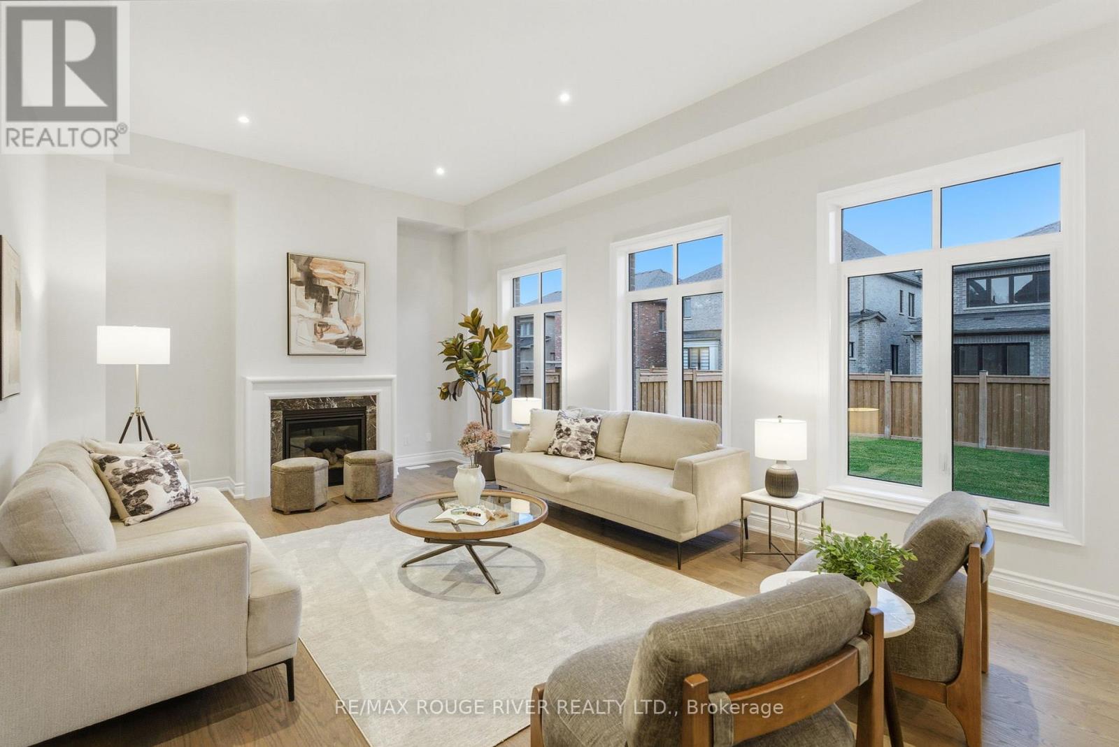 Welcome to The Cedarvale B Model by Heathwood Homes, a stunning all-brick and stone residence in the desirable Country Lane community. Offering over 4,400 sq. ft. of finished living space, this home showcases 4+1 bedrooms, 5 bathrooms, and a fully finished lower level with the exceptional craftsmanship Heathwood is known for. The main level features 10-foot ceilings, smooth finishes, and engineered hardwood floors throughout. The living room overlooks the front yard with pot lights and a warm, inviting atmosphere. The formal dining room impresses with a coffered ceiling and elegant proportions-perfect for entertaining. The great room steals the show with 11-foot coffered ceilings, a fireplace, and bright windows, seamlessly connecting to the designer kitchen. The chef's kitchen offers a center island, breakfast bar, stainless steel appliances, upgraded soft-close cabinetry, valance lighting, and a servery with pantry storage. The adjoining breakfast area opens to a fenced backyard, ideal for relaxed family mornings. The primary bedroom is a private retreat with his-and-hers closets and a spa-like 5-piece ensuite featuring a frameless glass shower and freestanding tub. Three additional bedrooms each include walk-in or double closets and ensuite or semi-ensuite bathrooms with Caesarstone countertops and porcelain tile. The finished lower level with 9-foot ceilings adds valuable living space, including a recreation room with pot lights, a 4-piece bathroom, and a fifth bedroom with a double closet. A wet bar rough-in offers added versatility. Additional features include stained oak stairs with metal pickets, pot lights throughout, upper level laundry with cabinetry, and a beautifully landscaped front yard. Experience luxury living at its finest-The Cedarvale B by Heathwood Homes is where design, comfort, and quality meet in perfect harmony. (id:64974)