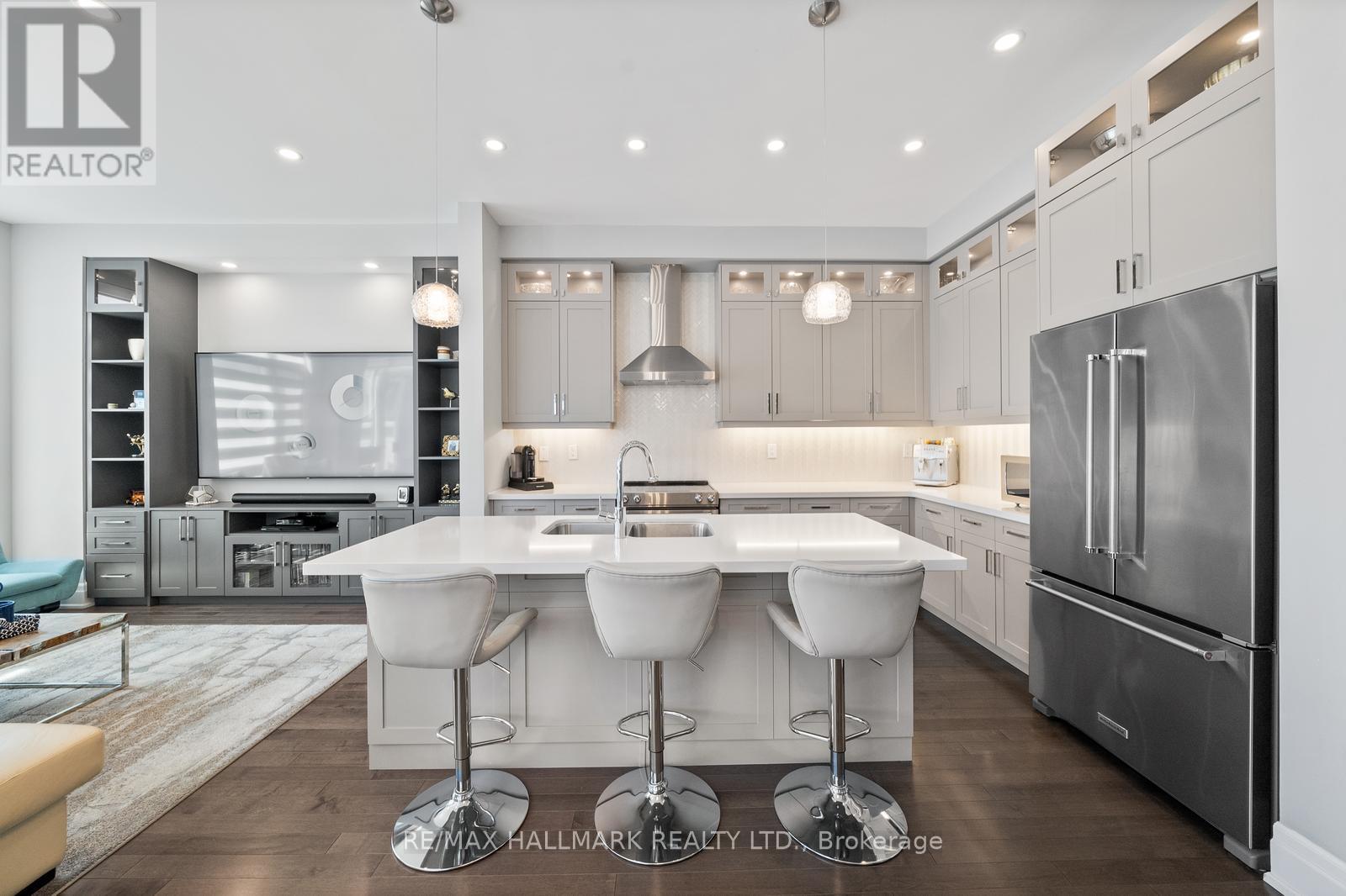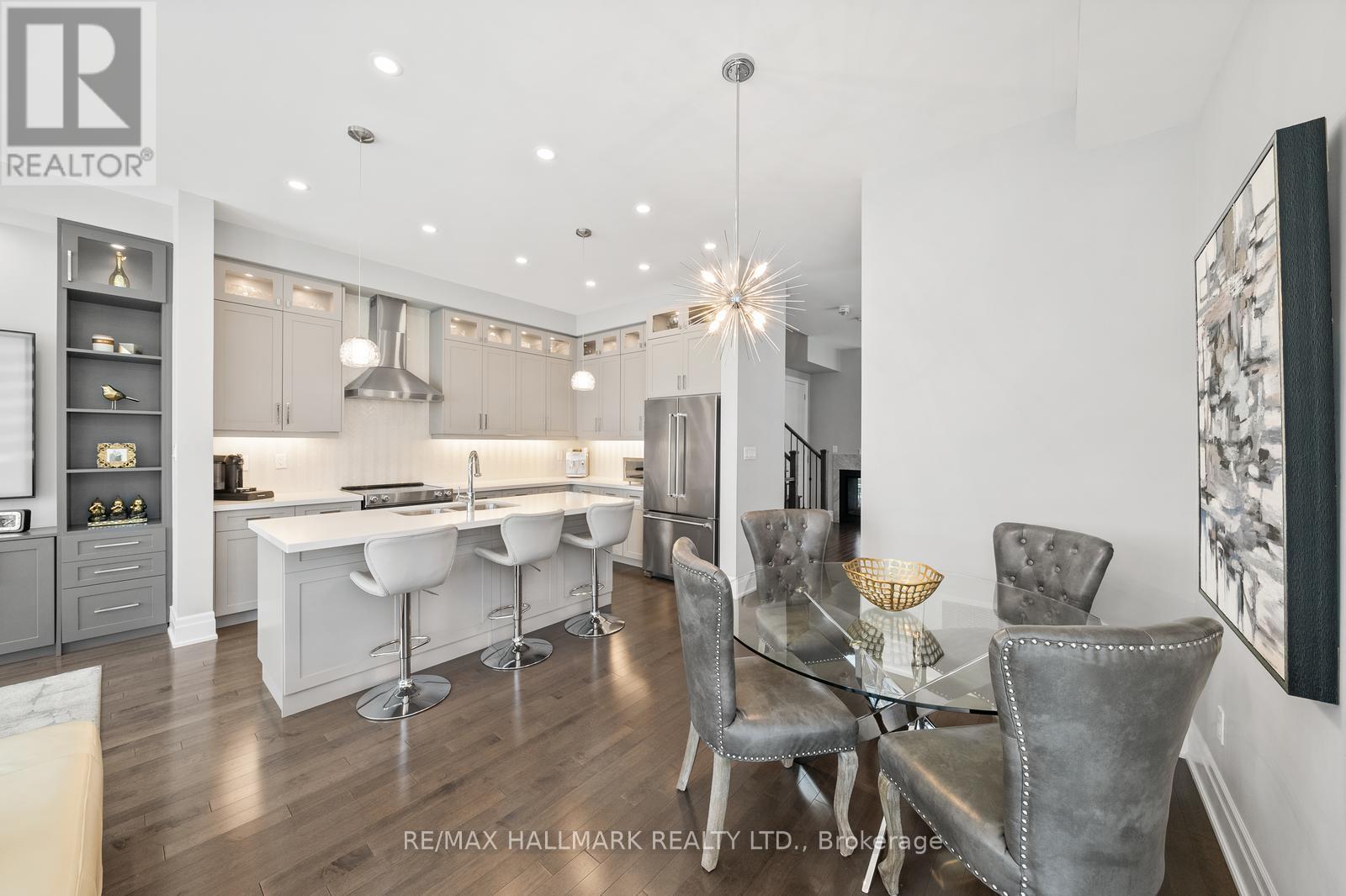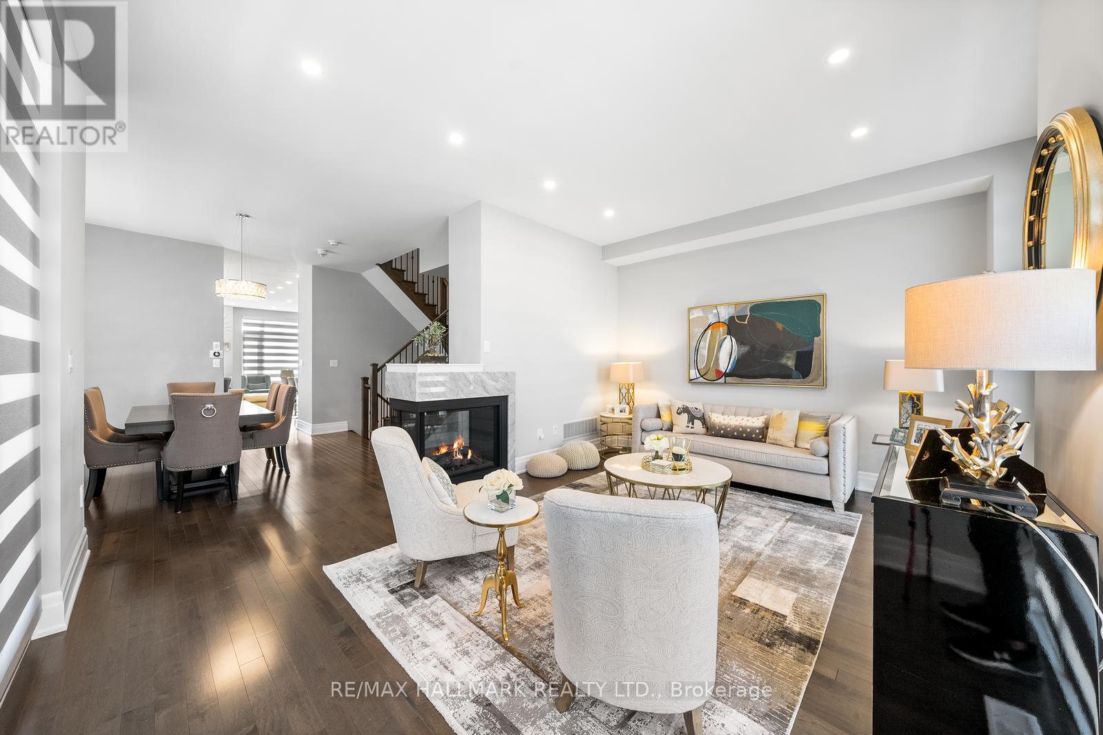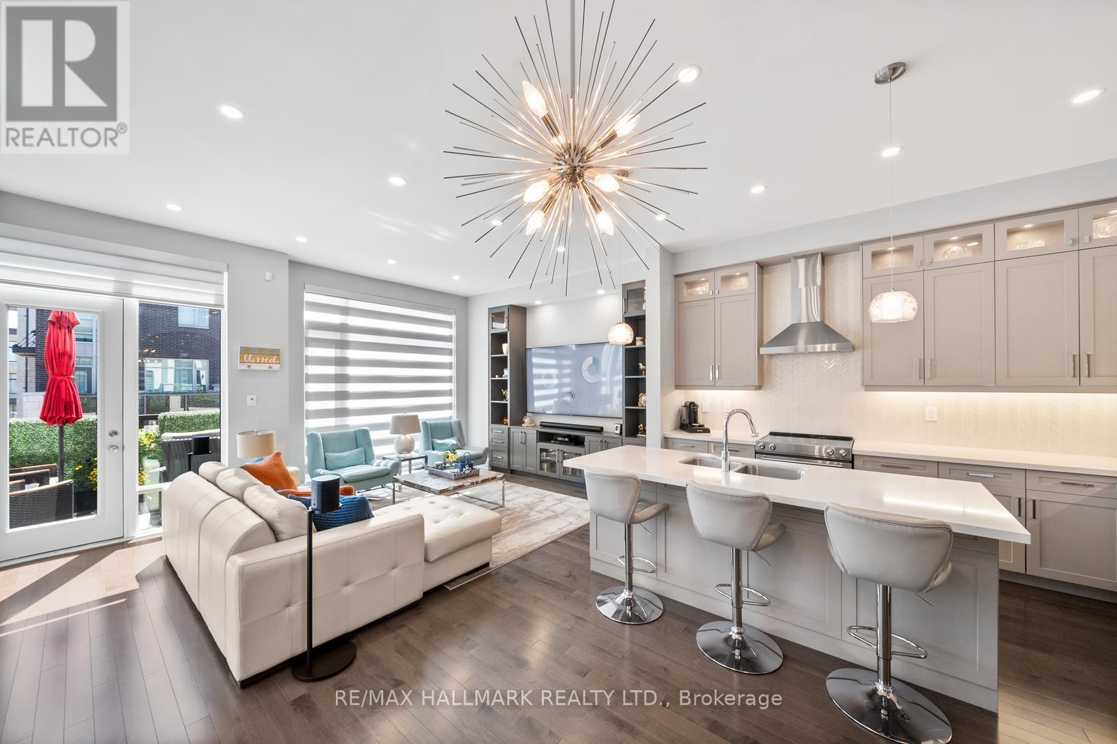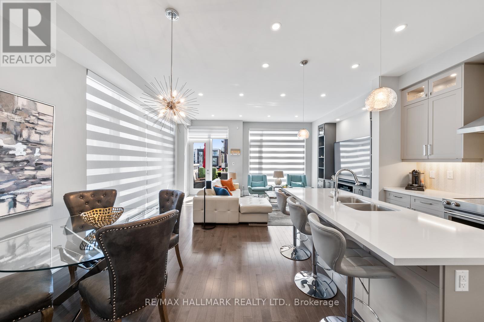 Stunning freehold executive end-unit townhome by Fernbrook Homes sits gracefully on a coveted corner lot in Patterson, where expansive floor-to-ceiling windows fill every level with natural light. Offering nearly 3,000 square feet of luxurious living space, this home is thoughtfully designed with a private elevator connecting all three floors and has been enhanced with over $150,000 in premium upgrades. The ground level features a versatile bedroom, perfect as a nanny or in-law suite or as a private home office. The main living area impresses with soaring 10-foot ceilings, while the upper floor feature 9-foot ceilings throughout, creating an airy and elegant atmosphere. A beautifully upgraded chef's kitchen with extended glass cabinetry, quartz countertops, a stylish backsplash, undermount lighting, and premium stainless steel appliances opens seamlessly to the bright and spacious great room with its wall of windows and walk-out to a large private terrace. The upper level hosts additional bedrooms along with a magnificent primary retreat offering a grand walk-in closet and a spa-like five-piece ensuite. Completed with solid 8-foot interior doors, 7-inch baseboards, and a double-car garage, this residence combines sophistication, comfort, and exceptional functionality, all just minutes from Highway 407, Rutherford GO Station, top schools, parks, and Rutherford Marketplace*Function & Feel Of Detached Home* (id:64974)