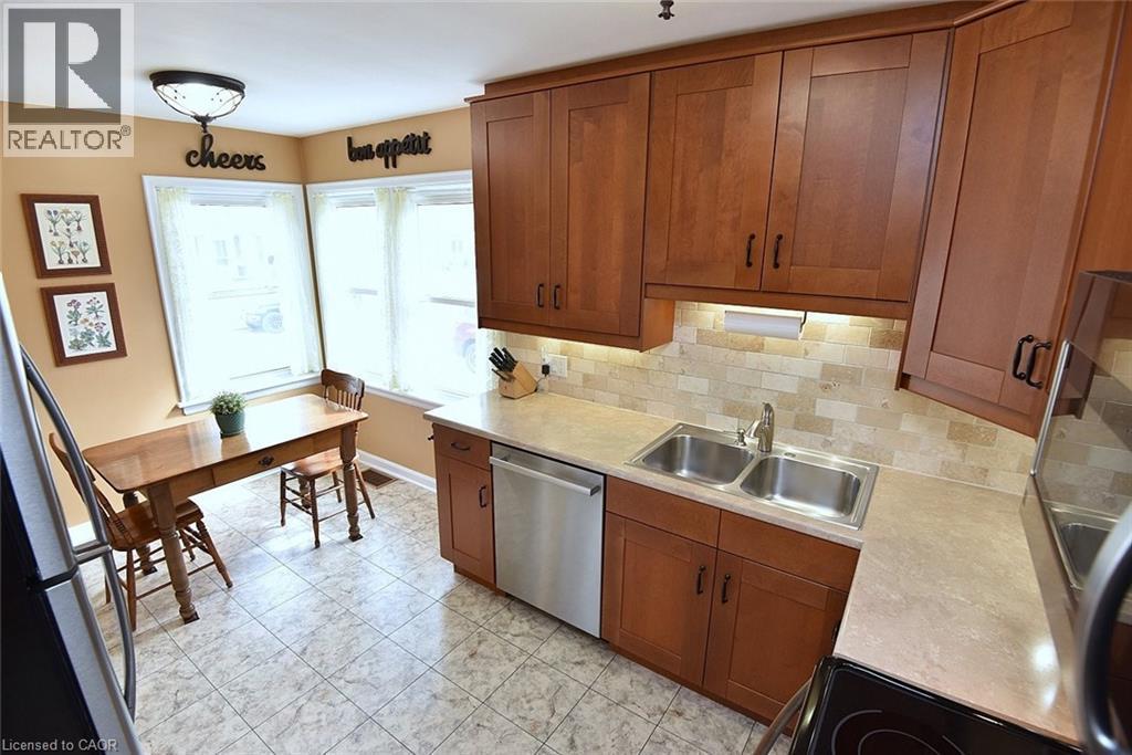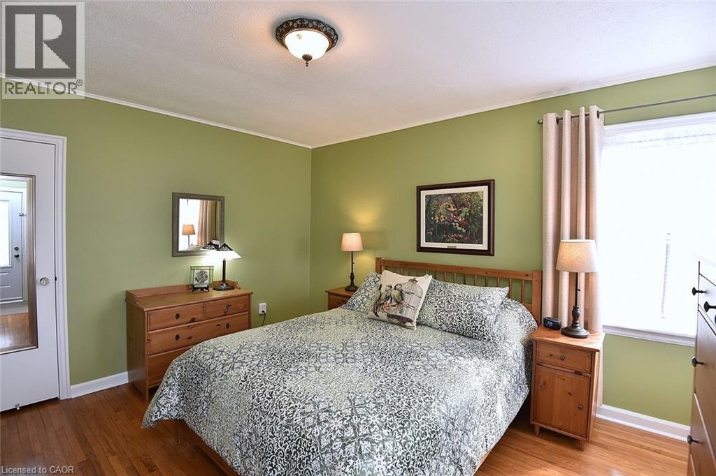 Bungalow. Bungalow. Bungalow. The home downsizers wait for, bungalow hunters chase, and families grow into. This solid all-brick bungalow offers 3+1 bedrooms and 2 baths, with the third main-floor bedroom currently styled as a dining room that could easily be converted back. Eat-in kitchen with stainless steel appliances, newer windows throughout, and a carpet-free main level. The primary bedroom features a walk-out to the deck, creating easy indoor-outdoor living. The finished basement includes a bedroom, bath, rec room, dedicated laundry room, utility/workshop space, and ample storage-plus a separate side entrance, making it ideal for a teen suite or in-law suite potential. Set on a fully fenced, landscaped, treed lot with Gazebo, large poured concrete patio, deck, and shed, plus a 1-car garage. Close to schools and walkable to downtown, everyday amenities, and Dundas Driving Park. (id:64974)