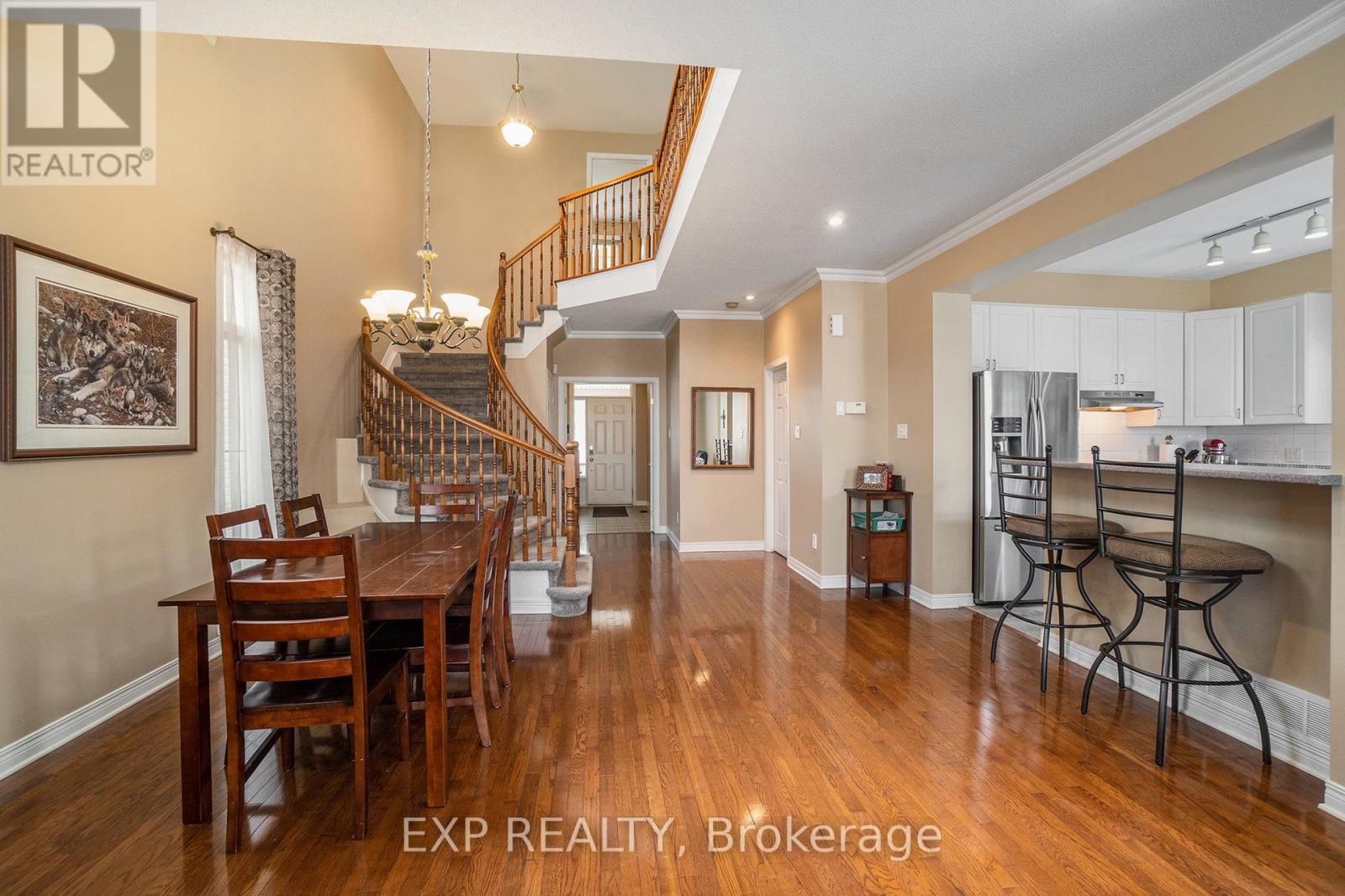 Welcome to 15 Escade Drive, a stunning 2-storey Tamarack-built, Amberley model located in the desirable community of Barrhaven East. Built in 2002, this beautifully maintained home offers 4 spacious bedrooms, 2.5 bathrooms, and a double car garage.The main floor features gleaming hardwood floors and a bright, open-concept layout filled with natural light. The kitchen is equipped with stainless steel appliances, a centre island with seating, and opens seamlessly to the dining and living areas perfect for entertaining.Upstairs, you'll find four generously sized bedrooms with updated carpet (2021), and an elegant staircase and banister that add charm throughout. The fully finished basement offers even more living space with updated carpet (2019), ideal for a family room, home gym, or office. Enjoy outdoor living in the fenced backyard complete with a wooden deck and a storage shed. Major updates include a new roof (2022), providing peace of mind. This move-in ready home is nestled in a family-friendly neighbourhood close to parks, schools, shopping, and transit. Don't miss your chance to own this fantastic home book your showing today! (id:64974)