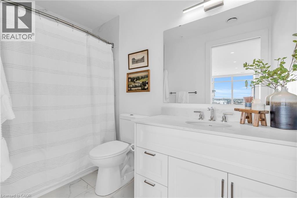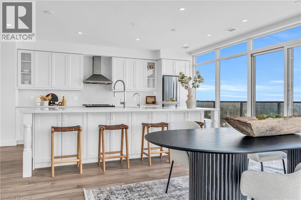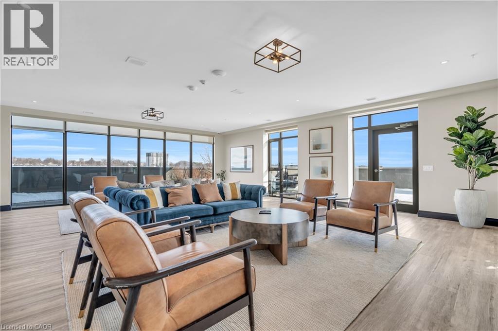 Luxury Penthouse Living in the Heart of the Gaslight District! An extraordinary 2,300 sq. ft. residence created by seamlessly combining two expansive units. Spanning the entire side of the building, this one-of-a-kind three-bedroom, three-bathroom home offers breathtaking panoramic views of historic downtown Cambridge and the Grand River. Step into a grand foyer that opens into a sun-drenched, open-concept living space. Floor-to-ceiling windows bathe the home in natural light, while engineered hardwood floors add warmth and sophistication. The thoughtful layout includes pocket doors in every bedroom, maximizing both space and functionality. At the heart of the home is a chefs dream kitchen, fully upgraded with quartz countertops and backsplash, an oversized island, and premium finishes. Designed for both style and efficiency, this space is perfect for intimate dinners or lavish gatherings. The primary suite is a private retreat, complete with a spacious walk-in closet/dressing area with custom organizers and a large window. The spa-like ensuite boasts a walk-in glass shower and dual sinks, while sliding glass doors provide direct access to the penthouses expansive 100-ft. terrace. The second bedroom features floor-to-ceiling windows, a wall-to-wall closet, and its own private three-piece ensuite. A third generous bedroom currently configured as an office/den offers additional flexibility. This extraordinary residence also features a wraparound balcony accessible from every room, offering spectacular sunrise and sunset views over the city skyline and Grand River. Additional features include two underground parking spaces (one with an EV charging station), two private storage lockers, and access to state-of-the-art amenities: a rooftop terrace, private dining room, fitness center, yoga & Pilates studio, and an elegant lobby. (id:64974)