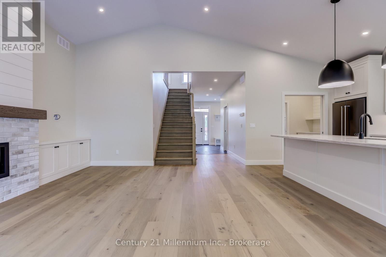 Now featuring LP SmartSide Siding & Trim on the exterior, paired with decorative shale stone! The open-concept living area boasts an island breakfast bar, natural gas fireplace, patio doors, and cathedral ceilings leading to a covered rear patio that backs onto a tree-lined forest. The generous open living and dining room overlooks the private, glass-paneled covered patio with cedar decking, perfect for al fresco dining. The dream kitchen includes an oversized island, solid-surface countertops, a designer range hood, and ample storage, making it an absolute delight. A separate laundry room and walk-in pantry, conveniently located between the foyer and kitchen, are discreetly tucked away to keep groceries and chores out of sight. Enjoy main-floor living with a spacious primary suite featuring a luxurious 5-piece ensuite with a glass shower, freestanding soaker tub, and custom walk-in closet. Oversized windows and patio doors food the home with natural light. The second-floor family room showcases a wall of west-facing windows. The second bedroom, complete with a walk-in closet, and the third, with a wall-to-wall closet, provide comfort and storage for children or extended family. A full 4-piece bath completes the upper level. Subtle earth tones tie this spectacular home together from engineered hardwood and a custom range hood to the accent island top, vertical shiplap, and modern hardware, light fixtures, and ceiling fans. The basement features oversized, above-grade windows that bathe the space in natural light. Designed to accommodate two additional bedrooms, a roughed-in bathroom, and a large recreation room, this level offers the potential for an extra 1,100 sq.ft. of living space. The builder will gladly finish it to suit your needs. Additional features include a concrete driveway, fully sodded lawn, and rough-in for a natural gas generator. Launch Custom Homes builds houses you'll be proud to call home. Upgrade options include Maibec wood siding. (id:64974)