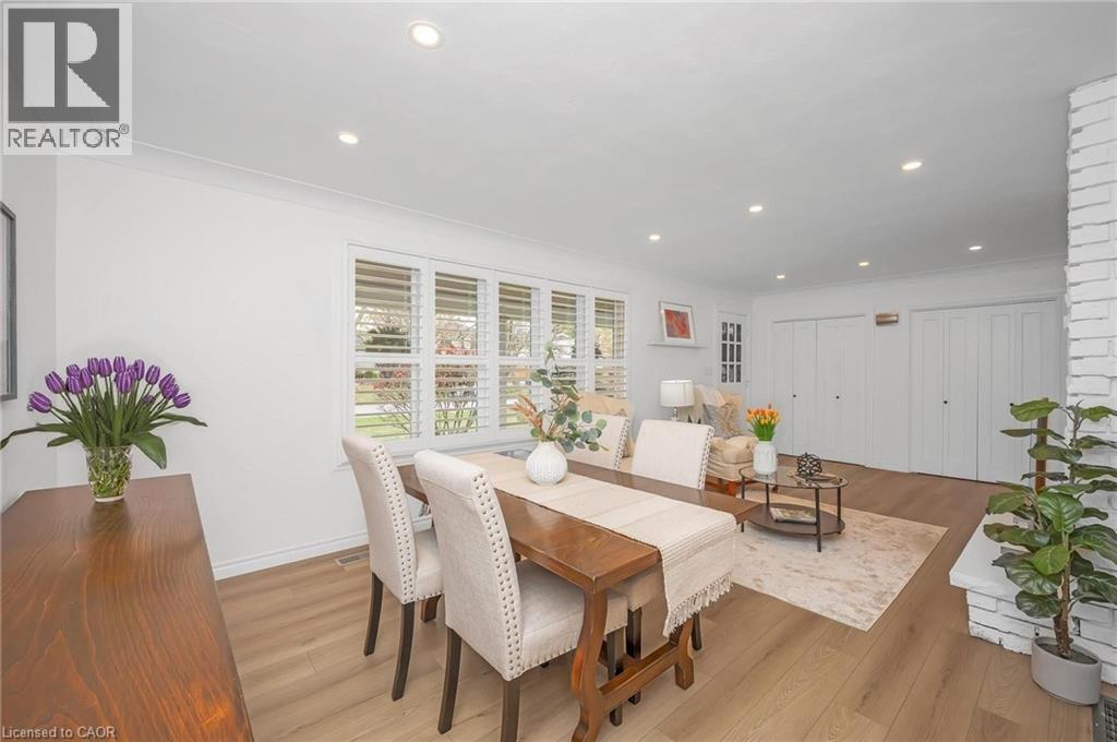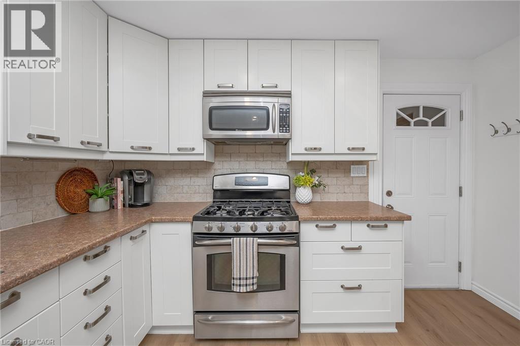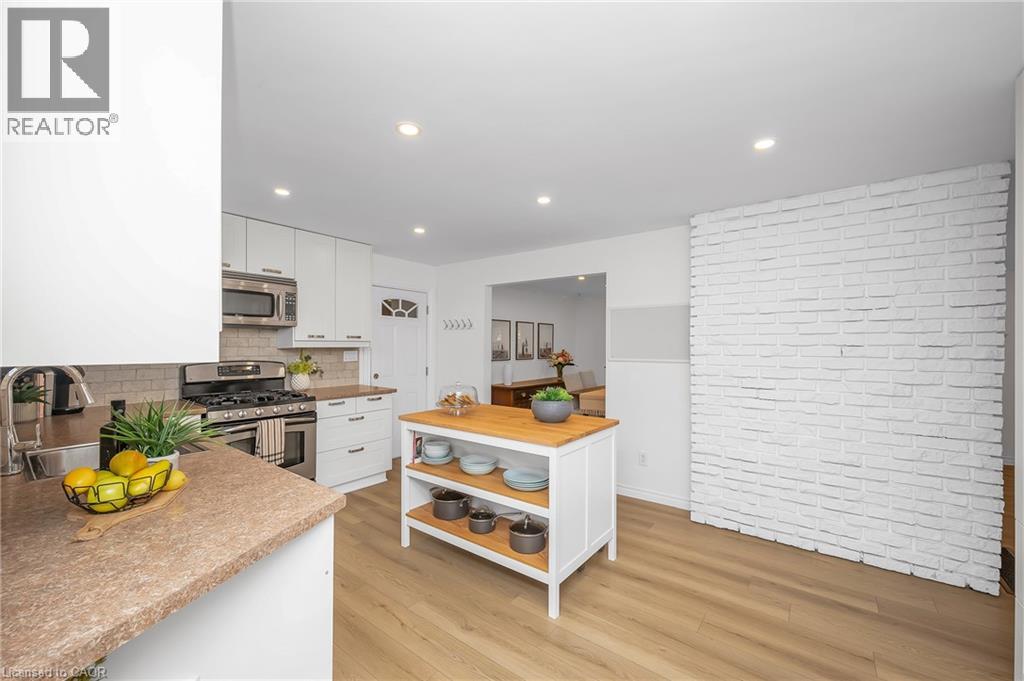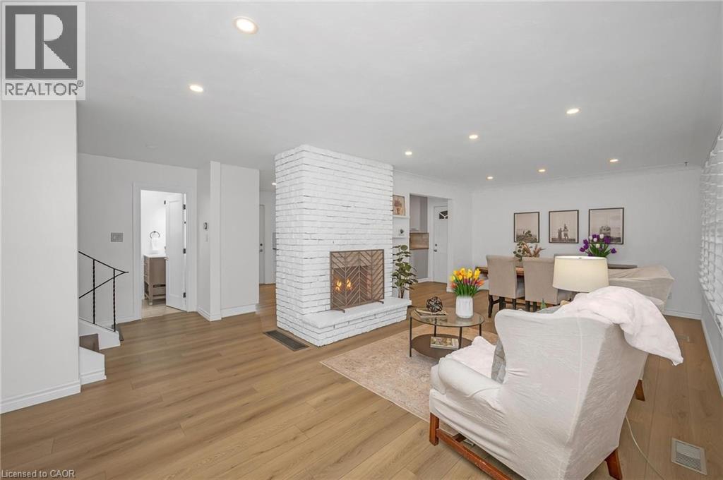 Welcome to 15 Harvest Lane, a beautifully updated 4-level side split in Brantford’s sought-after Greenbrier neighbourhood. Set on a quiet, family-friendly street where kids play and neighbours connect, this home offers the kind of lifestyle buyers are searching for - walkable, welcoming, and move-in ready. With 3+1 bedrooms, 2 fully renovated bathrooms, and 3 living areas, the layout is both functional and flexible for growing families. From the moment you arrive, the stone walkway and covered front porch set the tone - polished, inviting, and easy to love. Inside, the main level feels bright and refreshed, featuring a spacious living room with a statement floor-to-ceiling wood-burning fireplace, an open dining area, and a crisp white kitchen complete with stainless steel appliances, a central island, and a walk-out to the backyard. The fully fenced yard and two-tier deck are made for spring and summer - morning coffee, weekend BBQs, and long evenings outside while kids play. Upstairs, you’ll find three generous bedrooms with hardwood flooring and excellent closet space. The lower level adds even more versatility with a cozy family room and bonus flex space ideal for a playroom, home office, or teen hangout. The fully finished basement offers a stylish rec room, a spacious fourth bedroom, a modern full bathroom, and a bright, organized laundry area. Updates include new main floor flooring, California shutters, and a newer furnace, heat pump, and A/C (2024). Close to parks, schools, shopping, and quick 403 access - this is a home that delivers on lifestyle, location, and value. (id:64974)
