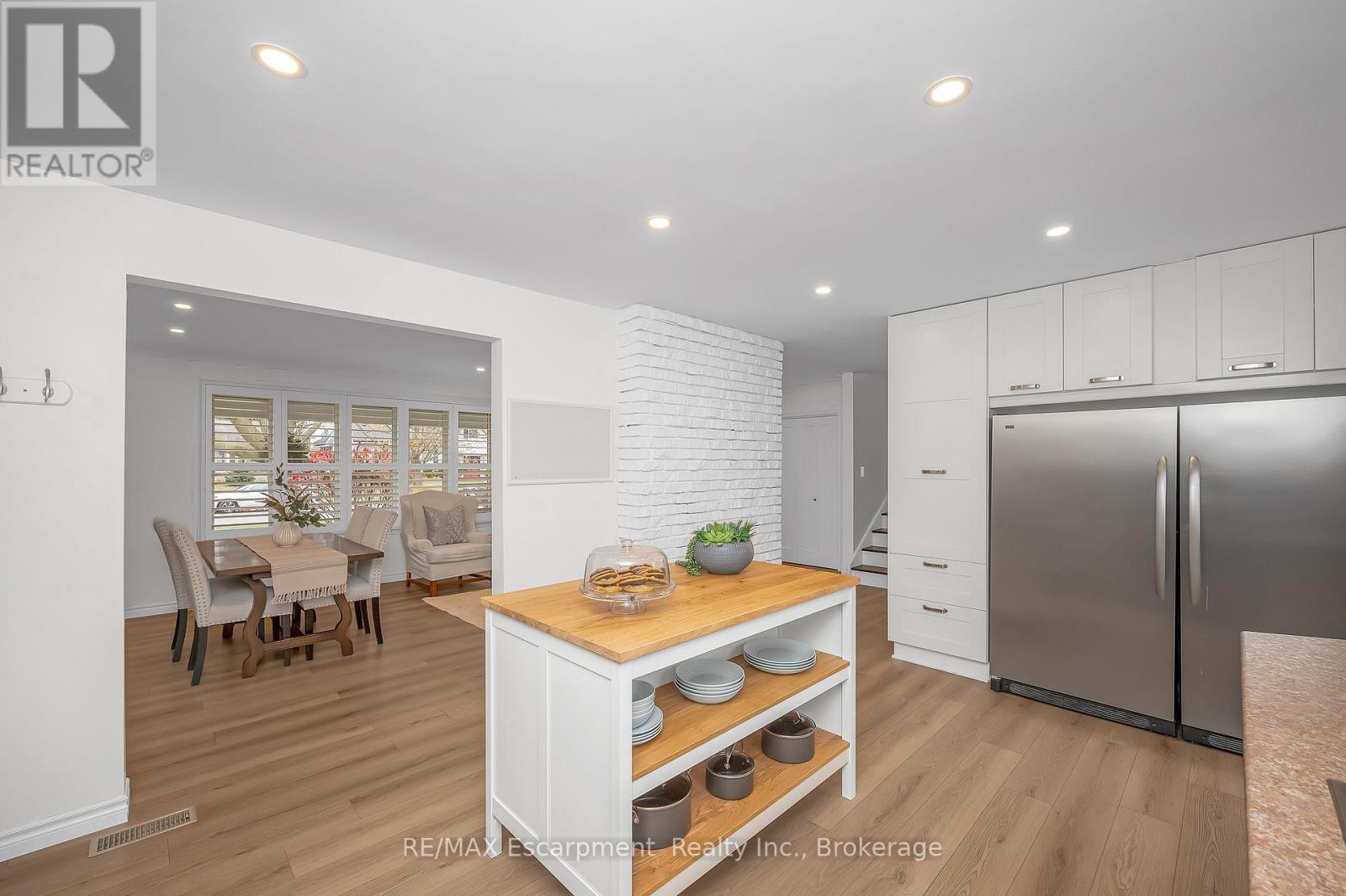 Welcome to 15 Harvest Lane, a beautifully updated 4-level side split in Brantford's sought-after Greenbrier neighbourhood. Set on a quiet, family-friendly street where kids play and neighbours connect, this home offers the kind of lifestyle buyers are searching for - walkable, welcoming, and move-in ready. With 3+1 bedrooms, 2 fully renovated bathrooms, and 3 living areas, the layout is both functional and flexible for growing families. From the moment you arrive, the stone walkway and covered front porch set the tone - polished, inviting, and easy to love. Inside, the main level feels bright and refreshed, featuring a spacious living room with a statement floor-to-ceiling wood-burning fireplace, an open dining area, and a crisp white kitchen complete with stainless steel appliances, a central island, and a walk-out to the backyard. The fully fenced yard and two-tier deck are made for spring and summer - morning coffee, weekend BBQs, and long evenings outside while kids play. Upstairs, you'll find three generous bedrooms with hardwood flooring and excellent closet space. The lower level adds even more versatility with a cozy family room and bonus flex space ideal for a playroom, home office, or teen hangout. The fully finished basement offers a stylish rec room, a spacious fourth bedroom, a modern full bathroom, and a bright, organized laundry area. Updates include new main floor flooring, California shutters, and a newer furnace, heat pump, and A/C (2024). Close to parks, schools, shopping, and quick 403 access - this is a home that delivers on lifestyle, location, and value. (id:64974)