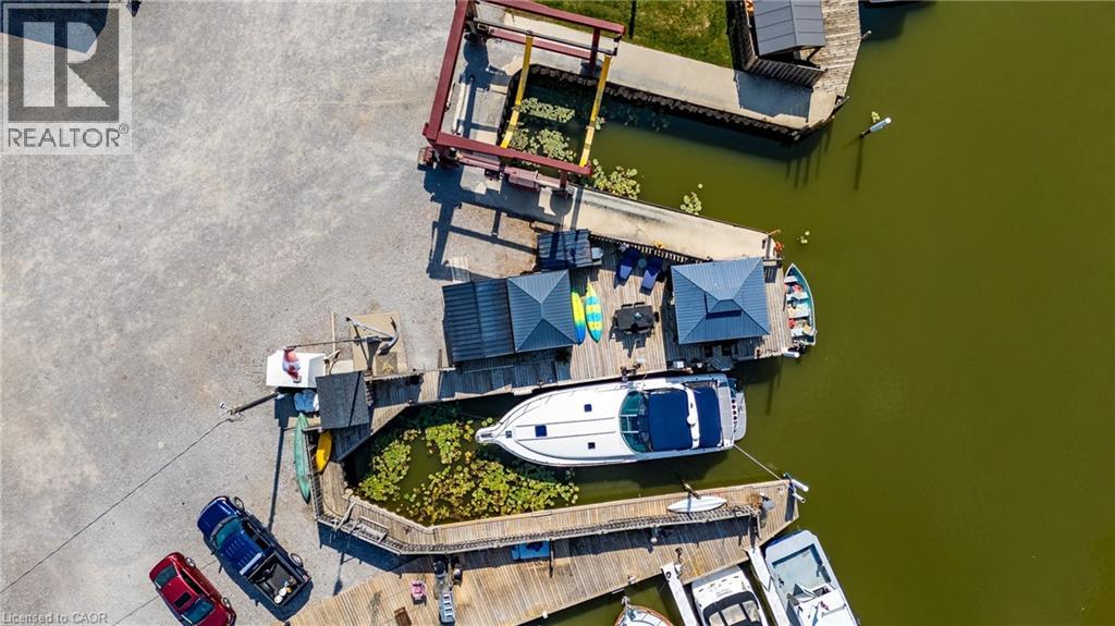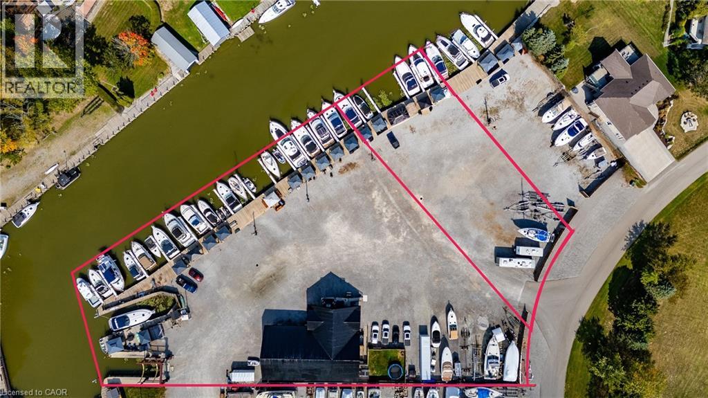 BARNDOMINIUM and 400+ FEET OF WATER FRONTAGE ON BLACK CREEK (made up of deeded lots 12-15) situated on 1.6+ acres. Possibilities may include: Marina, dockaminium with clubhouse, personal barndominium residence, multi-residential development or develop each lot individually. Boasting convenient access to Lake Erie via a short boat ride, this property beckons boaters who wish to have drive up access to their boats. Recently updated boardwalk and pedestals (Hydro/water supply for slips). Travel lift boat well, yacht slip (75' x 22'), 27 large boat slips all complete with hydro and water connections, as well as ample space for winter storage of 125 boats. This property presents a unique prospect for investors and enthusiasts alike. Impressive 1870 sqft. residence/clubhouse on the upper level with soaring cathedral ceilings includes open concept great room, kitchen and dining area, three bedrooms including the crews quarters on the north west wing, 4 piece and 2 piece bathroom. Boast a 3200 sqft heated shop with 20'x20' power door & 27' ceiling, 800 sq ft retail/garage space with power door and office. Two marina washrooms with showers. Includes a marine travel lift, Conolift hydraulic boat trailer, Case 35A tractor with L340A loader, 2 overhead cranes, blocking and stands for storing boats. Whether you are seeking a marine business or an investor eyeing potential future development, this property presents an enticing opportunity not to be overlooked. Check out the virtual tour and book your viewing today. (id:64974)