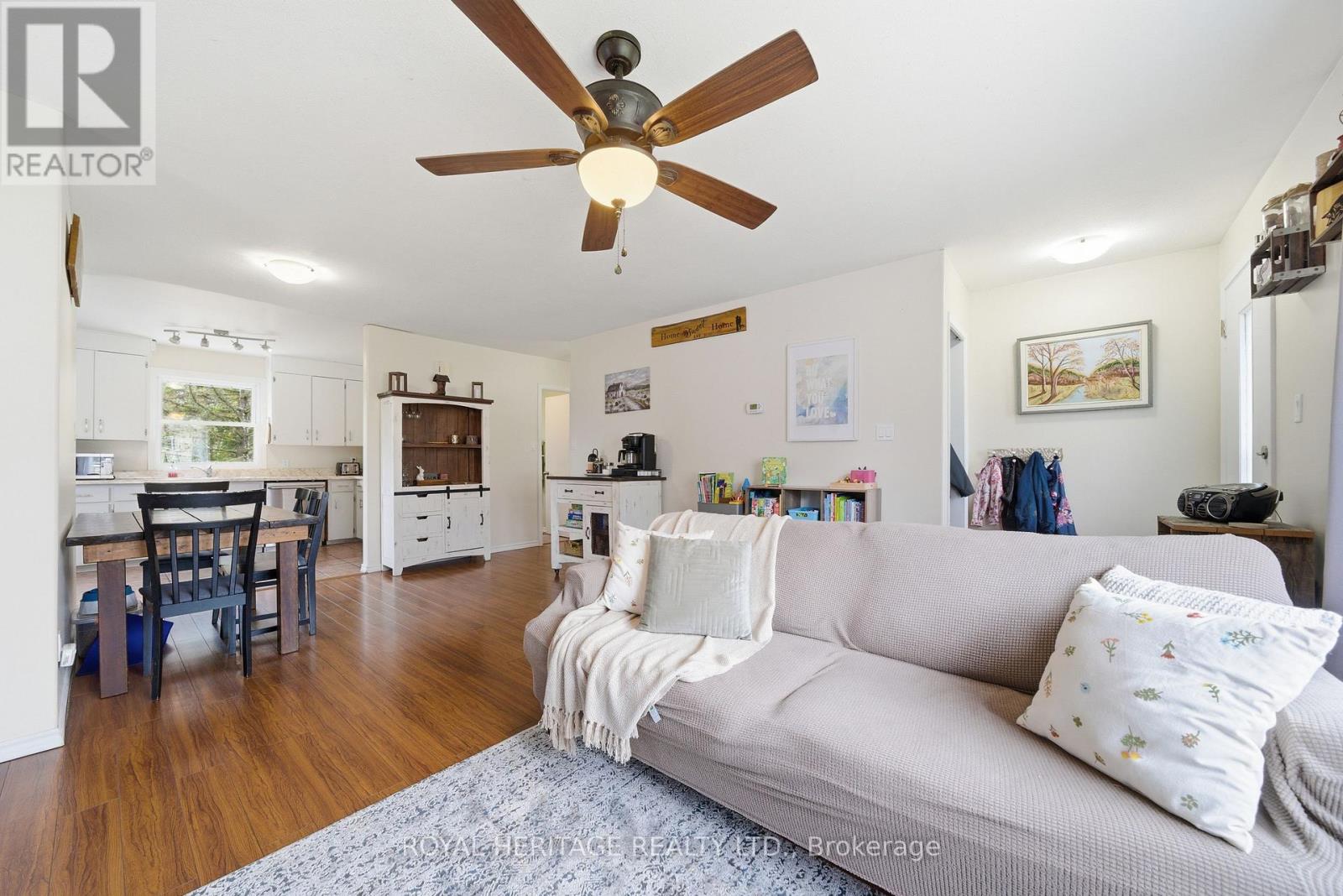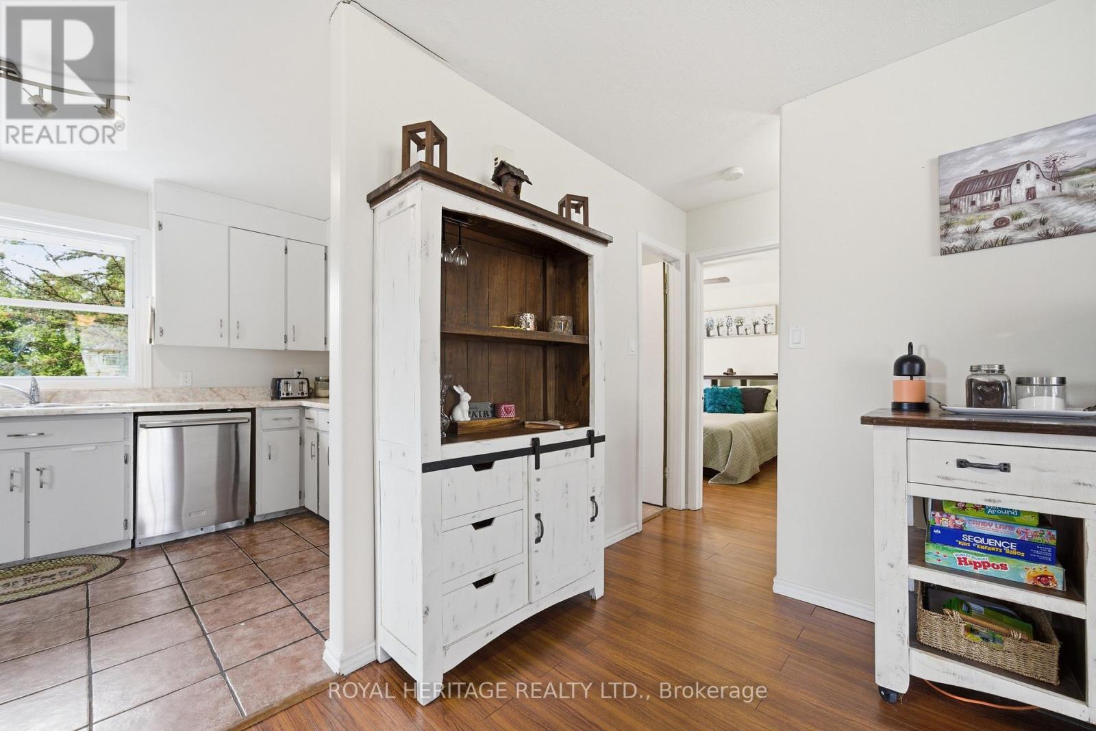 Welcome/Bienvenue to 15 Kidd Avenue! This charming bungalow sits on a spacious lot that's larger than it appears and is located just minutes from CFB Trenton. Inside, you'll find an open-concept living space featuring a bright living room, dining area, and kitchen. The main floor includes a refreshed 4-piece bathroom with a new window and bathtub. The generously sized bedroom is currently used as a child's dream room, with space for everything, while the second bedroom, used as the primary bedroom, has a patio door opening onto a deck - an ideal spot to enjoy your morning coffee with a view of the backyard. The lower level offers a spacious rec room with a walkout to the backyard, a laundry area, a 2-piece bathroom (with a rough-in for a shower), and ample additional space for flexibility. A storage room could easily be converted into an extra bedroom by updating the window, and a good-sized office - also with direct yard access - could serve as another bedroom if desired. The private, tree-lined, fully fenced backyard feels like your own retreat, offering ample space to create your ideal outdoor oasis. Could this be / Est-ce que ca pourrait etre votre... Home Sweet Home? (id:64974)