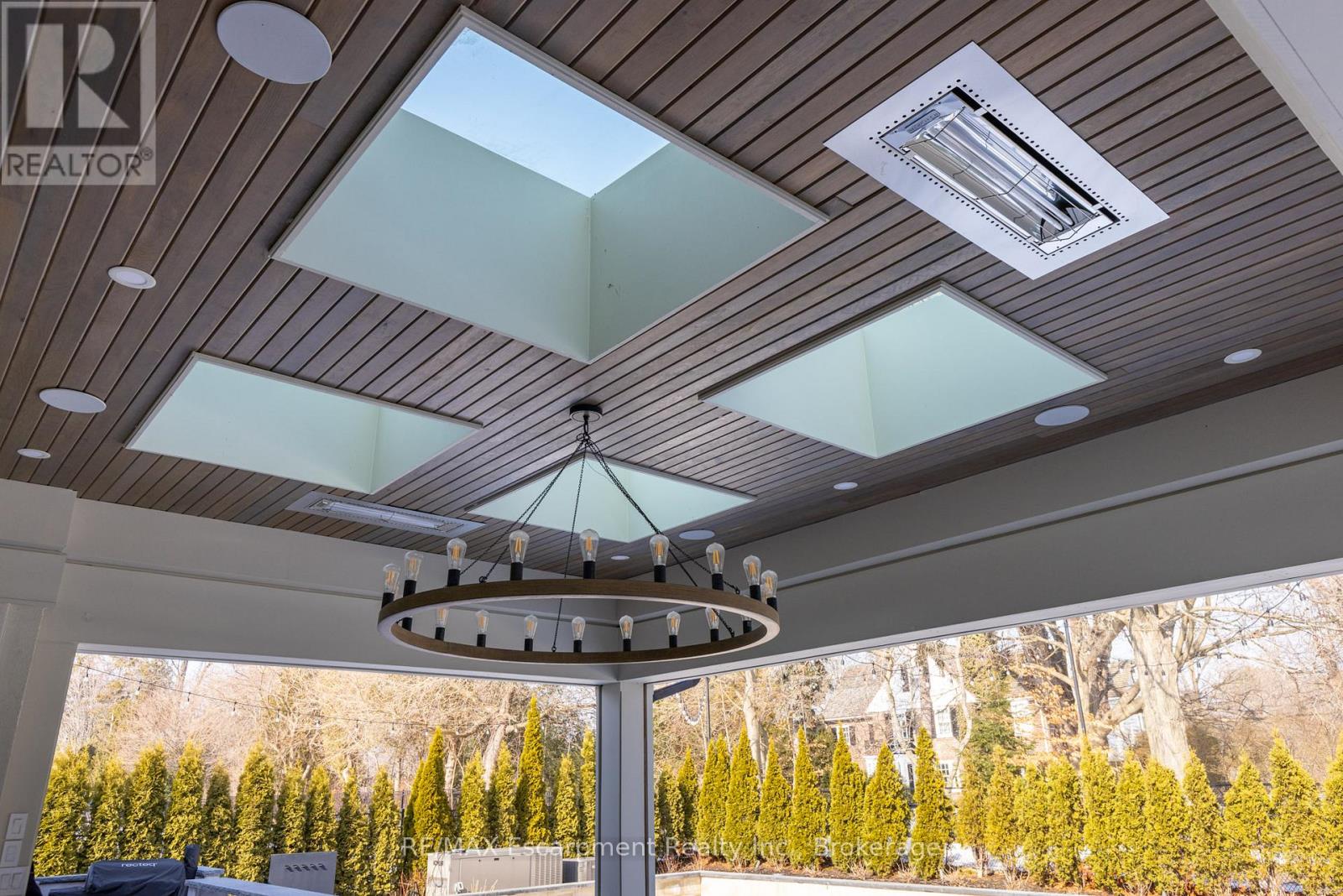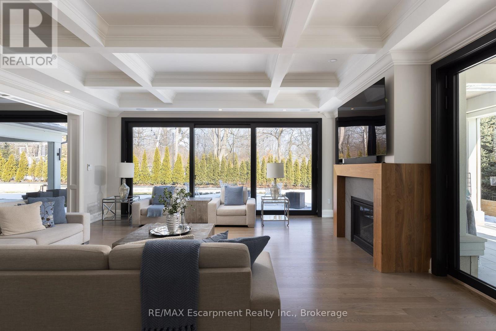 Located on the prestigious private lane of Lambert Common this masterful 8300 square foot plus home includes a seamless 2024 addition from the original 7 year old build. This custom residential design stuns with grand proportions and meticulous detail. All three levels feature 10-foot ceilings defining the home by its impressive rooms and an atmosphere of space and luxury. The entrance is both welcoming and breathtaking with it's incredible moldings and crystal chandelier casting diamond glints across the foyer flanked by the living and dining rooms. Stepping through to the back of the house, you will enjoy panoramic views of wall to wall glass overlooking the two heated patios. The culinary wing is divided into two distinct zones for the ultimate hosting experience: The Showcase Kitchen: A visual centerpiece featuring a dramatic backlit stone wall that serves as a piece of living art. A 14-foot island, elegantly underlit to create a feeling of light providing sophisticated seating for six to enjoy the stunning kitchen. The Prep Kitchen: Positioned discreetly at the back of the main floor, this secondary kitchen allows for preparation to remain out of sight, ensuring the primary living space remains pristine. The home boasts five bedrooms with walk-in closets and ensuites. The Primary Suite is a dedicated sanctuary with his & hers walk-in closets, fireplace, and private bath, all oriented specifically to provide a serene, view of the lake, allowing the water to serve as a constant, tranquil backdrop. The upper level laundry room is spectacular an appliance package that includes a steam closet. The Entertainment & Wellness Lower Level Maintaining the same 10-foot ceiling height as the upper floors, and a destination unto itself. This level is fully equipped for a high-performance lifestyle, featuring and private glass enclosed gym, theatre room, open recreation room, secondary laundry suite & sixth bedroom with private office. This home is Luxury Certified. (id:64974)