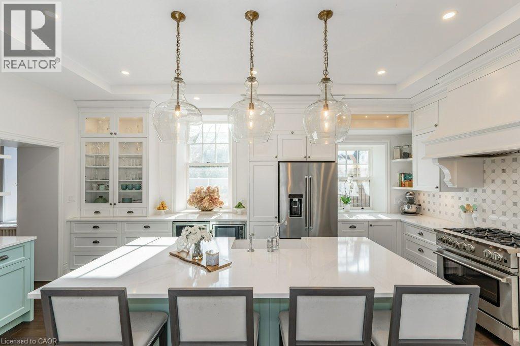 15 Liverpool is a timeless 3226sqft home that blends rich history W/thoughtful renovations nestled on one of Guelph’s most beloved streets just steps from vibrant downtown! Beyond its striking curb appeal & original limestone exterior this property offers a backyard oasis W/heated inground pool, perfect place to unwind & entertain! Built in 1850 & expanded over the decades, this 5-bdrm home retains key elements of its historic charm. 2 original Italian marble fireplaces imported in 1850s remain beautifully preserved-testament to the homes craftsmanship & legacy. Yet at every turn it’s clear this home has been updated for modern living. Custom kitchen is designed W/entertaining & everyday life in mind W/quartz counters, Paragon cabinetry, high-end appliances & radiant in-floor heating. Off the kitchen is bright mudroom, 2pc bath & laundry also W/heated floors. Formal living & dining rooms are elegant & inviting W/hardwood, soaring ceilings, high baseboards & oversized windows. Upstairs, 5 spacious bdrms provide room to grow, host or work from home. Large windows brighten every room while thoughtfully added closets offer rare storage for a home of this era. One bdrm has custom B/I shelving perfect for book lovers or collectors. 2 full baths offer timeless design W/beautifully tiled main bath W/glass shower & soaker tub. Fenced backyard oasis W/heated in-ground pool recently upgraded W/new pump, sand filter, heater & custom safety cover, turn-key for summer enjoyment! Detached 2-car garage at end of long driveway includes storage & EV-ready. Major updates have been completed: new hydro line, updated insulation, full drainage system, multi-zone heating/cooling & high-efficiency boiler. 2-min walk from downtown Guelph W/restaurants, shops, entertainment & GO Station. This home has been deeply cared for, one that honours its roots while embracing rhythm of modern family life. You’re not just buying a house you’re joining a story that’s been unfolding for more than 170yrs (id:64974)