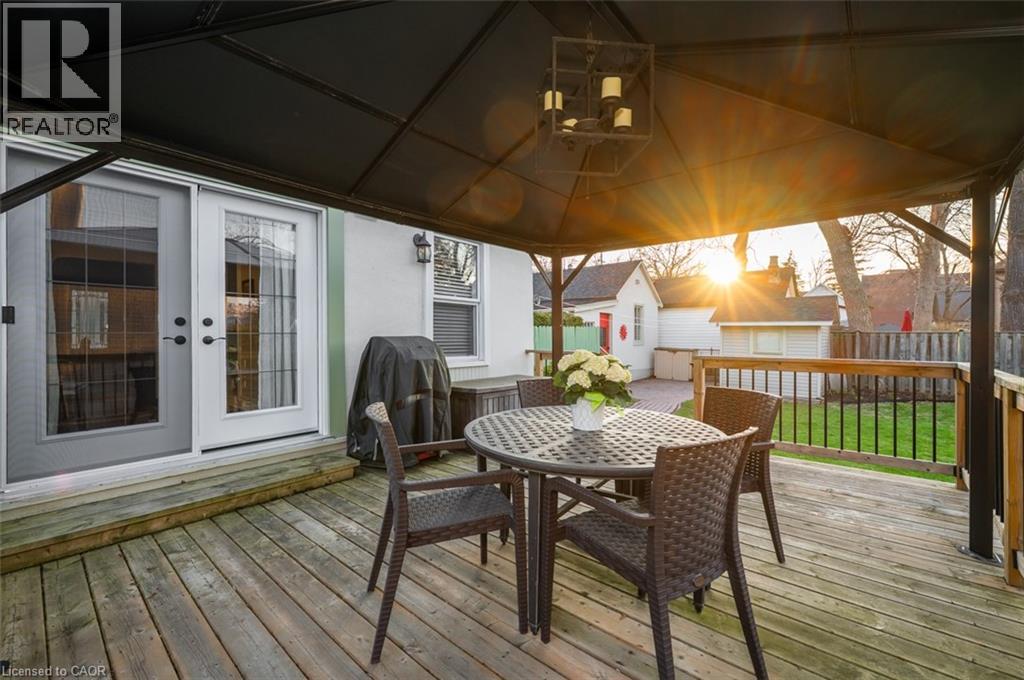 Charming, comfortable, convenient! This well cared for, inviting home, which sits on a large lot just steps from downtown Stoney Creek, provides peace of mind in a quiet neighbourhood. Inside, you'll find a cozy, functional layout with good-sized principal rooms that feels warm and welcoming, while outside the fully fenced yard features plenty of space for gardening, pets, or summer entertaining. The large covered deck adds a second living space for lounging, barbecuing and sharing a meal during the warm spring and summer months. A detached garage and garden shed add valuable storage and flexibility for hobbies or projects. This house can also accommodate parking for up to 4 cars! With easy access to Confederation GO station with train service, the QEW and Red Hill Valley Parkway and close proximity to multiple shopping centres, restaurants, grocery stores, and everyday amenities, this property is ideal for first-time buyers, downsizers, or investors looking to secure a prime Stoney Creek location. NOTABLE UPDATES: 2020- new roof, furnace, A/C and deck. 2021- installed pre-finished hardwood flooring in living room, dining room and den/bedroom. 2022- insulation in attic and bedroom ceiling; 8 new windows (out of 12). 2023- painted outside of house and garage. 2024- new toilet in upstairs bathroom; planted perennial garden at side of house. 2025- new French doors to back deck; Painted all fences and gates around the proper (id:64974)