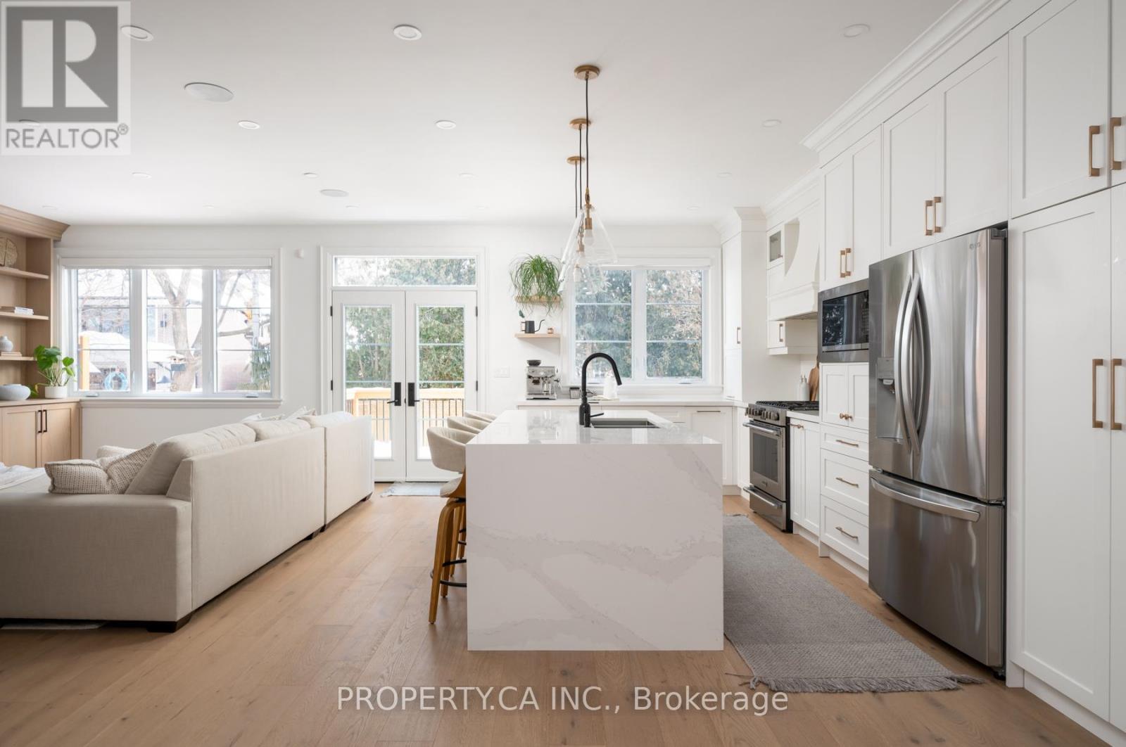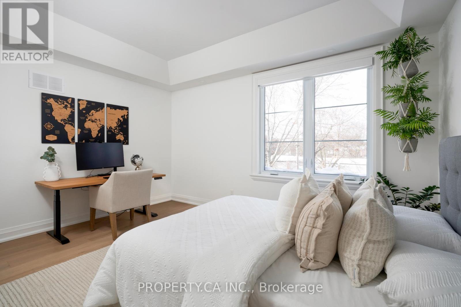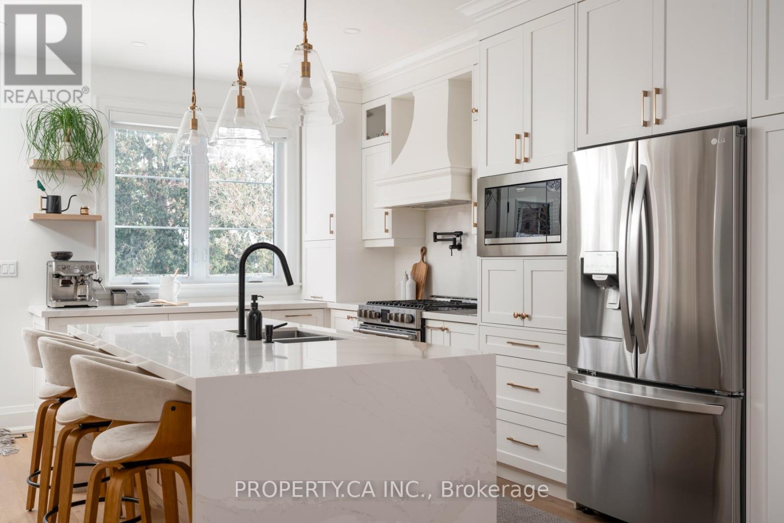 Beautifully finished 4+1 bedroom executive home, built in 2023, located on a quiet, sought-after street in prestigious Parkview Hills. This warm and welcoming residence offers exceptional space, abundant natural light, and an ideal layout for modern family living. The main level features expansive principal rooms and a stunning chef's kitchen with quartz countertops, stainless steel appliances, and a large centre island with breakfast bar, seamlessly connecting to inviting living and dining areas-perfect for everyday comfort and entertaining.The upper level is thoughtfully designed with three additional well-proportioned bedrooms and a spacious primary retreat featuring a walk-in closet and a luxurious 6-piece ensuite with heated floors, creating a private and comfortable space to unwind.The finished lower level provides flexible additional living space with an extra bedroom, ideal for guests, recreation, or a home office, and includes a bathroom with heated floors. Added comfort continues with heated flooring in the mudroom.Outdoors, enjoy a beautifully landscaped backyard with a generous deck, extending the living space for entertaining or relaxing. Situated directly across from the highly regarded Presteign Heights Elementary School, this home enjoys a calm, low-traffic setting in one of Toronto's most close-knit communities. Surrounded by ravines on three sides, Parkview Hills offers quiet, local-only traffic while remaining conveniently connected to city amenities.A turnkey home offering timeless appeal, thoughtful design, and exceptional livability. (id:64974)
