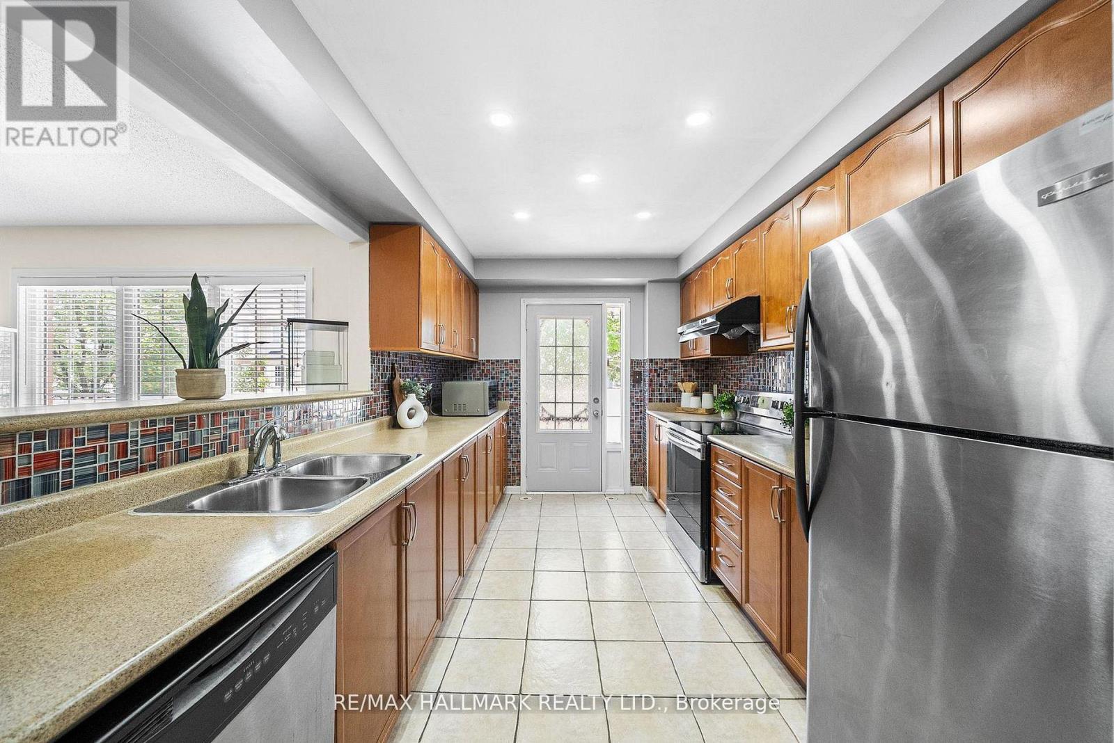 Welcome to 15 Snowgoose Terrace, a beautifully maintained freehold Mattamy-built townhome nestled in the heart of the highly desirable Rouge Park community - with no POTL fees. This bright and spacious home offers functional living across three well-designed levels, featuring a generous living room with pot lights and a large eat-in kitchen complete with a breakfast bar, ample cabinetry, and a walk-out to a private balcony - perfect for morning coffee or evening relaxation. A versatile den highlighted by a skylight provides the ideal space for a home office, reading nook, or can easily be converted into a third bedroom to suit your needs. Pride of ownership is evident throughout, with numerous thoughtful updates including a new roof (2019), new central A/C (2023), updated stove, range hood, and kitchen faucet (2020), as well as a new garage door, front door, and freshly painted exterior front (2023). All faucets throughout the home have been upgraded, and newer laminate flooring on the upper level adds a modern touch. Direct garage access and a well-planned layout combine comfort, functionality, and everyday convenience. Ideally located just steps to TTC, scenic Rouge Park trails, French Immersion schools, shopping, and local amenities, with quick access to Highway 401, U of T Scarborough, Centennial College, the Pan Am Sports Centre, and the Toronto Zoo. Truly move-in ready, this is an exceptional opportunity to own a meticulously cared-for freehold home in one of Scarborough's most vibrant and family-friendly neighbourhoods. (id:64974)