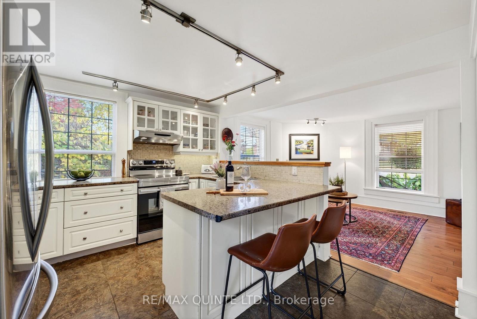 Welcome to 15 Talbot Street ~ a beautifully preserved circa 1870 century home. Full of character and charm, this lovingly maintained century home offers the perfect blend of historic beauty and modern comfort. Ideally situated close to Picton's vibrant downtown, take a stroll to your favourite cafes, boutiques, restaurants, or catch a show at the Regent Theatre - all a short walk from your doorstep. Enter this well appointed home from the full length front porch, framed by lush perennial gardens that bloom from spring to fall. The front door brings you into a classic centre hall plan with hardwood and original wide wood plank flooring throughout. The well designed U-shaped kitchen with walk-in pantry offers plenty of space to prepare your meals while engaging with your family and guests in the adjoining living room. Warm up in this space next to the cozy gas fireplace during those chilly nights. The dining room is where you will enjoy memorable meals, then spread out into the family room for music, games, and movie night fun. A convenient two piece powder room completes this level. The upper level offers a generously sized primary bedroom with two walk in closets, two additional bedrooms and a four piece family bathroom. Extend the seasons with a three season screened-in porch overlooking the lush backyard - perfect for early morning coffees or evening conversations surrounded by nature and privacy. Come discover this excellent opportunity to live, work and play in one of Prince Edward County's coveted communities. BONUS: Grandfathered whole home STA (short term accommodation) license. *Click on the "More Photos" tab on realtor.ca for a cinematic reel* (id:64974)