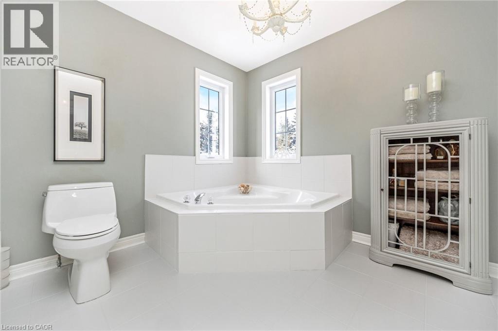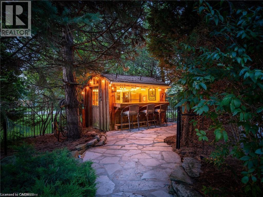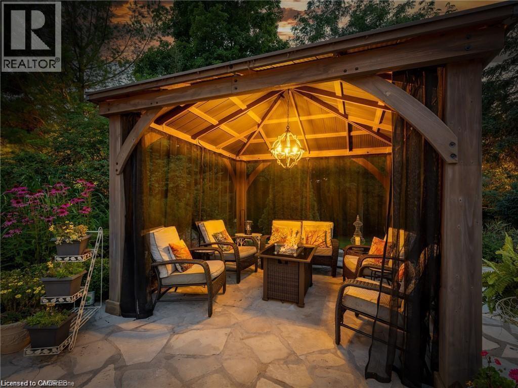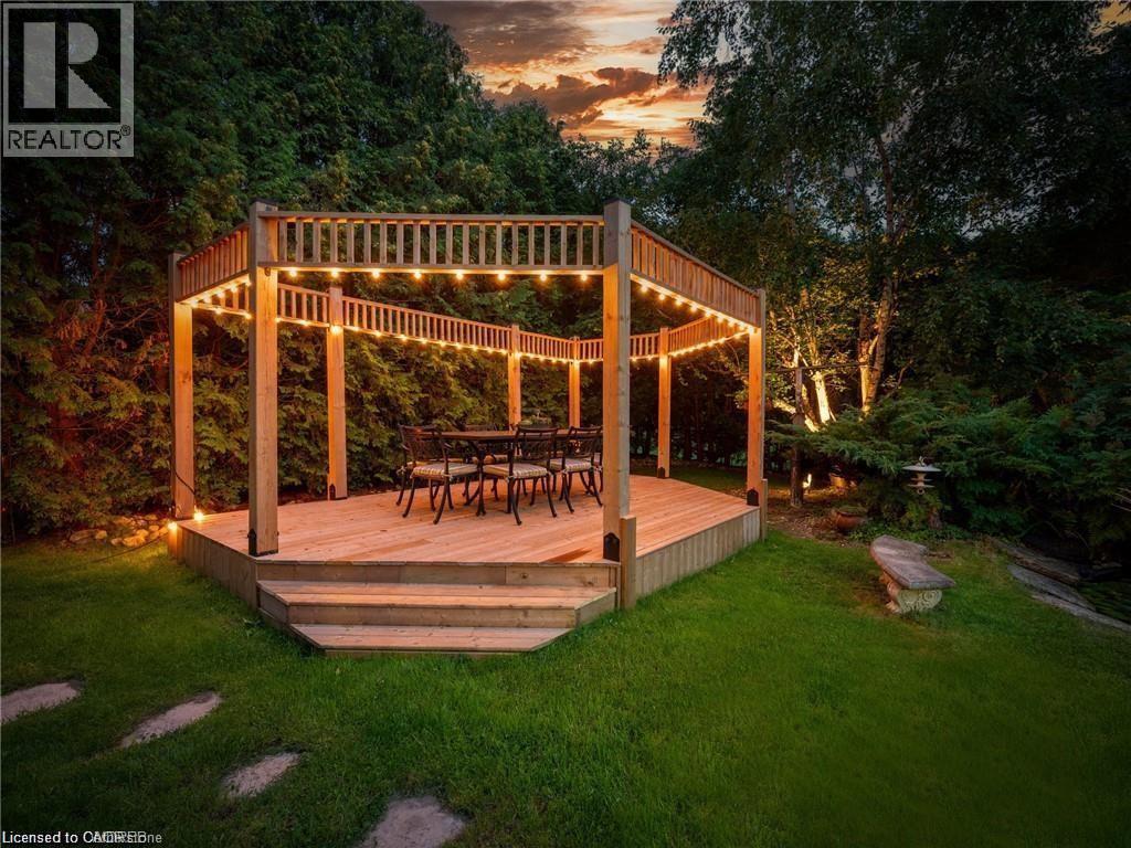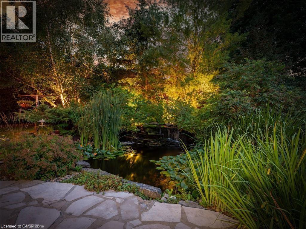 Welcome to this ULTRA-PRIVATE SECRET GARDEN - A Rare Executive Country Estate Property backing onto Blue Springs Golf Club (Home of PGA Canada) w/ the most stunning yard that will rival any luxury resort. This prestigious all-brick home features open concept living + fully finished basement. It is nestled on a stunning 1.38-ACRE LOT (including a beautiful side lot for added privacy) in a quiet enclave of distinguished executive homes. There is a sense of space as you enter the grand foyer w/ its 9' ceilings and curved staircase. The heart of this home is the gourmet EI kitchen which overlooks the WO to the stunning yard and living room w/ vaulted ceiling, fireplace and additional WO to the yard. There is a main level office located off the front entrance and convenient main level laundry w/ tub. The upper floor has 3 generous bedrooms (there were 4 - can easily convert back), one being the primary bedroom with his/her closets and 5-pc ensuite. The basement features an over-sized 4th bedroom, RI for bathroom, a 2nd office, gym, family room and workshop. The dream yard will take your breath away and includes a pavilion for dining al fresco, heated pool, koi pond w/ waterfall, golf-themed bar, screened-in pergola, extensive hardscaping (2000+ SF of flagstone installed on 3 of concrete for stability) and professional low-maintenance landscaping - the ultimate space for entertaining. Additional features: 3-car garage, parking for 10+ in the driveway, garage entry to home, replaced exterior doors, no rentals, energy efficient gas pool heater (2018), pool liner and cover (2025), furnace (2017), well pump (2024); water softener, UV system, HWT all owned; all windows replaced and home re-insulated, extensive UG sprinklers (including side lot), 12 x 16 double-sided pine Mennonite-built shed. Peaceful location close to golf, trails, lake, 15 minutes to 401. This is your opportunity to finally make a luxury move to the country ... let's get you in there for summer! (id:64974)