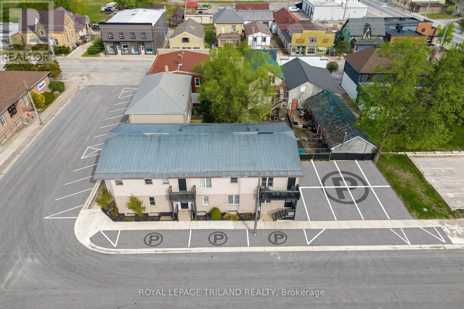 ATTENTION INVESTORS! Exceptionally easy to manage 6-Cap 8-Plex opportunity generating approximately $120,000 in annual net income: a true Huron County money maker just minutes from Grand Bend, Exeter, and Bayfield, and one of the most effortlessly run rental properties along Ontario's West Coast! This 9-unit multiplex consists of 8 residential apartments plus a superintendent's workshop unit with plumbing, all in excellent condition and fully functional in terms of fixtures and chattel. Currently, 7 units are occupied by long-standing, happy tenants, with one vacant 2-bedroom unit ideal for owner occupancy or immediate lease-up. In total, the building offers six 2-bedroom units, two 1-bedroom units, plus the workshop unit, along with multiple storage rooms and a dedicated meter room. All nine units are separately metered for hydro, simplifying management and expenses. The thoughtfully designed layout includes a 1-bed and 2-bed unit on the ground level, a 1-bed and two 2-bed units on the main level, and three 2-bed units with balconies on the upper level. Every unit is equipped with owned appliances, including in-suite washers & dryers, a fan-favorite feature among tenants. Two large owned hot water heaters are also included. Tenants pay hydro, and operating costs are remarkably low at approximately $15,000-$17,000 annually, resulting in strong and reliable net income for an 8-plex plus workshop unit. All fire code requirements are up to date, the metal roof and insulbrick/vinyl exterior are in excellent condition, and both landscaping and maintenance are refreshingly simple. All debentures have been paid! Located in the heart of Zurich, Ontario, just five minutes from beautiful Lake Huron beaches, this property represents incredible value when compared to today's replacement construction costs. As a turnkey, mindless money-maker and a rare 6-cap income property that stands out among recent multi-plex sales in Huron County, this opportunity will not last long. (id:64974)