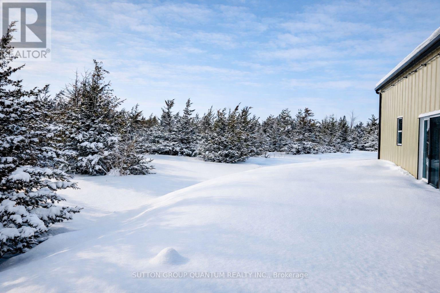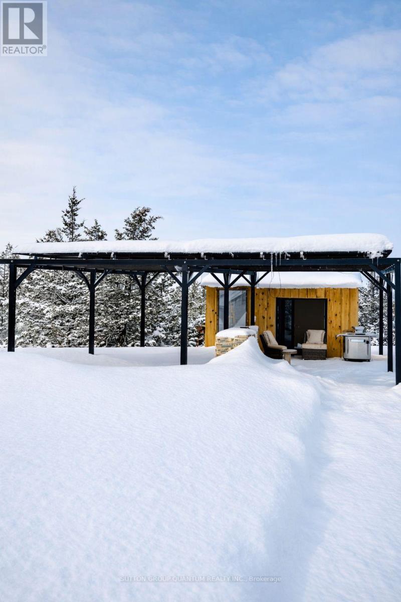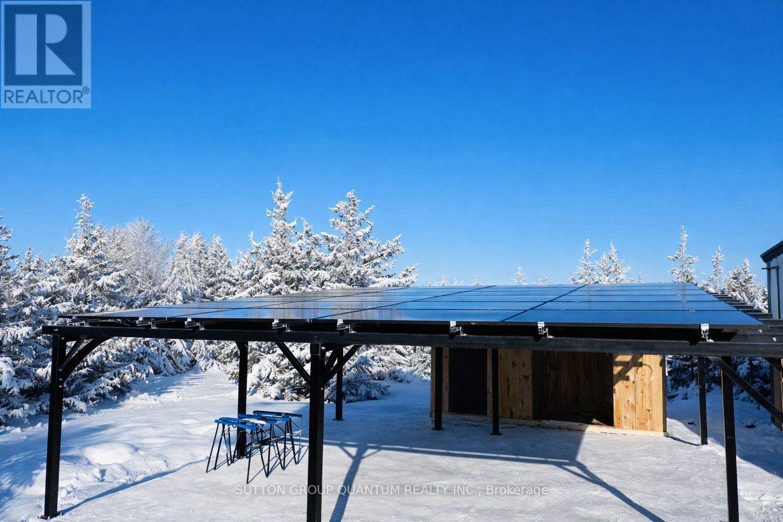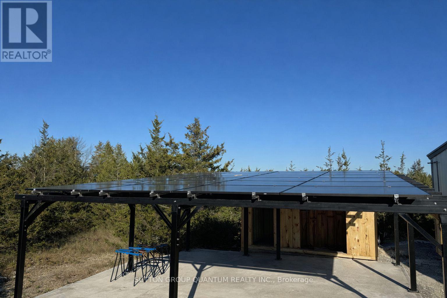 Set on 1.23 private acres in Trent Hills, this custom-built steel barndominium delivers a rare combination of structural strength, energy efficiency, and modern rural living. Purposefully designed for durability and long-term performance, the home integrates high-efficiency building systems with clean architectural lines and expansive interior space-offering a lifestyle centered on independence, comfort, and low operating costs. The 2,000 sq. ft. layout features a dramatic open-concept great room with a 17' peak ceiling, seamlessly connecting the kitchen, dining, and living areas. Large windows and sliding doors frame views of the surrounding landscape and bring natural light into the main living space. Three bedrooms, two full bathrooms, and a dedicated office provide flexibility for families, remote professionals, or guests. The primary suite includes a walk-in closet and private ensuite, while additional storage has been thoughtfully incorporated throughout. Built on an insulated slab foundation with in-floor heating, the home is spray foam insulated for year-round efficiency and comfort. Exterior finishes include durable pre-finished steel siding with contrasting trim and stone accents, reinforcing the property's low-maintenance design. Energy independence is a defining feature. A 12.9 kW solar array, supported by dual 14.3 kWh batteries and an 18 kW inverter, provides substantial on-site power generation, with infrastructure in place for future expansion. Rough-ins for propane appliances, heat pumps, ductless systems, and water catchment further enhance long-term adaptability. An engineered solar-ready carport and equipment shed complement the home's forward-thinking design. For buyers seeking a modern, energy-conscious residence with rural privacy and infrastructure already in place, this property represents a compelling and highly functional opportunity. (id:64974)