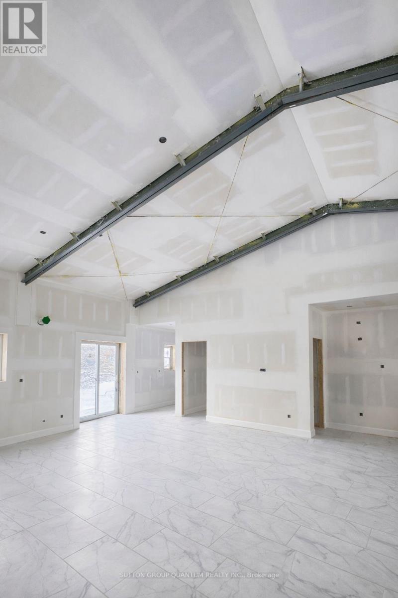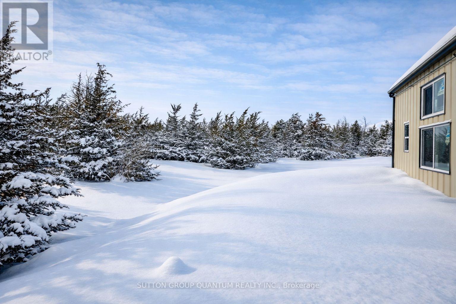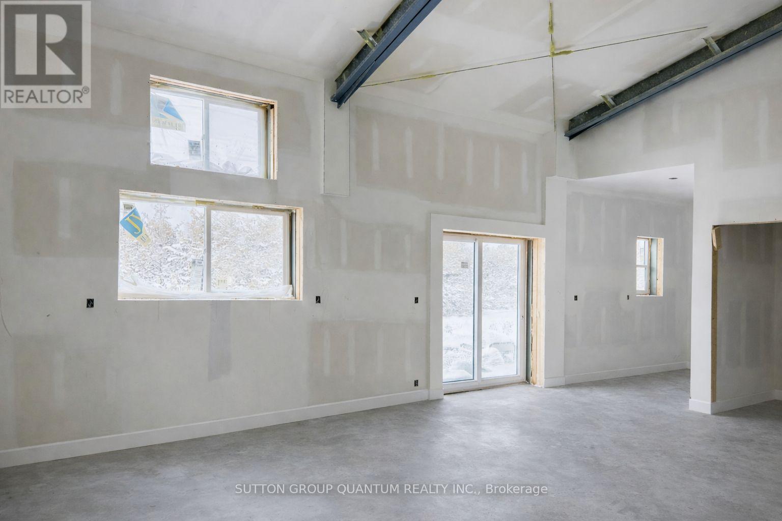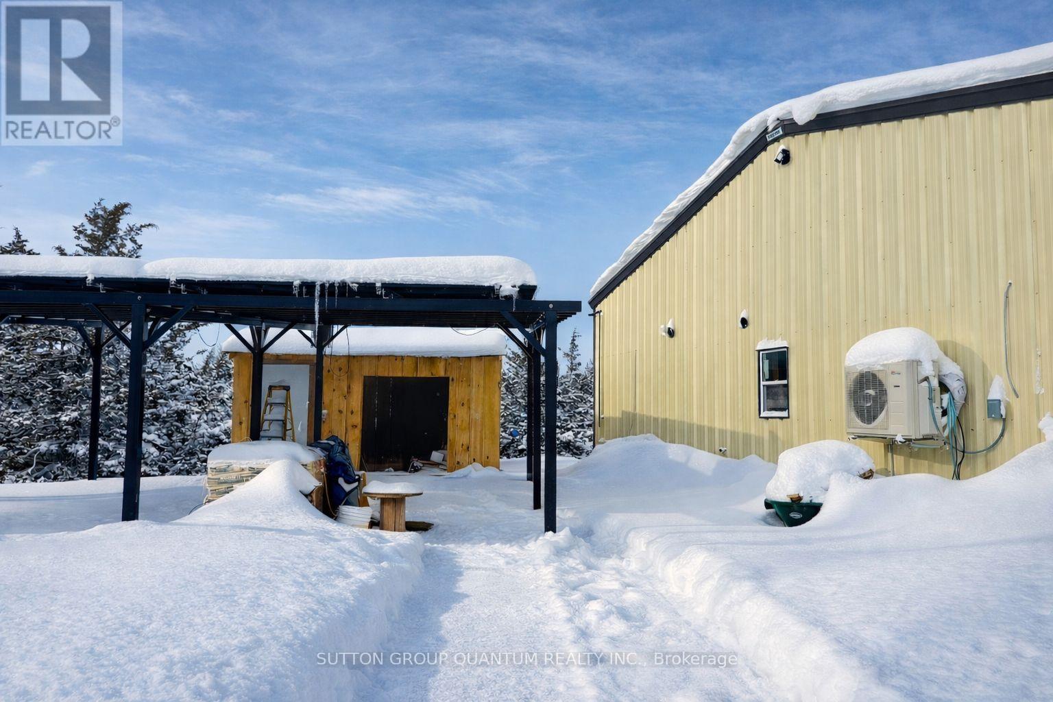 Set on 1.23 private acres in Trent Hills, this custom-built steel barndominium delivers a rare combination of structural strength, energy efficiency, and modern rural living. Purposefully designed for durability and long-term performance, the home integrates high-efficiency building systems with clean architectural lines and expansive interior space-offering a lifestyle centered on independence, comfort, and low operating costs. The 2,000 sq. ft. layout features a dramatic open-concept great room with a 17' peak ceiling, seamlessly connecting the kitchen, dining, and living areas. Large windows and sliding doors frame views of the surrounding landscape and bring natural light into the main living space. Three bedrooms, two full bathrooms, and a dedicated office provide flexibility for families, remote professionals, or guests. The primary suite includes a walk-in closet and private ensuite, while additional storage has been thoughtfully incorporated throughout. Built on an insulated slab foundation with in-floor heating, the home is spray foam insulated for year-round efficiency and comfort. Exterior finishes include durable pre-finished steel siding with contrasting trim and stone accents, reinforcing the property's low-maintenance design. Energy independence is a defining feature. A 12.9 kW solar array, supported by dual 14.3 kWh batteries and an 18 kW inverter, provides substantial on-site power generation, with infrastructure in place for future expansion. Rough-ins for propane appliances, heat pumps, ductless systems, and water catchment further enhance long-term adaptability. An engineered solar-ready carport and equipment shed complement the home's forward-thinking design. For buyers seeking a modern, energy-conscious residence with rural privacy and infrastructure already in place, this property represents a compelling and highly functional opportunity. (id:64974)