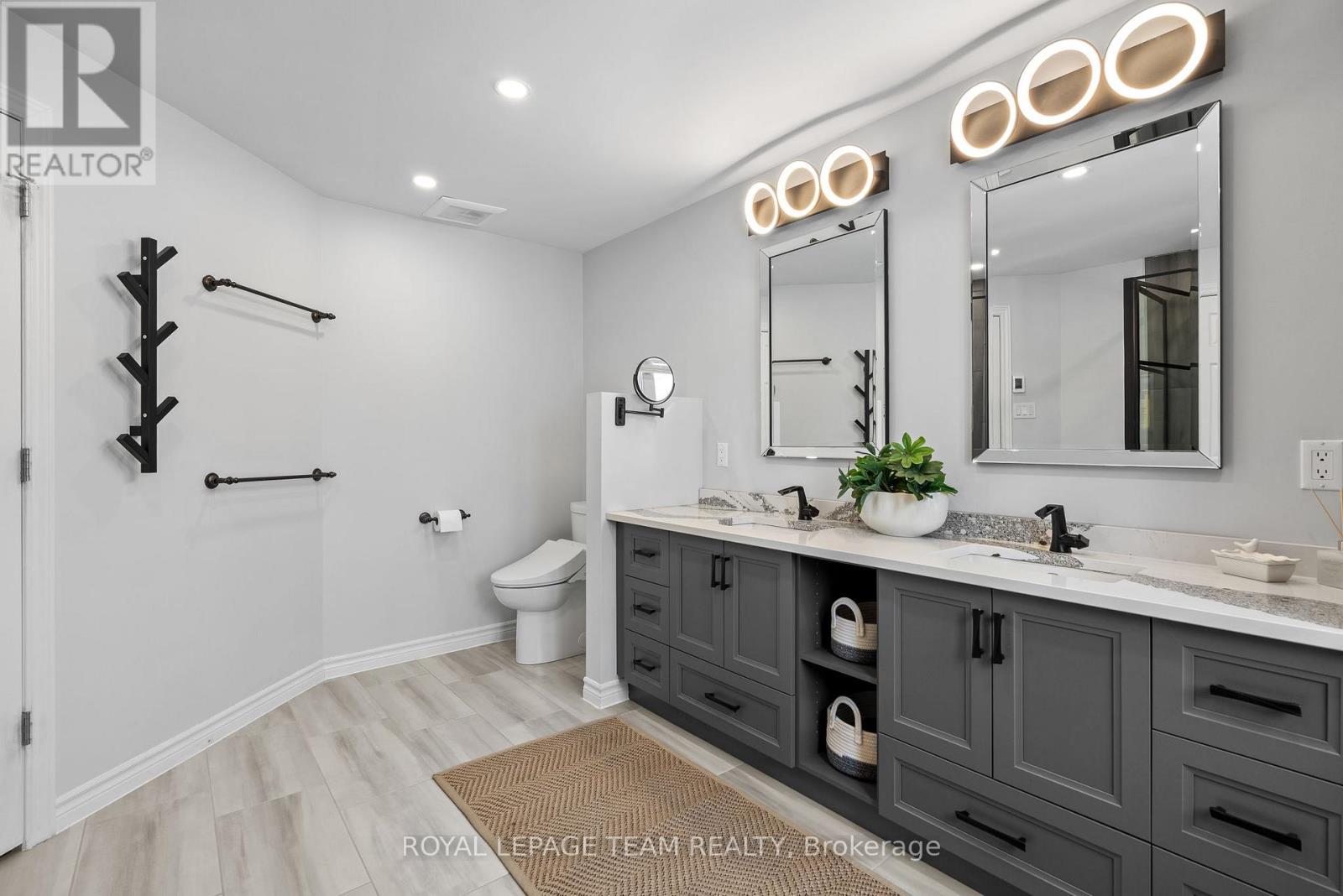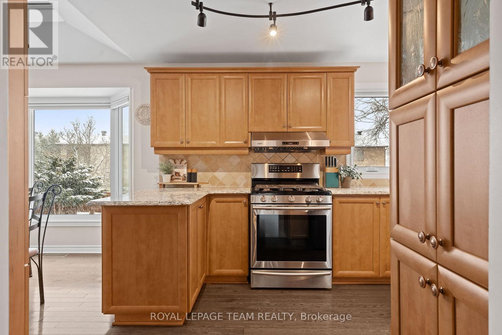 An exceptional Minto "Princeton" offering over 3,500 sq ft of finished space, set on an oversized lot in one of Barrhaven's most sought-after, established family communities. This spacious 2-storey home offers 4 bedrooms above grade plus formal living, dining, and family rooms, delivering the scale and functionality today's families need, just steps to transit, amenities, and top-rated schools. Thoughtfully updated to blend modern comfort with its timeless design, the home showcases a sunken living room, elegant formal dining room, and a family room with cozy gas fireplace overlooking the fully fenced backyard. The renovated kitchen is anchored by quartz countertops, a gas range, and an inviting eat-in area. Hardwood floors, updated across both levels and the main staircase, rich in a gleaming medium-tone finish, lead up to an expansive primary retreat with renovated 4 piece ensuite (2021) complete with in floor heating. Three additional well-sized bedrooms and a main bath complete the upper level. Downstairs, a finished basement with ample storage space complete this family friendly home. Major updates provide peace of mind, including (2023) Additional attic Insulation, (2022) Gazebo, (2019) Fridge, (2019) Dishwasher, (2016) Hot Water Heater, (2005) Roof and more! Outdoors, enjoy professionally landscaped grounds with garden beds, a stamped concrete patio, composite decking, and spacious gazebo perfect for entertaining. Ample parking on the stamped concrete driveway plus a double car garage with convenient inside entry to a spacious mud/laundry room. A rare offering combining size, location, and thoughtful upgrades. Turn-key, meticulously maintained, and ready to impress. Min 48 hr Irrev. (id:64974)