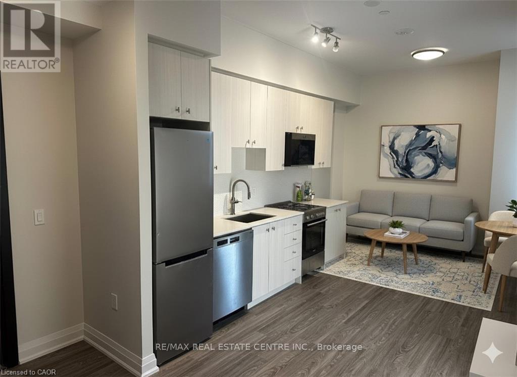 Welcome to Unit 318 at Station Park Union Towers 2 - a modern 1 Bed + Den suite offering 535 sq. ft. of well-designed living space with premium finishes. Features include a sleek kitchen with stainless steel appliances and tall cabinets, 9-ft ceilings, pot lights, and a private north-facing balcony. Enjoy 1 underground parking space plus access to top-tier amenities: a dog wash station, parcel room, bowling alley, lounge, swim spa, fitness and yoga studios, outdoor terrace with cabanas, BBQs, and firepit. Located in Kitchener's Innovation District, steps from Google, LRT, the future Transit Hub, McMaster Medical School, UW Pharmacy, shops, and restaurants. Stylish urban living with unbeatable convenience! Photos have been virtually staged. (id:64974)