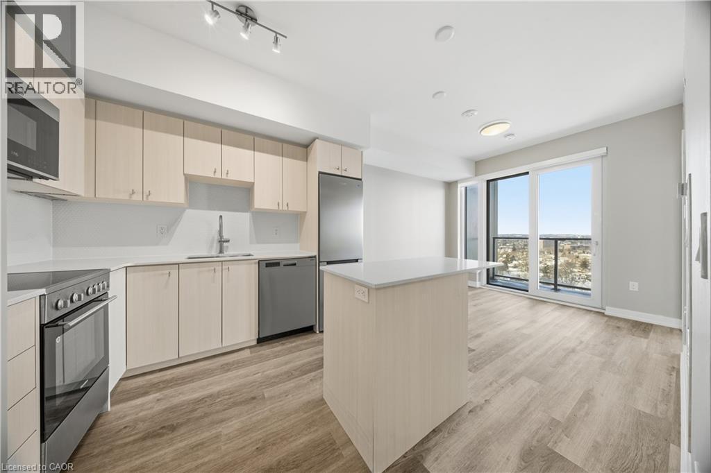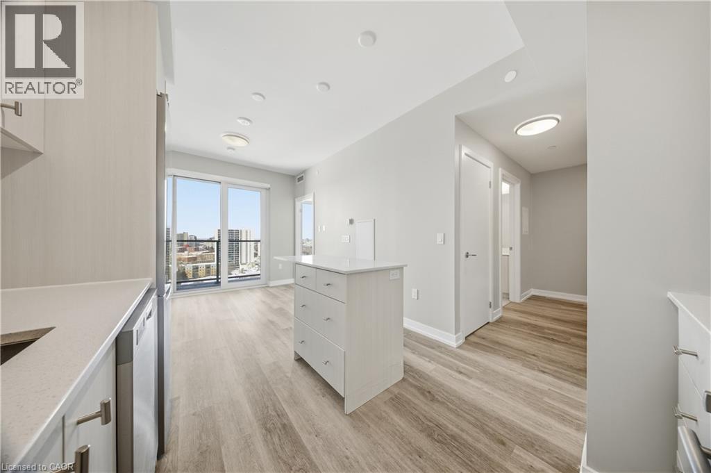 Located in the heart of Kitchener's Innovation District, this modern 1 bedroom plus den suite offers an ideal blend of urban convenience and upscale living. The home features a smart, carpet-free layout highlighted by upgraded vinyl plank flooring throughout, creating a clean and contemporary feel. The kitchen is outfitted with brand-new stainless steel appliances, a stylish breakfast island, and plenty of functional space, while a stackable washer and dryer are included for everyday ease. Step outside to enjoy your own private 45 sq. ft. balcony-perfect for relaxing or entertaining. Transit access couldn't be easier, with the LRT right outside the building, connecting you seamlessly to both Kitchener and Waterloo. The University of Waterloo and McMaster's School of Medicine are each reachable in approximately 15 minutes by transit, and major tech employers such as Google are just moments away, making this an exceptional location for both professionals and students. As an added bonus, this unit comes with an AIRBNB licence! Residents of Union Towers at Station Park enjoy access to an impressive collection of resort-style amenities rarely found in local developments. These include a two-lane bowling alley with lounge seating, an elegant social lounge complete with bar, pool table, and foosball, a private hydropool swim spa with hot tub, and multiple fitness spaces featuring gym equipment, yoga and Pilates studios, and a dedicated Peloton room. Additional conveniences include a dog wash and pet spa, a beautifully landscaped outdoor terrace with cabana seating, and high-speed BELL internet included for residents. (id:64974)