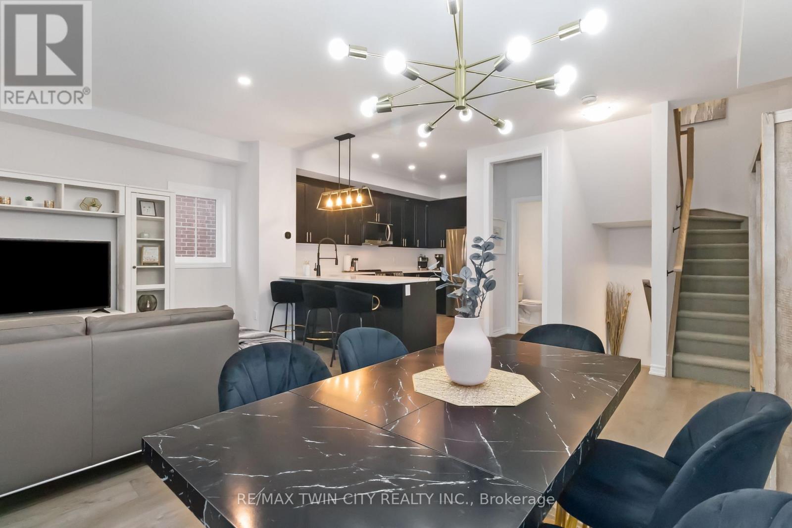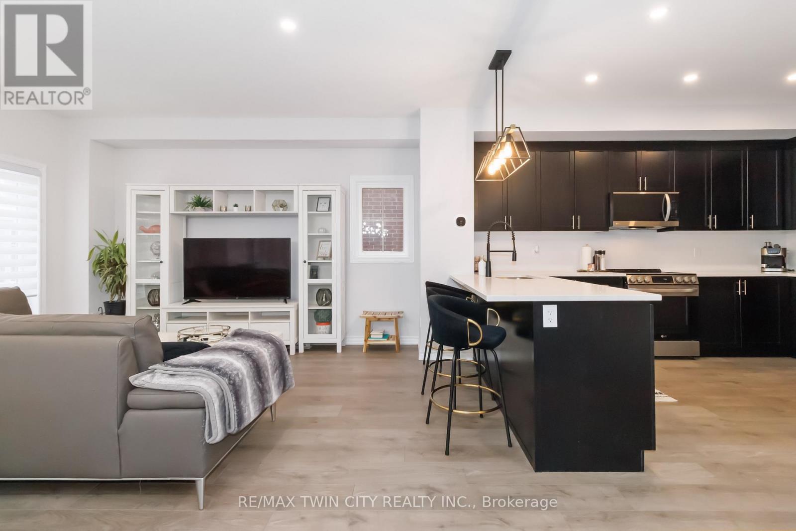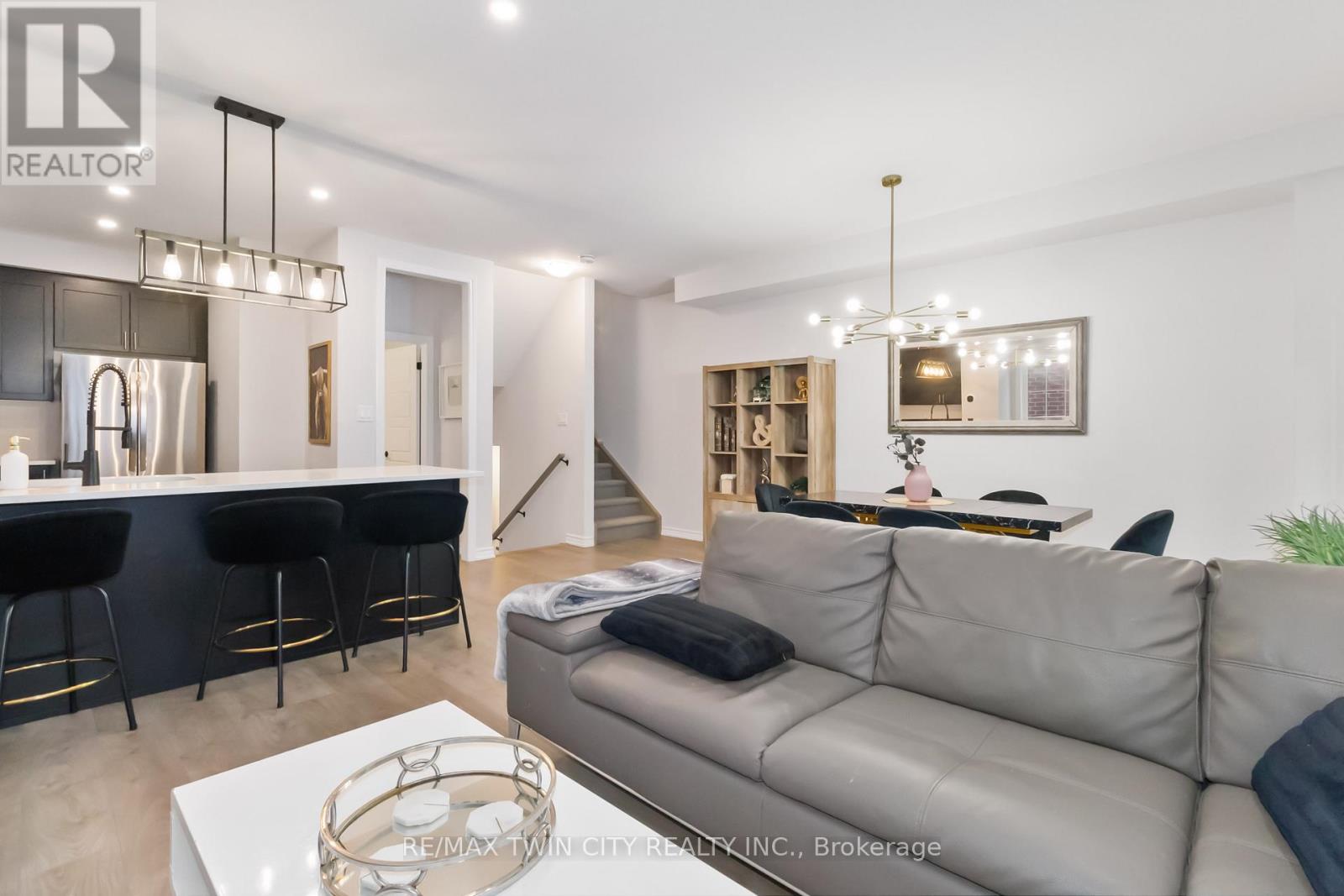 Welcome to this beautifully upgraded end-unit townhome in Brantford's highly sought-after North End. Offering one of the largest floor plans in the complex, this home features a bright foyer leading to a spacious open-concept main level with seamless living, dining, and kitchen areas-perfect for everyday living and entertaining. The modern kitchen boasts granite countertops, stainless steel appliances, and a large peninsula with seating. Step out through the garden door to a fully covered balcony, ideal for year-round enjoyment. A convenient powder room completes the main floor. Upstairs, you'll find three generous bedrooms, including a primary suite with walk-in closet and private ensuite, plus an additional full bath and second-floor laundry. Ideally located close to schools, parks, shopping, and amenities, with a new park currently being developed behind the property. A move-in-ready home offering space, comfort, and an excellent North End location. (id:64974)