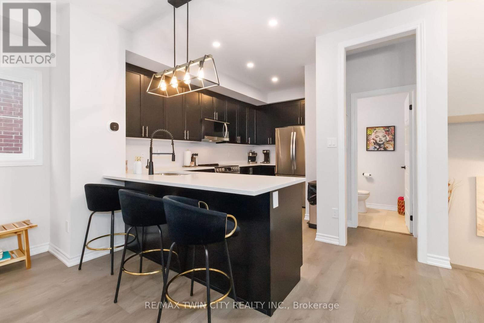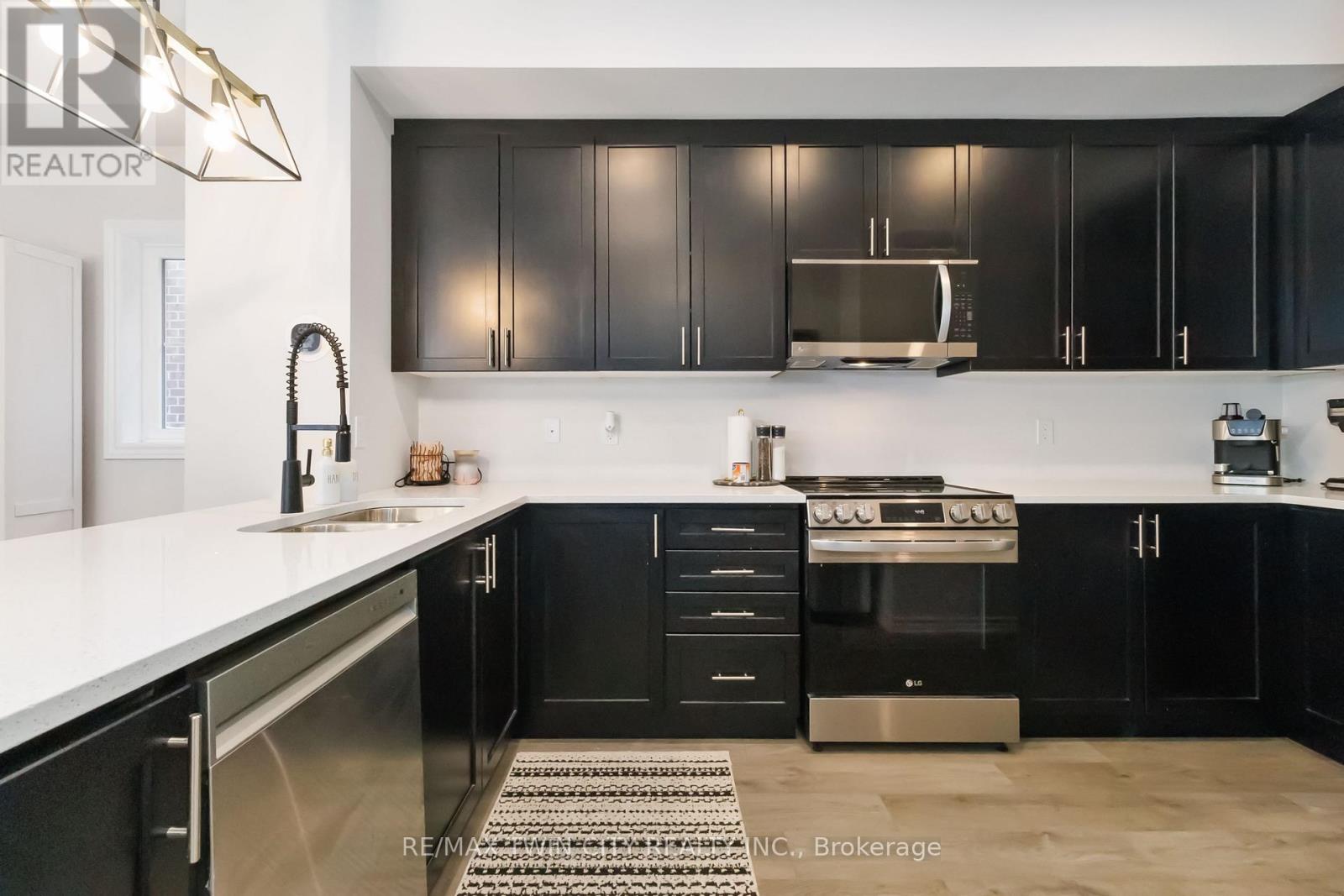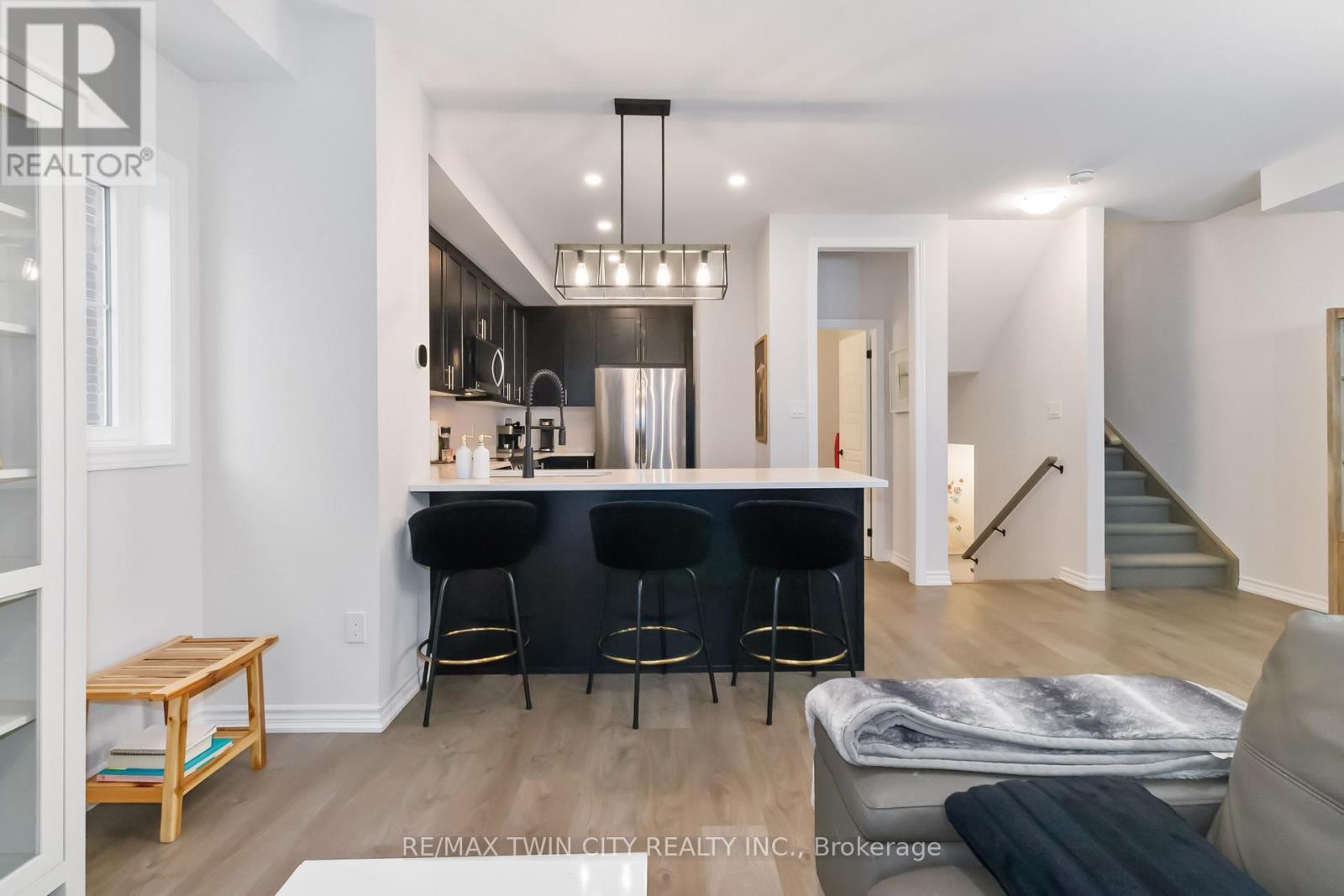 Welcome to this beautifully upgraded end-unit townhome in Brantford's highly sought-after North End. Offering one of the largest floor plans in the complex, this home features a bright foyer leading to a spacious open-concept main level with seamless living, dining, and kitchen areas-perfect for everyday living and entertaining. The modern kitchen boasts granite countertops, stainless steel appliances, and a large peninsula with seating. Step out through the garden door to a fully covered balcony, ideal for year-round enjoyment. A convenient powder room completes the main floor. Upstairs, you'll find three generous bedrooms, including a primary suite with walk-in closet and private ensuite, plus an additional full bath and second-floor laundry. Ideally located close to schools, parks, shopping, and amenities, with a new park currently being developed behind the property. A move-in-ready home offering space, comfort, and an excellent North End location. (id:64974)
