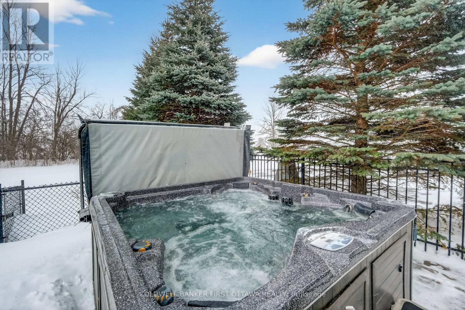 Step into luxury with this award-winning Luxart Homes bungalow, located in the highly sought-after community of Ashton Creek. Just 10 minutes from both Ottawa, Carleton Place & Dwyer Hill, this multi-generational masterpiece offers a rare blend of rural tranquility and urban convenience. Situated on a private 1.4-acre grounds with picturesque weeping willows and mature tree-lined boundaries, the property offers the feel of an instant escape.There are over 2,200 square feet of bright living space on the main level, where gorgeous hardwood floors flow seamlessly through an open concept layout. Expansive windows fill the home with natural light, highlighting architectural details like the stunning tray ceilings in the dining room and living area. The chef-inspired kitchen is a masterpiece of function and style, equipped with custom built-ins, innovative soft close features and premium finishes. Relax by the gas fireplace in the living room or head to the primary suite, which offers direct access to the deck - perfect for enjoying a peaceful morning coffee. Spa-like ensuite and secondary bathrooms further enhance the experience with heated floors for ultimate comfort.The lower level expands your possibilities with a fully furnished apartment consisting of two well-furnished bedrooms, one with a 4pce ensuite. With its own gas fireplace, a separate entrance through the garage, and a walkout to the patio, it's ideal for extended family or guests. Outside, your private oasis waits. Relax in the hot tub for a night of stargazing to loosen up tired muscles, or take a refreshing dip in the stunning pool.When you're not enjoying your own private retreat, take a stroll down to the Ashton Brew Pub for an authentic pub ale or explore the treasures of local artists nearby. With every detail meticulously crafted to prevail, this isn't just a house-it's a home you'll never want to leave. (id:64974)