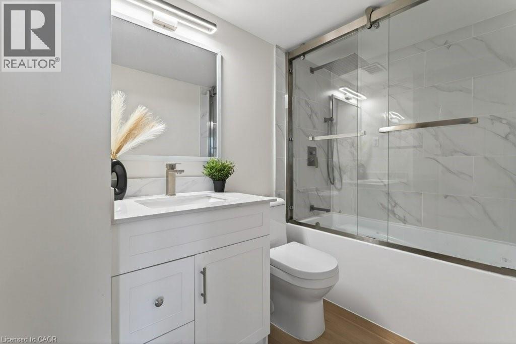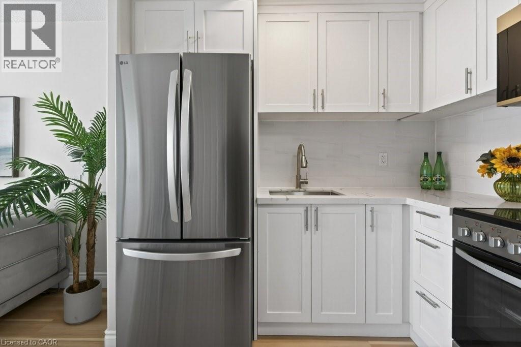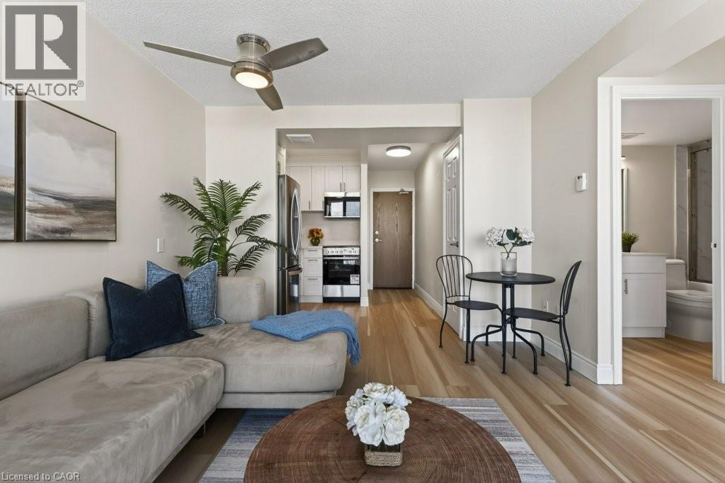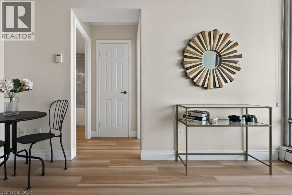 Welcome to this beautifully renovated one bedroom, one bathroom condominium unit at The Olympia, a modern urban living space in the heart of the city. This contemporary unit offers a perfect blend of comfort, style and functionality, making it an ideal choice for young professionals, couples, or anyone looking to experience a convenient downtown lifestyle. This unit has undergone extensive renovations offering a fresh and clean environment. Updated flooring, kitchen, appliances, washroom, lighting and radiators have all been thoughtfully chosen to create a warm, inviting space. Large windows flood the unit with natural light and provide a fantastic view of the city and lake beyond. The Olympia has also undergone a fresh renovation elevating the lobby and common areas. Residents enjoy access to a range of amenities designed to enhance their living experience, including secure entry, on-site laundry facilities, indoor swimming pool, gym, sauna, steam room, rooftop patio, squash courts, party room and billiards room. Situated in the vibrant Corktown neighbourhood, this condo offers a perfect balance of tranquility and convenience. The neighbourhood offers easy access to Go Transit, popular restaurants and pubs at Young and Augusta, as well as access to shopping, St. Joe's hospital, medical offices and hiking and biking along the Escarpment. Whether you're a first-time buyer or looking to downsize, this unit offers a fantastic combination of style, convenience and value. (id:64974)
