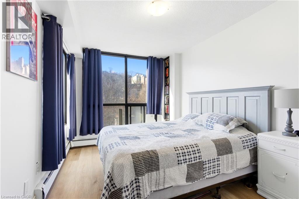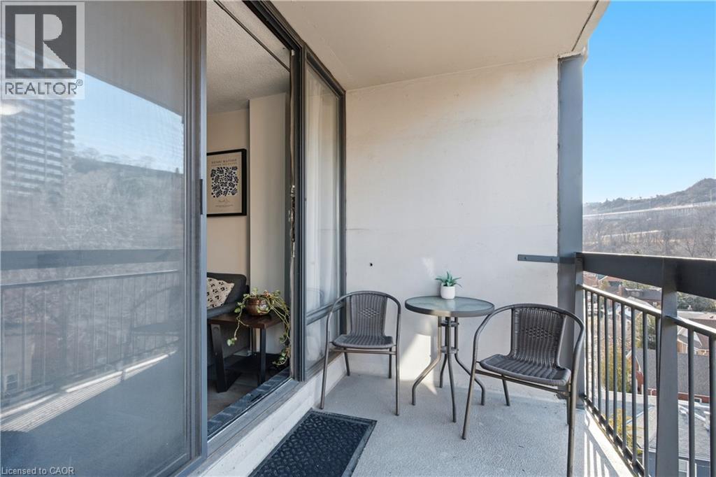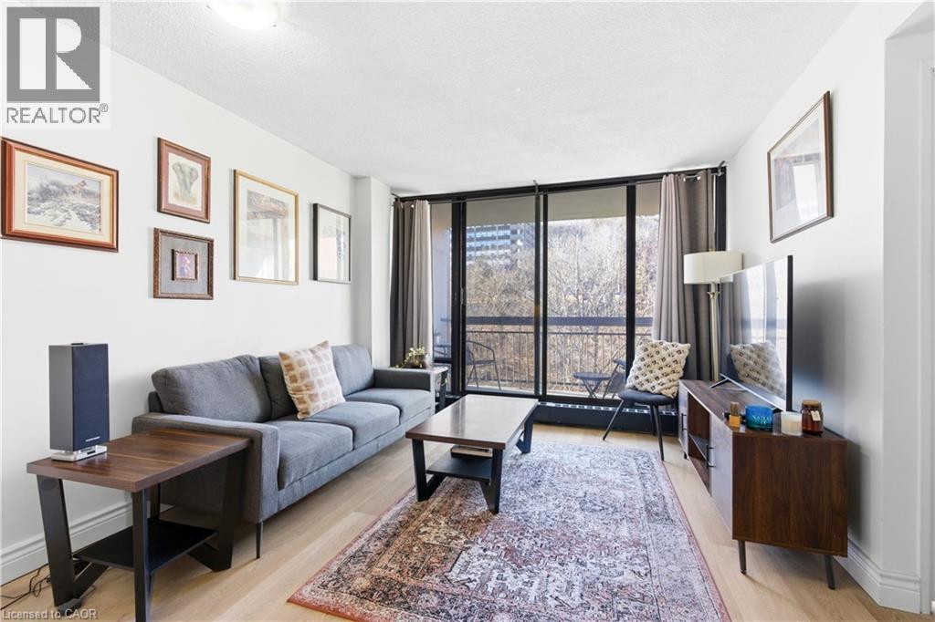 Welcome to urban living in the heart of vibrant Corktown! This well-located condo offers the perfect blend of city convenience and natural surroundings. Enjoy being just steps to the GO Station, popular pubs and restaurants, scenic hiking and biking trails, St. Joseph’s Hospital, and all the amenities that make this neighbourhood so desirable. Residents enjoy access to an impressive selection of building amenities, including an indoor pool, steam sauna, fully equipped fitness centre, squash court, billiards room, party room, on-site convenience store, and a recently upgraded laundry facility—everything you need right at your doorstep. The suite features a private balcony with peaceful escarpment views, providing the perfect spot to unwind after a busy day. The maintenance fee includes heat, hydro, water, exterior maintenance, and building insurance, offering excellent value and worry-free living. Underground parking is available for rent at $110/month. An ideal opportunity for first-time buyers, downsizers, or investors looking for a central location with outstanding amenities and easy access to transit, hospitals, parks, and downtown Hamilton. (id:64974)