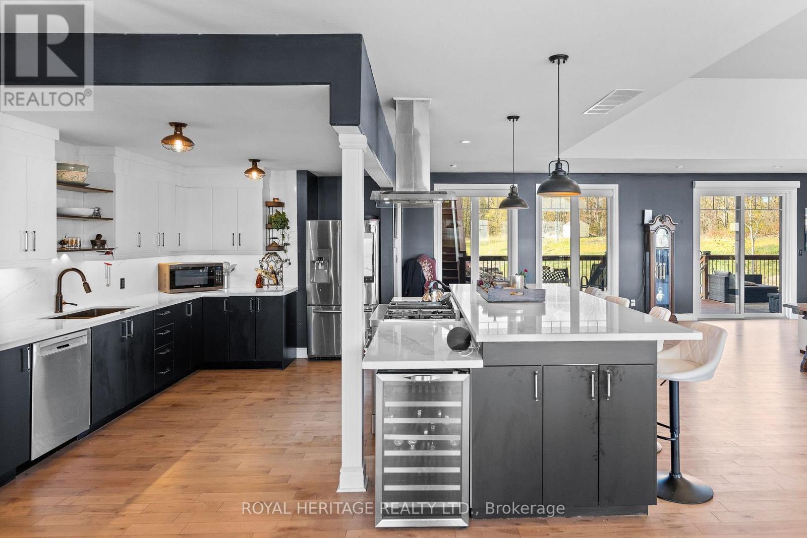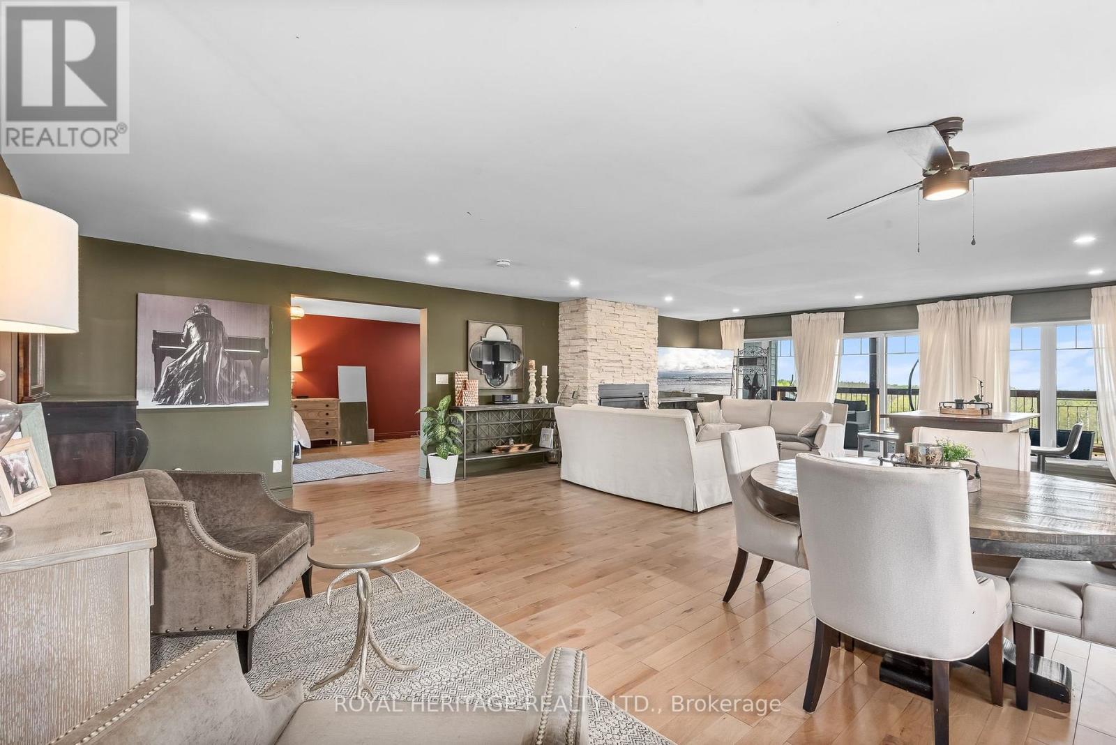 Welcome to 150 Long Reach Road-a rare opportunity to own a newly built (2024) country estate on 31 acres of unspoiled land, offering unmatched privacy, breathtaking hilltop lake views, and a lifestyle immersed in nature just minutes to Highway 401, downtown Brighton, and Presqu'ile Provincial Park. This home is thoughtfully configured with a 3-bedroom, 3-bath main home plus a fully self-contained legal 2-bedroom, 2-bath apartment, creating excellent flexibility for income potential, multi-generational living, guests, or a private workspace. Throughout the home, attention to detail is evident, granite stone countertops (including African Quartz in the main kitchen), Lutron smart lighting and blinds, upgraded trim, and a heated three-car garage. Multiple living spaces allow the home to function seamlessly for everyday life, hosting, or extended family arrangements. Engineered for peace of mind and year-round comfort, the property is exceptionally well equipped with robust infrastructure, backup power, and independent water systems. Built to A4 compliance (builder-supervised), representing an approximately $100,000 investment in a high-efficiency envelope for lower energy demand and year-round comfort. A4 insulation keeps the home efficient and comfortable in all seasons. Outdoor living is equally impressive, with nearly 3,000 sq. ft. of covered deck and concrete patio space framed by sweeping views, plus walking trails extending directly into the forested acreage. Recent improvements include a new recycled asphalt (RAP) driveway and stone patio upgrades, representing approximately $75,000 in recent investment to enhance year-round access and outdoor enjoyment. Security monitoring adds an additional layer of confidence. Whether envisioned as a luxury country residence with built-in income potential, a multi-generational home, or a private retreat, 150 Long Reach Road delivers elevated living, long-term resilience, and rare versatility. (id:64974)