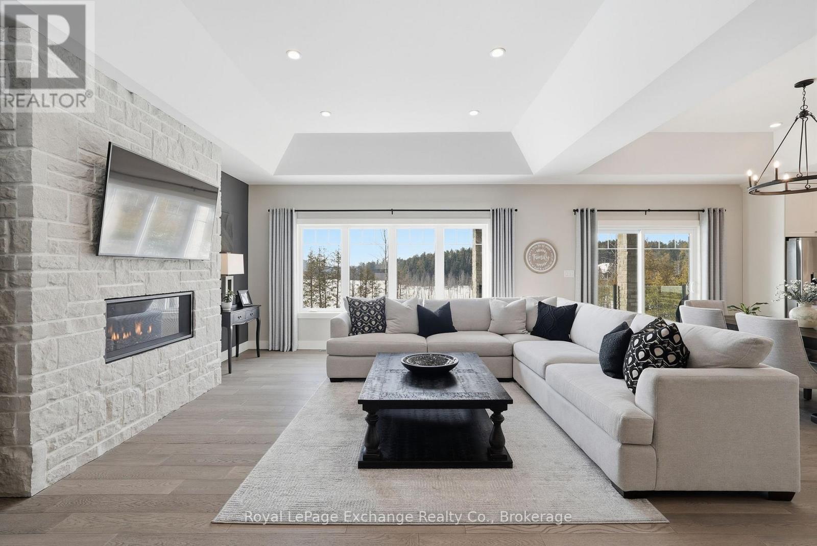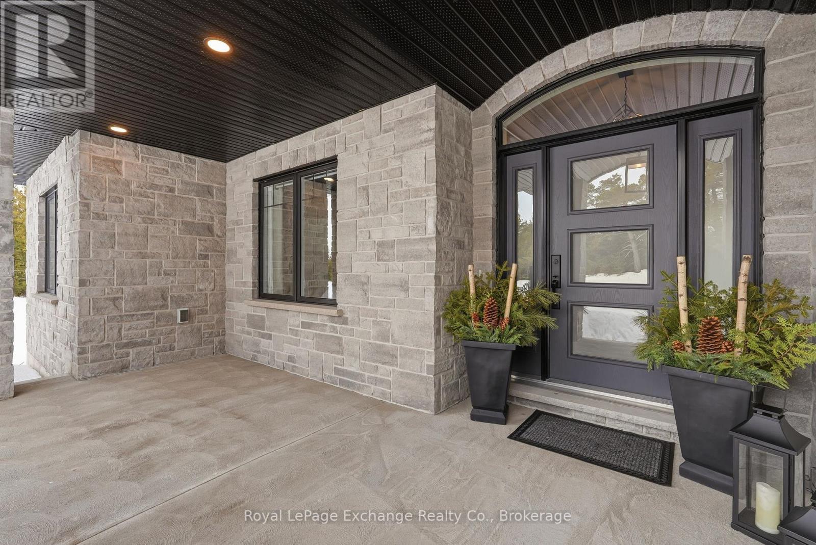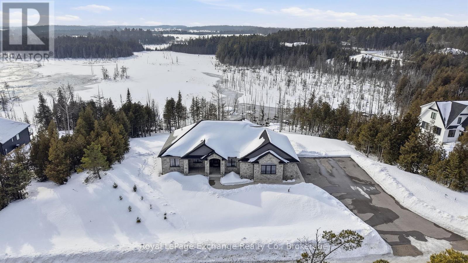 Hidden amongst rolling forest, serene waterways, and winding nature trails, this exclusive country community is one of Grey County's best-kept secrets. Residents enjoy access to recreational lakes for swimming, kayaking, and fishing, along with scenic walking trails and a welcoming neighbourhood atmosphere where nature is part of everyday life. Here, evenings are spent watching the sunset over the water while privacy comes naturally on estate-sized lots - all just a short drive from the amenities of Hanover and Durham. Perfectly positioned on a 2.8-acre waterfront lot, this stunning custom-built bungalow offers over 4,200 sq ft of finished living space designed to embrace both the landscape and the lifestyle. The home's impressive full-stone exterior, soaring 10-foot ceilings, and expansive windows create a bright, elegant interior where natural views become part of every room. At the heart of the home, a gourmet kitchen with custom cabinetry, stone countertops, premium appliances, and a walk-in pantry opens seamlessly to the dining area and great room, where a striking stone fireplace anchors the space. Step out onto the covered deck overlooking the water and forest - the perfect place for morning coffee, sunset dinners, or simply relaxing in the peaceful surroundings. The main floor features three spacious bedrooms, including a serene primary retreat with a luxury ensuite, along with a dedicated home office and convenient main-floor laundry. Downstairs, the fully finished walk-out lower level adds exceptional versatility with heated floors throughout, additional bedrooms, a full bathroom, ample storage, and excellent in-law or guest suite potential. Working remote is effortless with Ehtel fibre internet with wired ethernet throughout. Also included is a full water treatment system, high-efficiency combi-boiler, and an oversized double garage with Trusscore paneling. Luxury, nature, privacy, and community - the lifestyle that awaits at 150 Louise Creek Crescent. (id:64974)