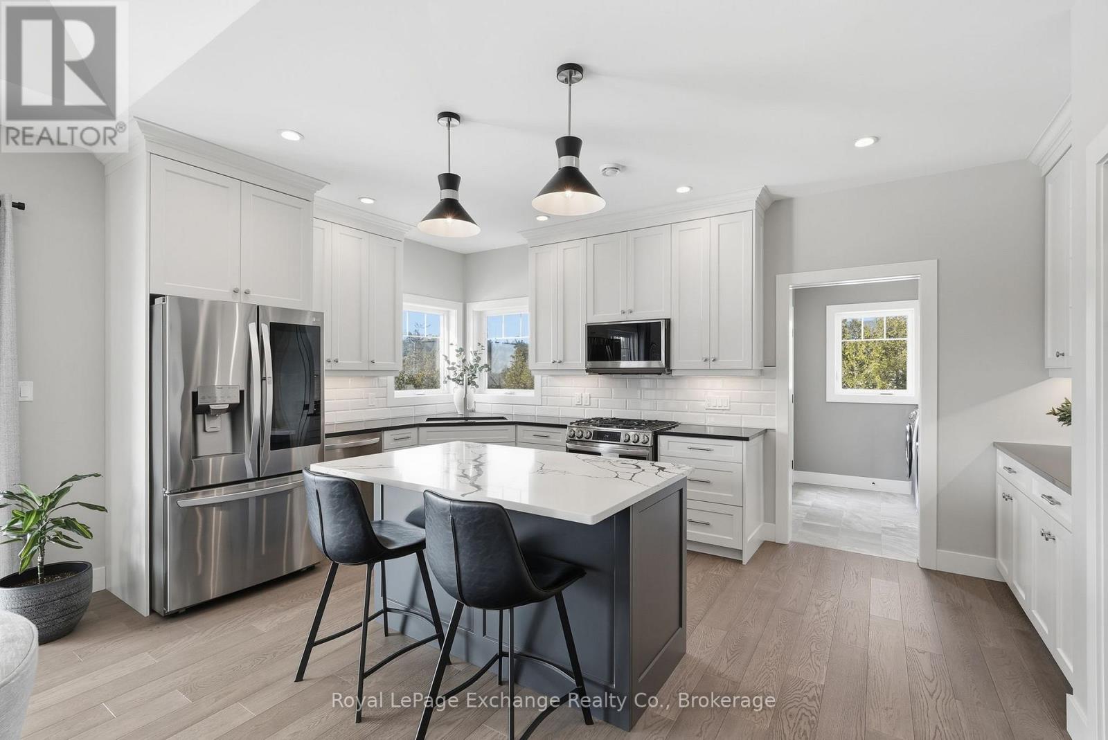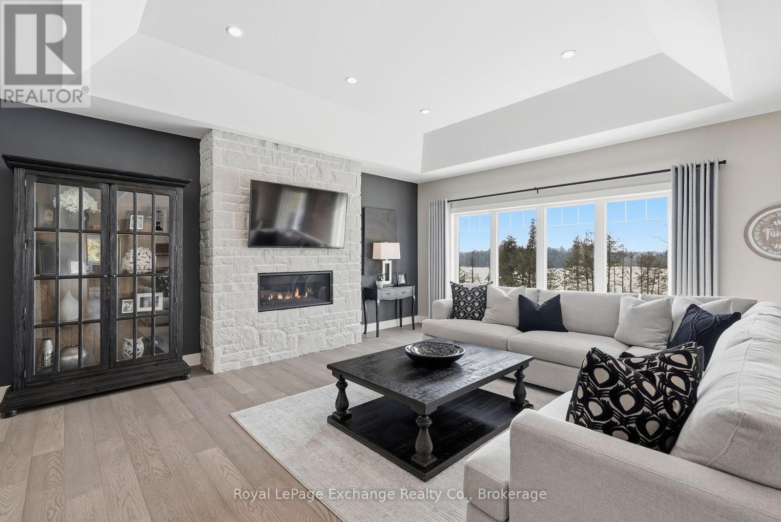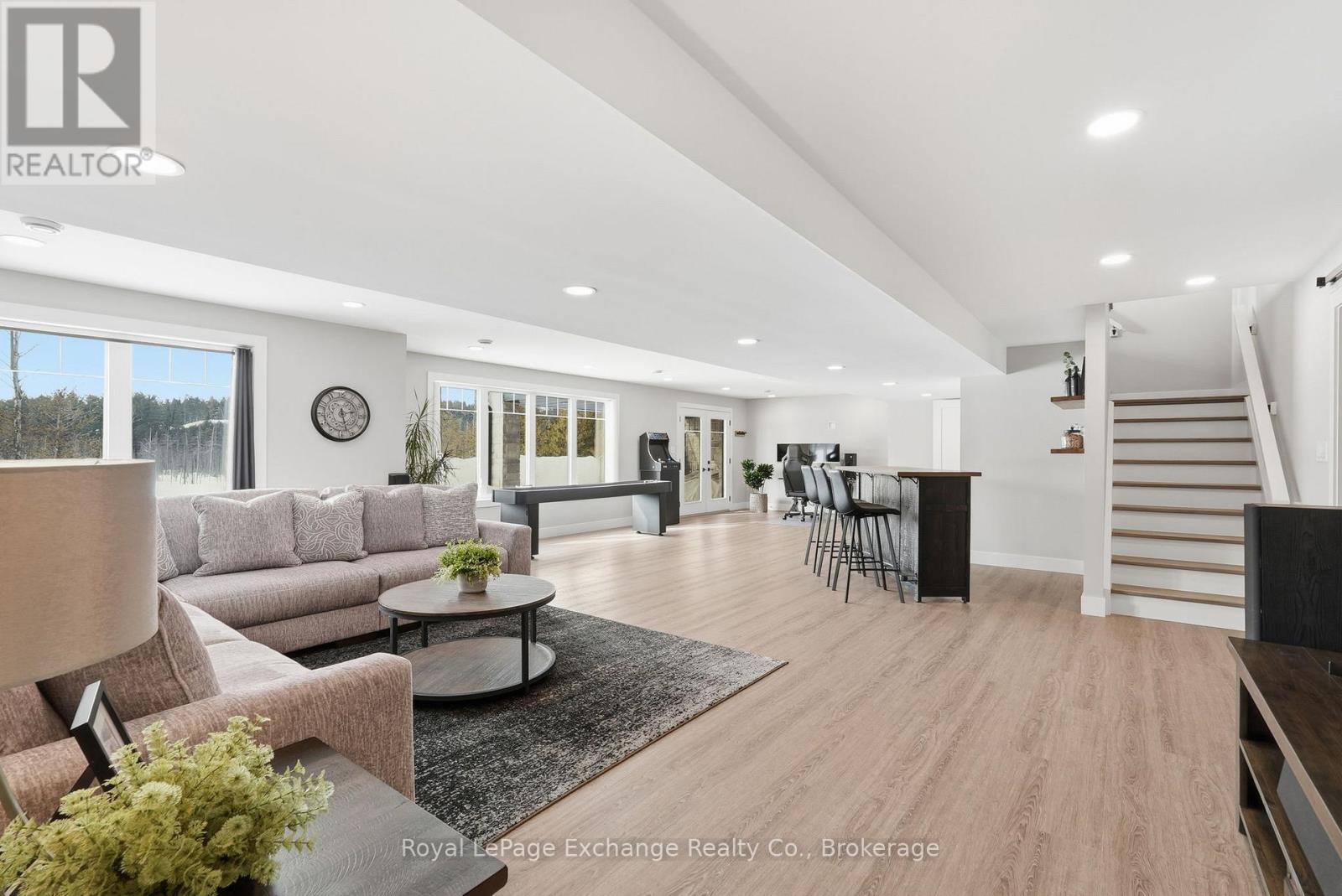 Hidden amongst rolling forest, serene waterways, and winding nature trails, this exclusive country community is one of Grey County's best-kept secrets. Residents enjoy access to recreational lakes for swimming, kayaking, and fishing, along with scenic walking trails and a welcoming neighbourhood atmosphere where nature is part of everyday life. Here, evenings are spent watching the sunset over the water while privacy comes naturally on estate-sized lots - all just a short drive from the amenities of Hanover and Durham. Perfectly positioned on a 2.8-acre waterfront lot, this stunning custom-built bungalow offers over 4,200 sq ft of finished living space designed to embrace both the landscape and the lifestyle. The home's impressive full-stone exterior, soaring 10-foot ceilings, and expansive windows create a bright, elegant interior where natural views become part of every room. At the heart of the home, a gourmet kitchen with custom cabinetry, stone countertops, premium appliances, and a walk-in pantry opens seamlessly to the dining area and great room, where a striking stone fireplace anchors the space. Step out onto the covered deck overlooking the water and forest - the perfect place for morning coffee, sunset dinners, or simply relaxing in the peaceful surroundings. The main floor features three spacious bedrooms, including a serene primary retreat with a luxury ensuite, along with a dedicated home office and convenient main-floor laundry. Downstairs, the fully finished walk-out lower level adds exceptional versatility with heated floors throughout, additional bedrooms, a full bathroom, ample storage, and excellent in-law or guest suite potential. Working remote is effortless with Ehtel fibre internet with wired ethernet throughout. Also included is a full water treatment system, high-efficiency combi-boiler, and an oversized double garage with Trusscore paneling. Luxury, nature, privacy, and community - the lifestyle that awaits at 150 Louise Creek Crescent. (id:64974)