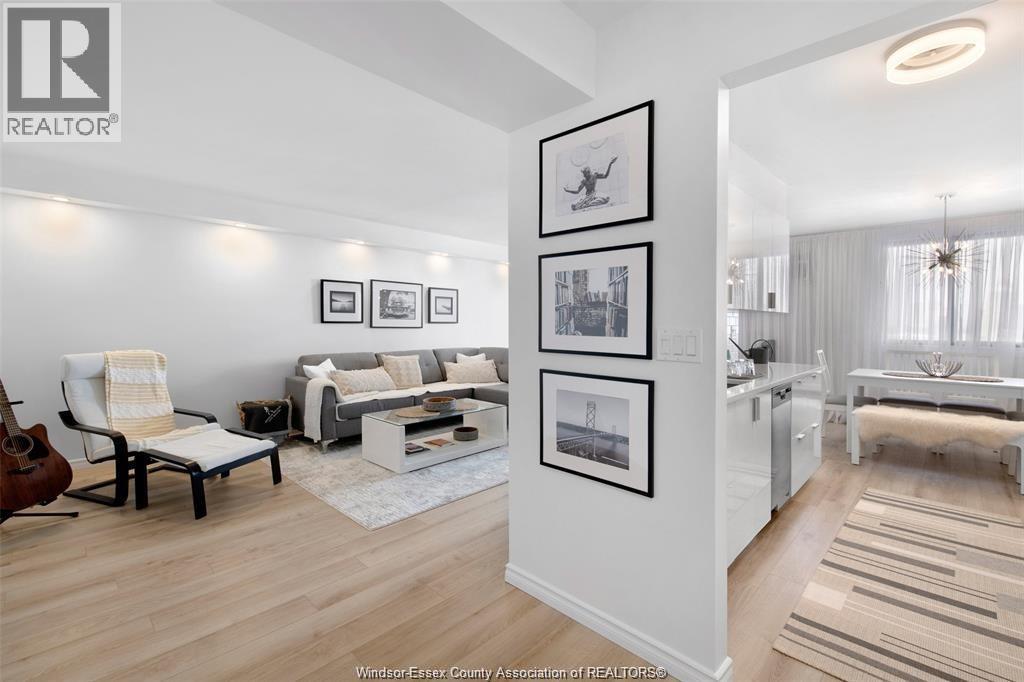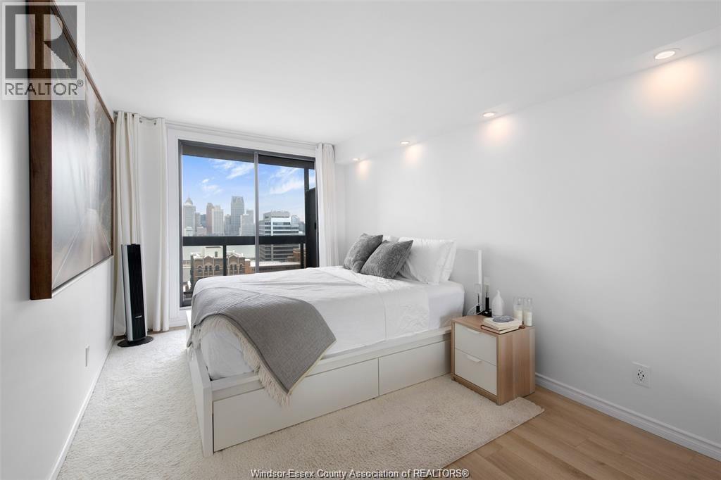 Soaring above the city on the 18th floor, this fully renovated 1-bedroom condo combines luxury, convenience, and unbeatable views of the Detroit skyline. The open-concept design features a bright and spacious living and dining area, a sleek modern kitchen, and versatile layout with potential to convert to a 1-bedroom plus den or full 2-bedroom suite — perfect for professionals, growing families, or investors seeking maximum flexibility. Enjoy two private balconies — including one off the primary bedroom — for the ultimate indoor-outdoor lifestyle. This executive unit also includes underground parking and a storage locker. Resort-style amenities await with an indoor pool, gym, sauna, party room, and 24-hour security. Located in the heart of Windsor, you'll be steps from shops, restaurants, the waterfront, and transit. Move-in ready with incredible rental and conversion potential. (id:64974)