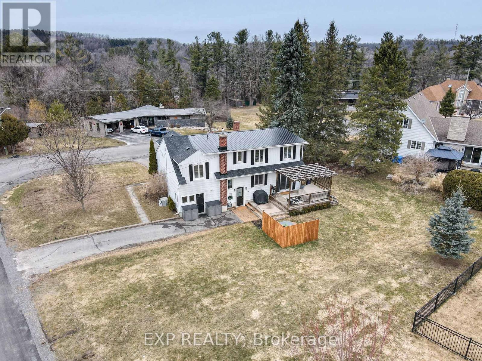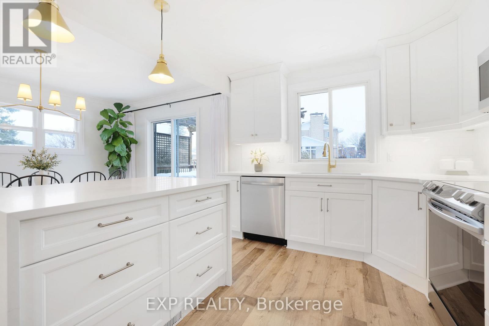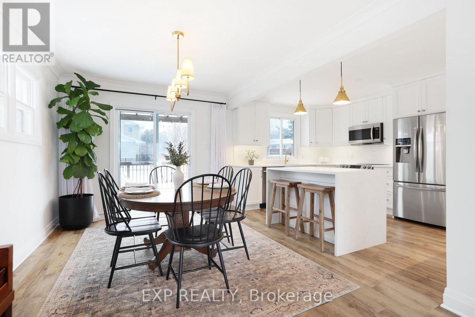 Not just renovated - refined, reimagined, and ready to impress. Set on a generous corner lot in one of the area's most desirable neighbourhoods, this fully transformed home offers both presence and practicality, with dual driveways, an attached garage, and a layout designed for modern living. Inside, a Scandinavian-inspired palette of soft, creamy tones creates a calm, cohesive feel throughout. The main level features a bright living room that flows into a beautifully redesigned kitchen with quartz countertops and stainless steel appliances. The spacious dining area extends through patio doors to a large outdoor patio - complete with pergola which steps onto a newly built deck and privacy wall - creating a seamless extension for outdoor entertaining. A warm sitting area with a stone fireplace adds character and flexibility to the space. The split-level design offers architectural interest and function, including a light-filled loft ideal for a home office or optional bedroom. Upstairs, the fully renovated main bath showcases a soaker tub, walk-in tiled shower, and timeless finishes. The primary bedroom is generously sized, with additional well-appointed bedrooms nearby. The fully finished lower level adds versatility with a family room, extra bedroom, and 3-piece bath - perfect for guests, teens, or multi-generational living. With a brand new roof (2026) and a complete interior renovation, this home offers true peace of mind and a move-in-ready lifestyle. Ideally located, walkable to downtown shops, restaurants, and everyday conveniences and steps to Central Public School. Refined, and entirely renewed - this is a home that quietly stands apart. Experience it in person - private showings available by appointment. (id:64974)