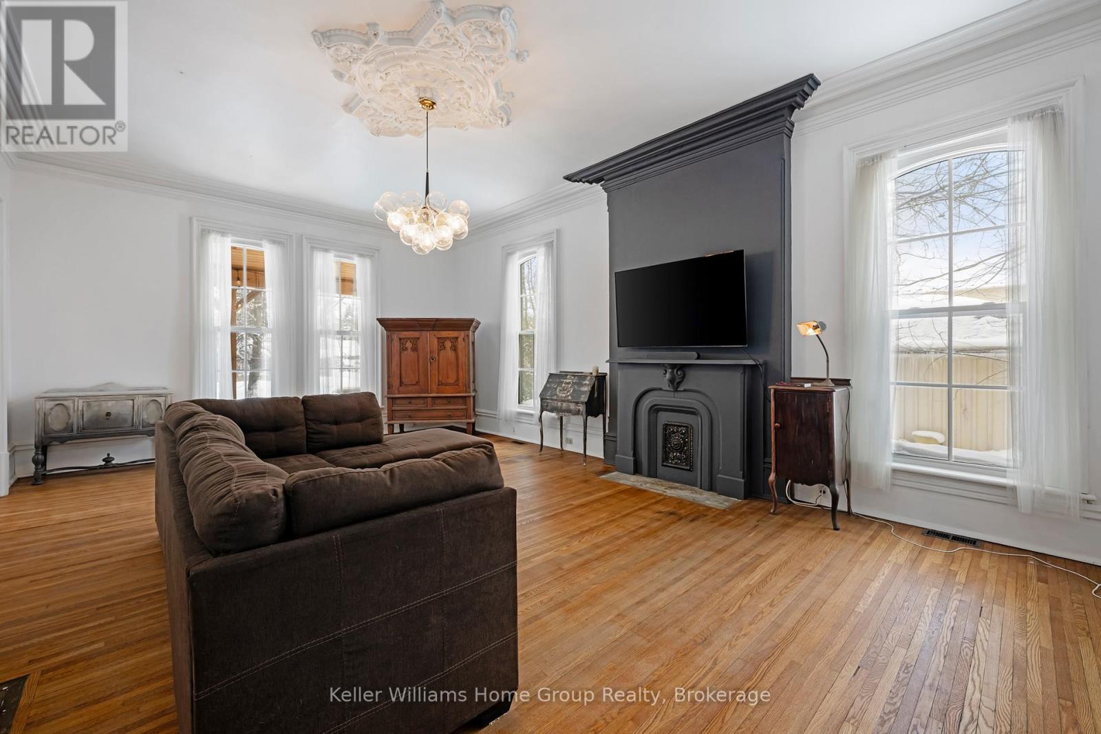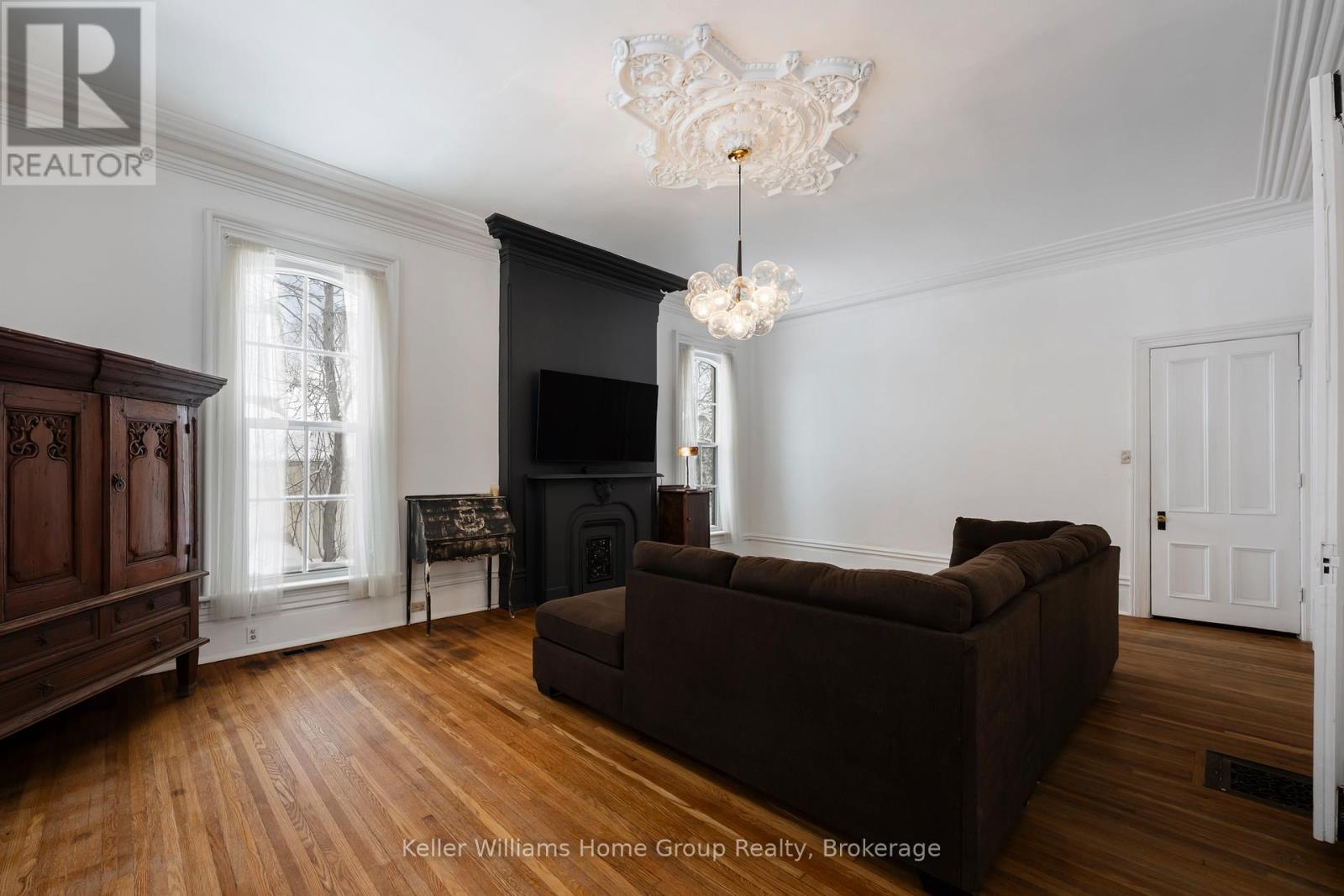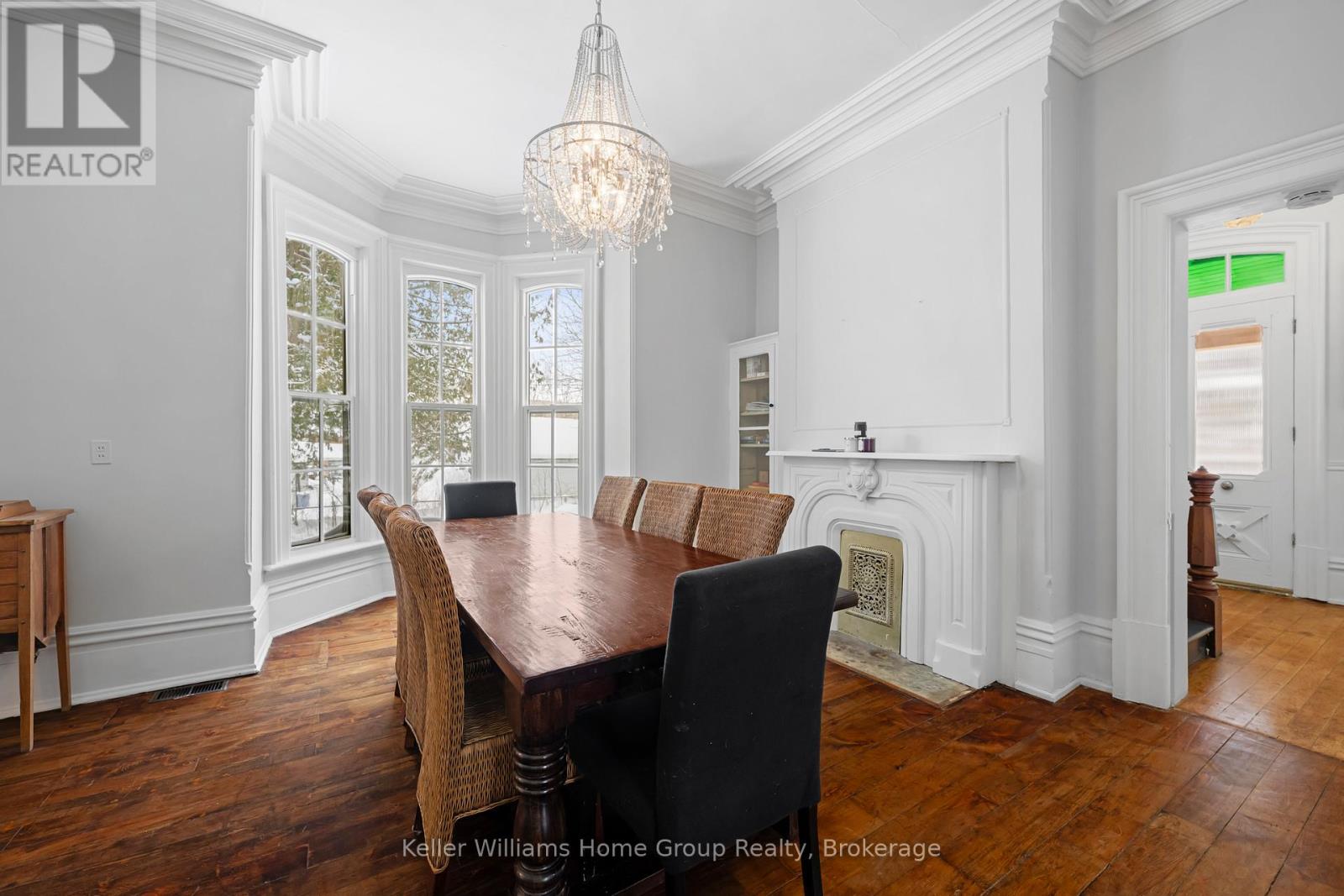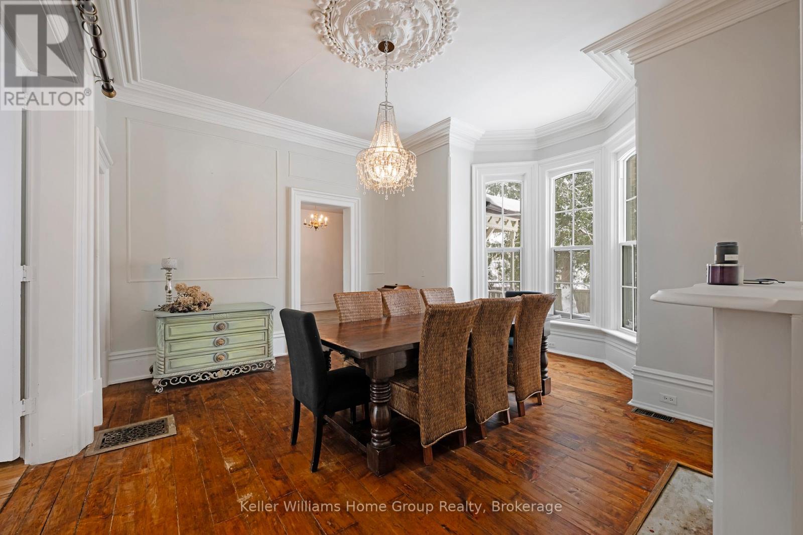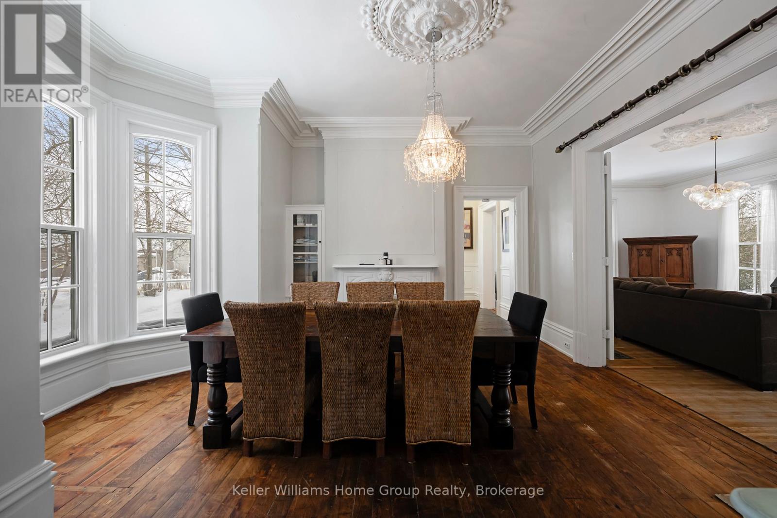 Welcome to 150 Wellington Street East, one of Mount Forest's most distinguished residences. This beautifully preserved Century Victorian manor blends classic architectural elegance with expansive, functional living space rarely found in today's market. From the moment you step inside, the scale is immediately striking. Soaring 11-foot ceilings create an airy, almost palace-like atmosphere, while the home's rich heritage shines through original mouldings, ornate trim, heavy solid-wood doors, and a grand staircase meticulously refinished to its original splendor. Enjoy evenings beside one of three original fireplaces, each with a classic mantle, while newly exposed brick walls add a subtle touch of urban sophistication. The property offers exceptional versatility with Mixed-Use (MU1) zoning, suitable for a boutique business, professional office, or creative studio (buyer to verify permitted uses). With two separate entrances and two independent staircases, the layout also lends itself to multi-generational living or a future duplex conversion, subject to approvals. Recent premium upgrades include brand-new custom energy-efficient windows (2024-2025), a new front porch, second-floor laundry, and a durable metal roof. The massive unfinished attic offers exciting potential for additional living space. Set on an impressive 105 143-foot lot, the deep backyard allows room for a workshop, multi-car garage, or carriage-style coach house. Located steps from schools, parks, and the hospital, this is more than a house-it is a legacy property. Homes of this caliber are truly rare. Book your private showing today. (id:64974)
