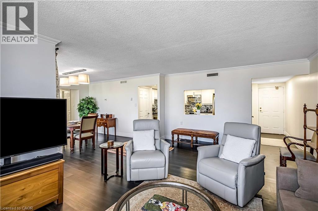 Welcome to this beautifully upgraded 3-bedroom, 2-bathroom corner condominium in the heart of downtown Ancaster. Perfectly located within walking distance to grocery stores, parks, schools, banks, shopping, restaurants, and everyday amenities, this home combines convenience with modem comfort. This bright corner unit is filled with natural light from large windows and features new flooring throughout, fresh paint, and all newblinds. The fully updated kitchenboasts new appliances, modern finishes, and plenty of space for cooking and entertaining. Enjoy spacious living with a large private balcony, ideal for relaxing or entertaining outdoors. The generous primary suite includes a beautifully updated ensuite bathroom with a large glass shower and double vanity. Additional highlights include in-suite laundry with a new washer and dryer, two underground parking spaces, and thoughtful upgrades throughout that make this home truly move-in ready. An exceptional opportunity to enjoy modem condo living in one of Ancaster's most walkable and desirable locations. Do not miss this opportunity! Truly move in ready! Act fast! (id:64974)