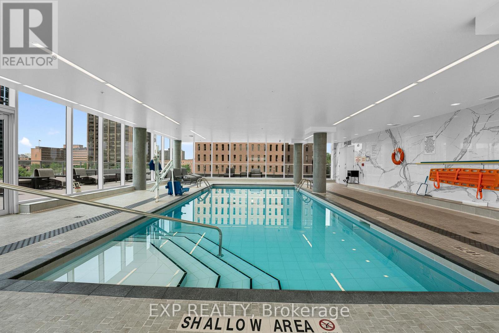Luxury & Convenience at the Claridge Icon - Located on the 15th floor with north-facing city views, this 1-bedroom, 1-bathroom unit includes a balcony and one storage locker. The open floor plan features luxurious finishes such as quartz countertops, stainless steel appliances, wall-to-wall hardwood flooring, 9-foot ceilings, floor-to-ceiling windows, and an in-unit washer and dryer. Residents enjoy top-of-the-line resort-like amenities including a fitness centre, yoga studio, pool, sauna, indoor and outdoor party rooms, an outdoor terrace with a grill, 24-hour concierge, and more. Situated in Ottawa's vibrant Little Italy, the building is steps from some of the city's best restaurants, cafes, and shops, as well as Dow's Lake and the Rideau Canal-your four-season outdoor playground. The location is also close to downtown, the hospital, and public transit. Water, heat, and A/C are included; tenant pays hydro and internet. Occupancy is at the end of June 2026. (id:64974)