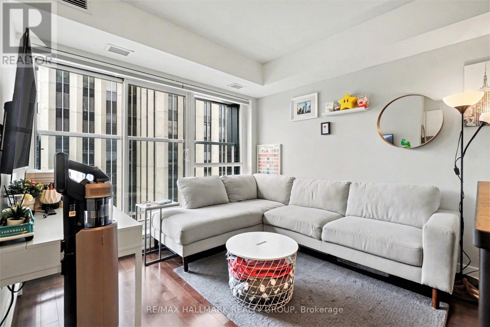 This beautifully designed 1 bedroom unit features 9-foot ceilings, neutral tones, and high-end finishes, including hardwood and tile flooring and sleek modern closet doors. The open-concept layout connects the living room and BRAND NEW kitchen with quartz backsplash(2026), where you'll find contemporary cabinetry, a stylish backsplash, modern lighting, and stainless steel appliances. The living room offers expansive windows that flood the space with natural light while showcasing stunning city views. Outstanding building amenities include: an indoor pool, fully equipped gym, communal lounge, guest suites, boardroom, and an outdoor patio with BBQ area. Prime downtown location with direct access to Farm Boy, and walking distance to shops, restaurants, cafés, Confederation Park, the NAC, and the Rideau Canal. Easy access to public transit and the highway makes commuting a breeze. Visit today! (id:64974)