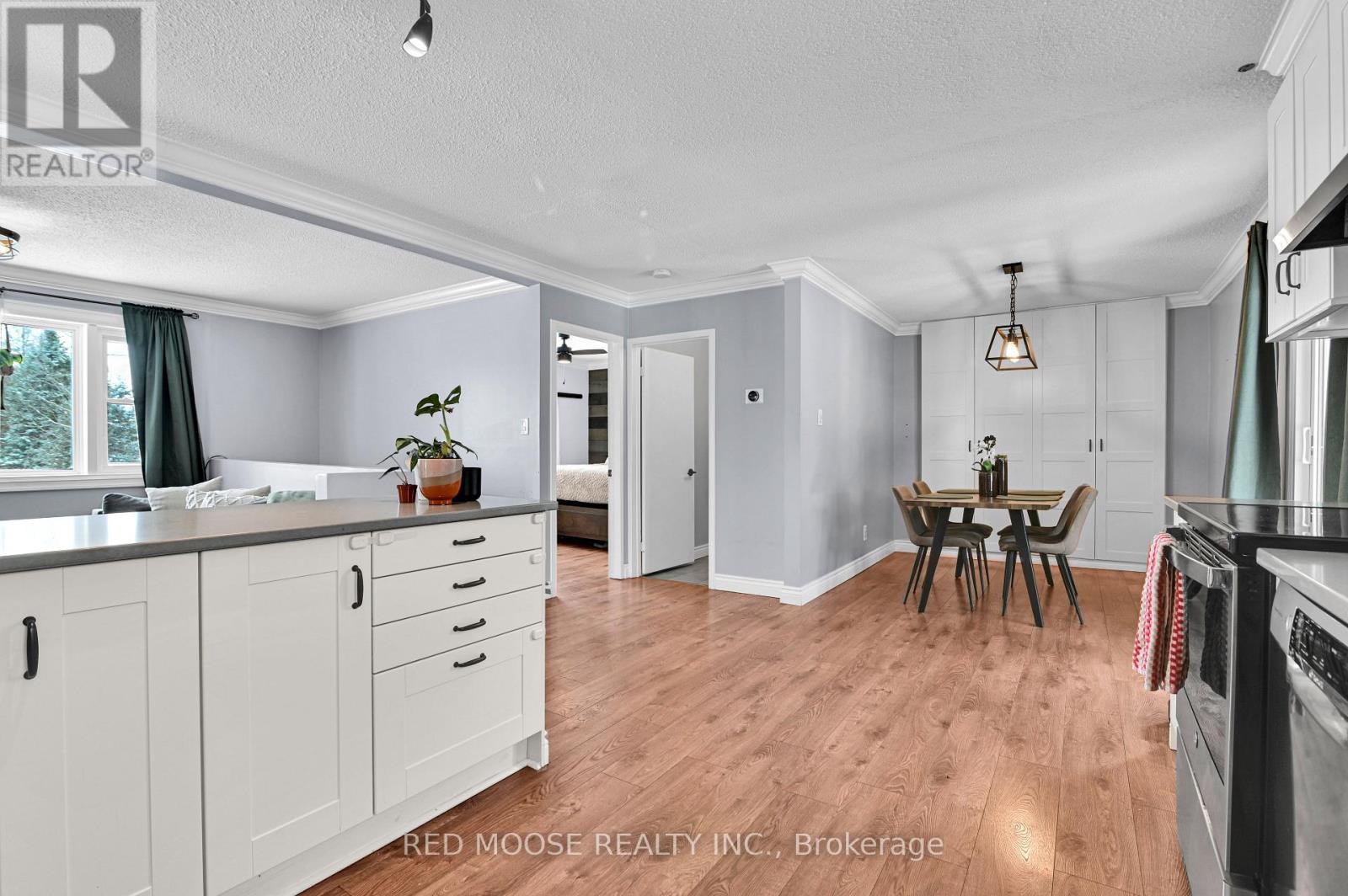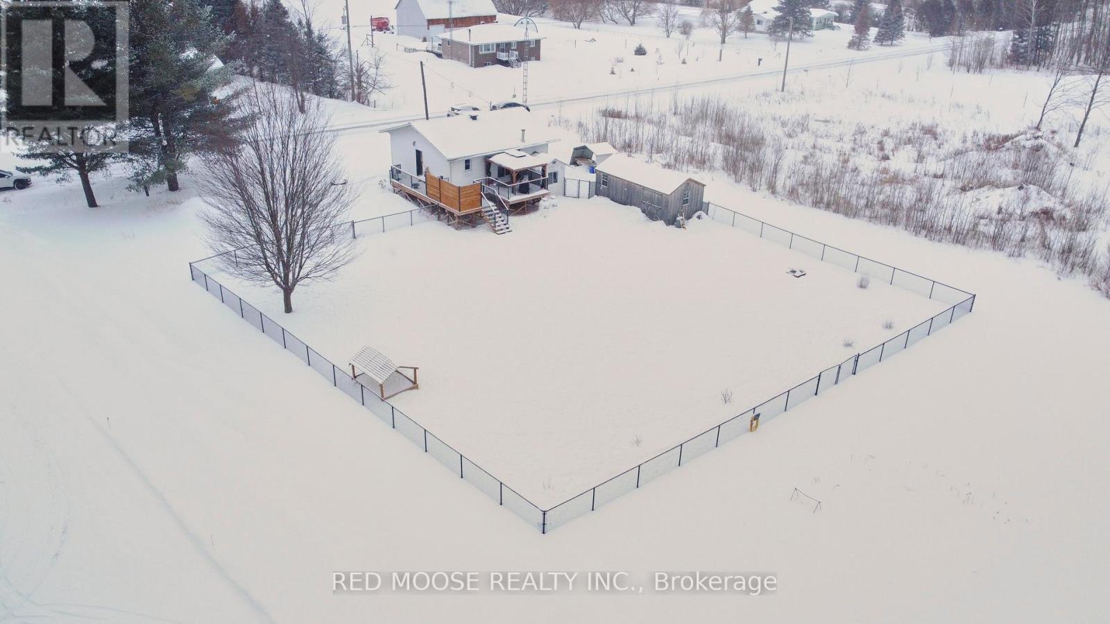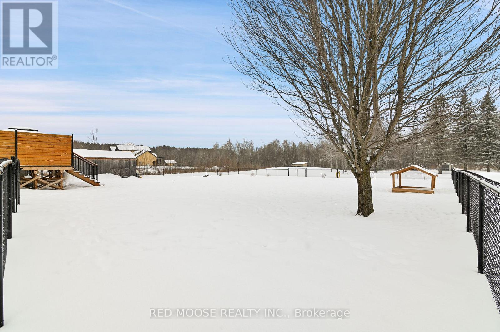 Outdoor enthusiasts or Dog Lover's DREAM!! Huge almost 1 acre property backing onto Larose forest. This is the perfect property for someone that does not want too much house but wants a large yard and no rear neighbors. This 1974 raised bungalow has been updated to modern finishes and is the ideal size for someone that doesn't want unused space. Originally a 2 bedroom on the main floor, the second bedroom was moved to the basement to allow for a large dining area with extra cabinets and storage. On the main floor you will find a modern kitchen, bathroom and living areas highlighted by a massive Deck (2023) that extends your living space to the huge fully fenced area of the backyard. The property actually goes beyond the fenced portion and right back to the woods and includes two additional out-buildings that add extra storage and potential for creative use. Downstairs, we find an additional bedroom along with a rec room and wood fireplace. There is a separate exit from the basement that leads outside as well to the side of the house leading out to the Tractor garage/shed beside the house. In the utility space you will find the laundry, water systems, furnace and additional storage. Roof 2018, HWT 2020, Furnace 2023, AC 2023 - Hydro for 2025 = $2,183 - Propane for 2025 = $2,315 (id:64974)