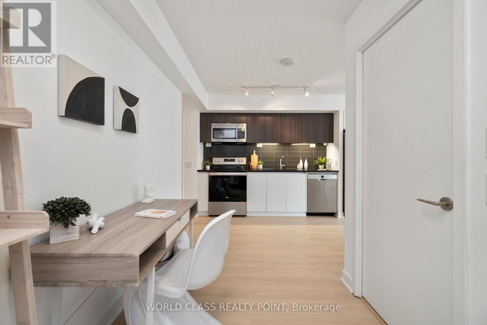 **Please Click The Video Tour** This Spacious Recently Renovated 1 Bedroom + Den Unit Features An Open Concept Functional Layout With No Wasted Space. 9-Foot Ceilings And Floor To Ceiling Windows Bring In A Ton Of Natural Sunlight. Modern Kitchen Features Quartz Counters And Stainless Steel Appliances. Large Primary Bedroom With Lots Of Closet Space Overlooking The CN Tower And City Skyline. Oversized Den Is Perfect For A Home Office. The Foyer Features A Double Closet And Area To Place An Entryway Bench. Unobstructed East Views that Can Also See The Lake. 1 Parking Space Included. Amazing Building Amenities - Indoor Pool, Sauna, Hot Tub, Basketball Court, Gym, Theatre Room, Dog Washing Station, Car Wash & More. Steps To Queens Quay, Waterfront Walking & Bike Trails, Groceries, Banks, Restaurants, Financial District. Very Transit Friendly And Easy Access To Dvp & Gardiner. Recent Renovations include New Vinyl Floors With Underlayment, Repainting All Walls, and Replacing 1 Set of Blinds. (id:64974)