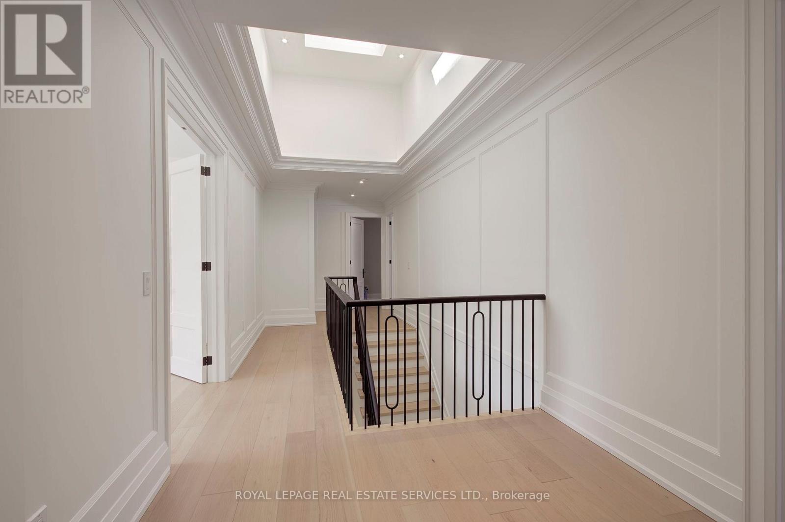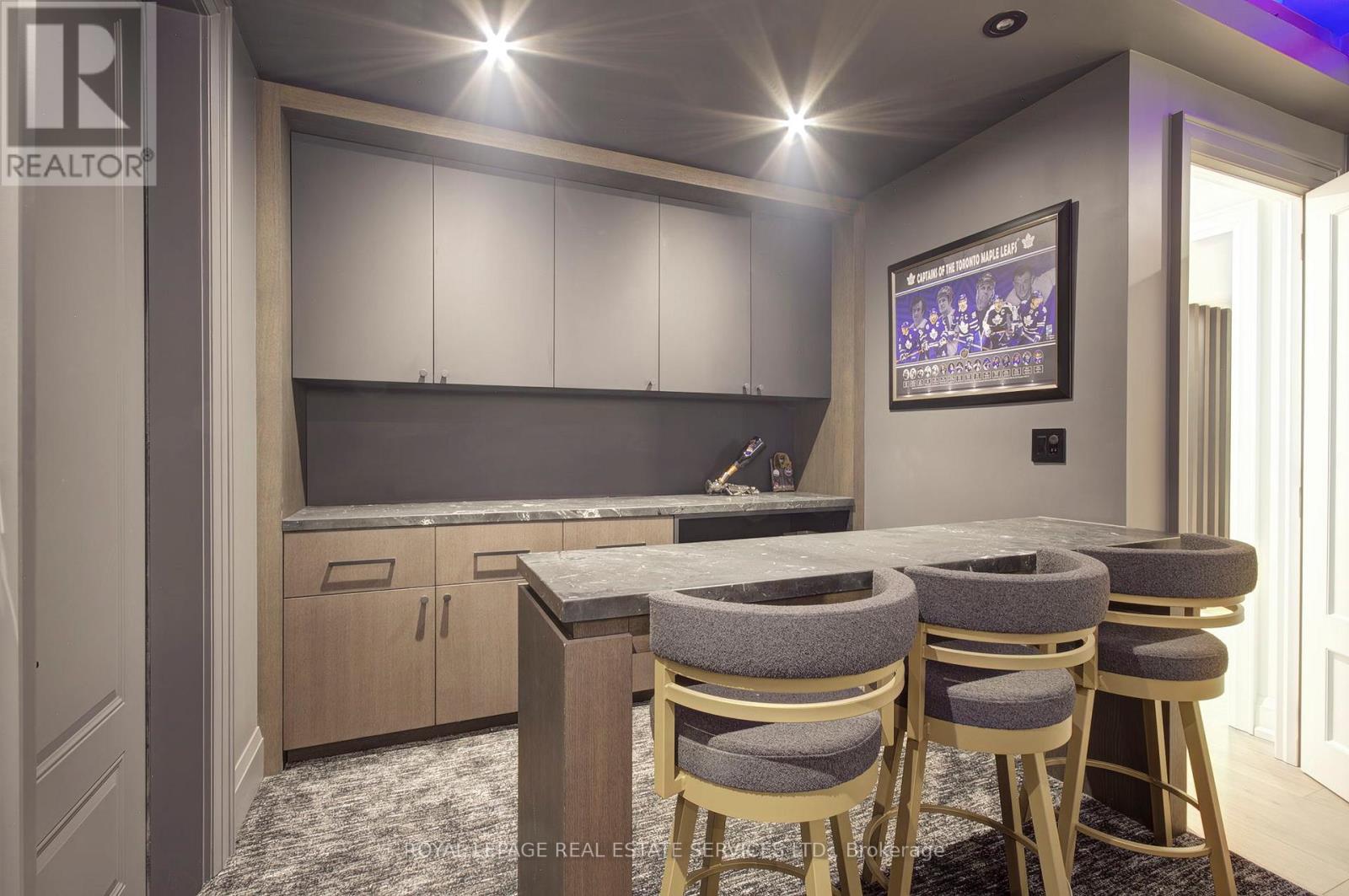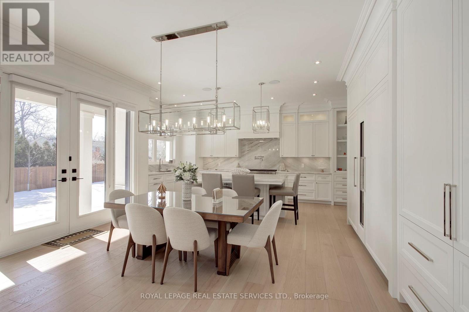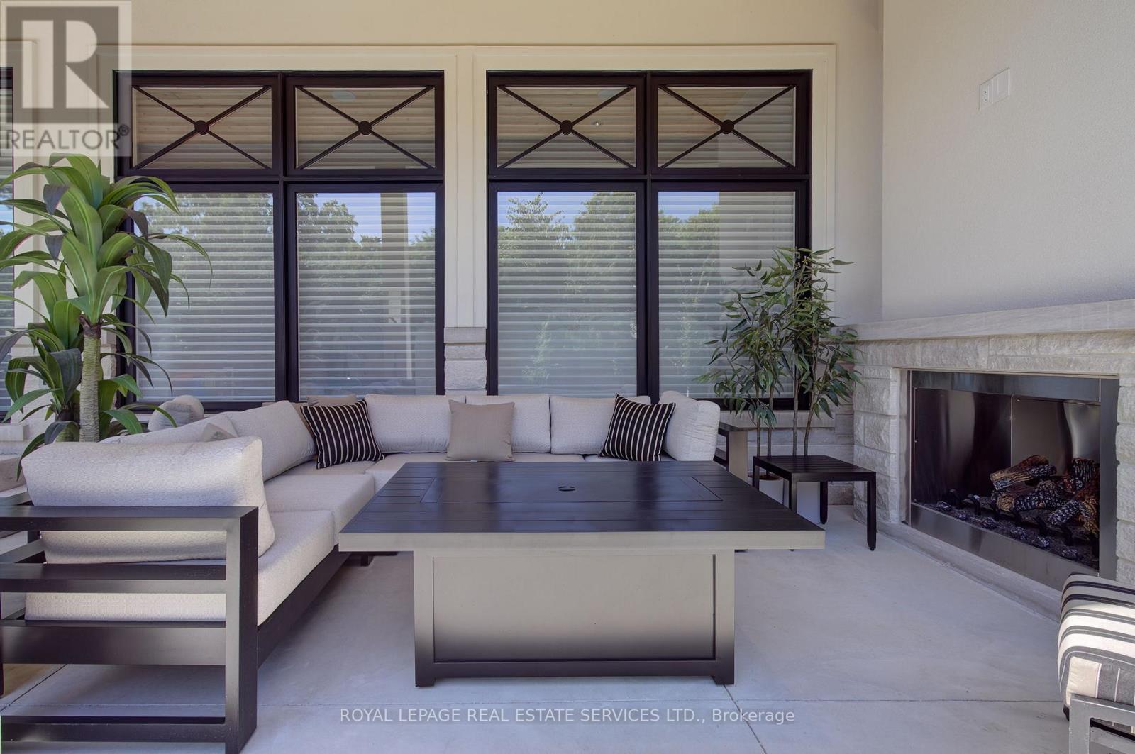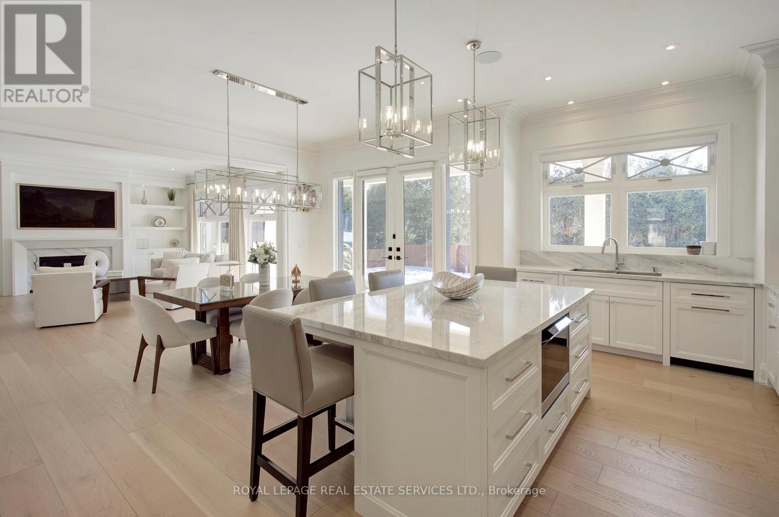Welcome to 1504 Warren Dr., a spectacular custom-built residence in the heart of Oakville offering approximately 6,300 sq.ft. of luxurious living across three beautifully finished levels. Perfectly positioned on a premium 100 x 150 ft lot, this exceptional home blends timeless elegance, master craftsmanship, and sophisticated smart-home technology. The professionally landscaped grounds create a private outdoor oasis featuring LED nightscape lighting, Wi-Fi controlled irrigation, and a fully fenced backyard retreat. Enjoy effortless entertaining beneath the expansive covered porch with a gas fireplace, natural gas BBQ line, and a Beachcomber hot tub complete with waterfalls, jets, speakers and ambient lighting. The triple car garage features epoxy flooring, LiftMaster openers, Gladiator storage systems, and EV-ready electrical. Inside, a 9-ft mahogany entry door opens to soaring 10-ft ceilings, elegant wall paneling, crown mouldings, and wide plank engineered oak floors. The chef's kitchen is a true showpiece with a 48" Wolf 8-burner dual fuel range, Sub-Zero fridge and freezer columns, Sub-Zero wine column, built-in Sharp microwave/convection oven, Miele dishwasher, and a separate servery with beverage centre. Upstairs, four spacious bedrooms showcase custom vaulted ceilings and built-in closets, complemented by a sky-lit hallway and a convenient laundry room with LG front-load washer and dryer. The fully finished lower level is designed for ultimate entertainment, offering radiant heated floors, a custom home theatre, wet bar ice maker, home gym, additional bedroom, and a spa-inspired bathroom with steam shower, rain head, body jets, LCD integrated panel and speakers. Complete with Control4 8 zone smart sound automation, security film on all windows, multiple gas fireplaces, marble surfaces with protective scratch-proof film and Lennox climate systems, this remarkable residence delivers refined luxury living in one of Oakville's most prestigious neighbourhoods. (id:64974)